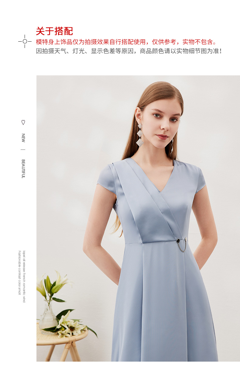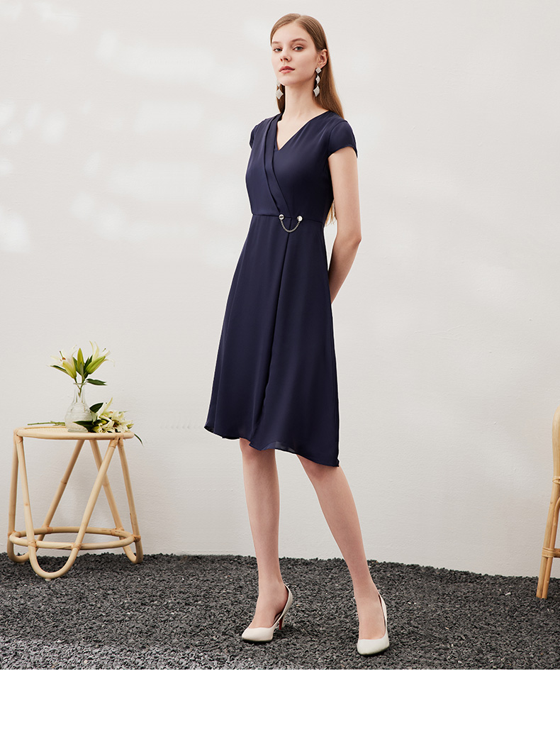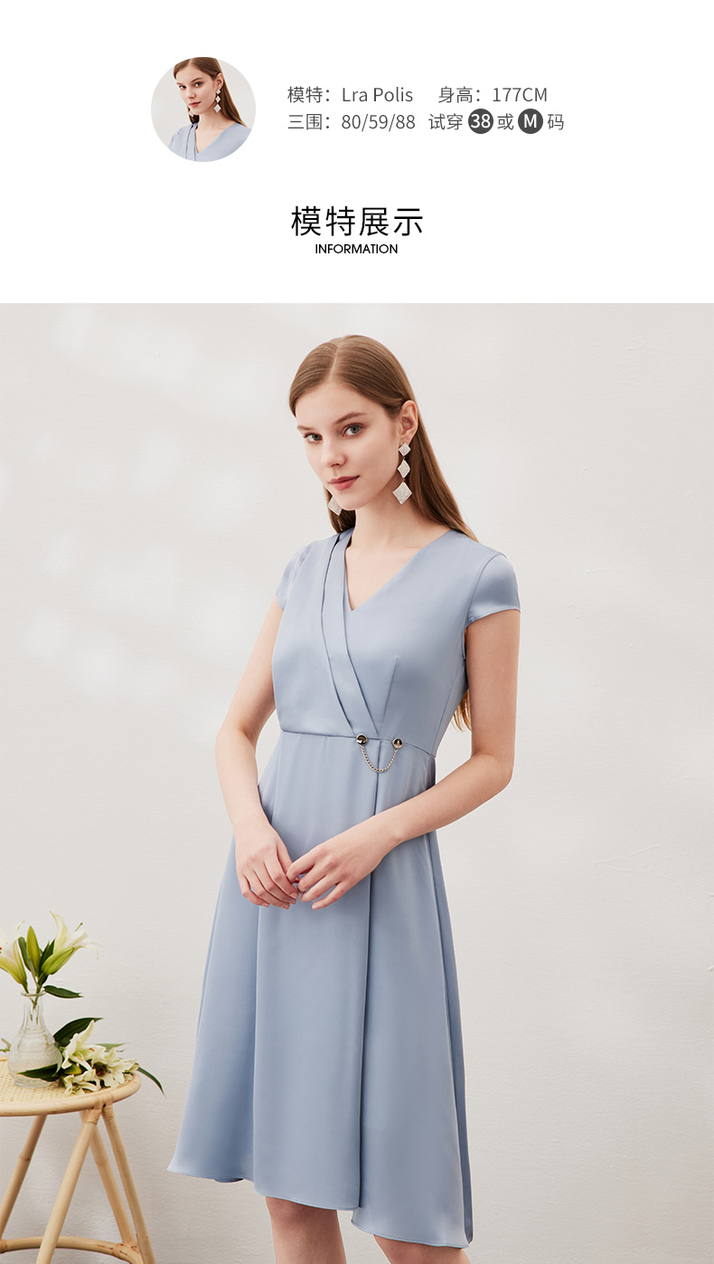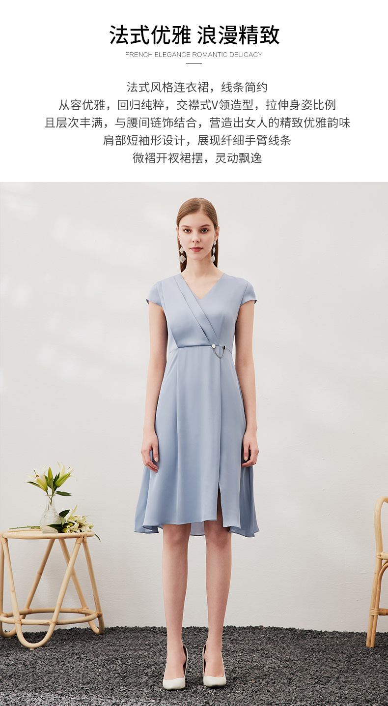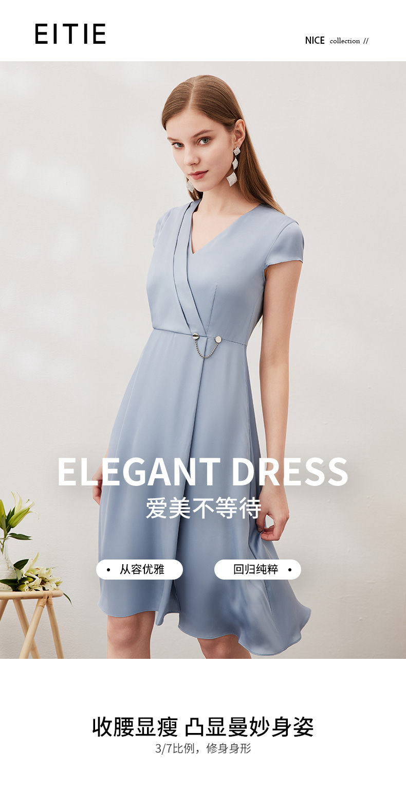 EITIE爱特爱夏季新款优雅气质V领洋气显瘦连衣裙女7007722