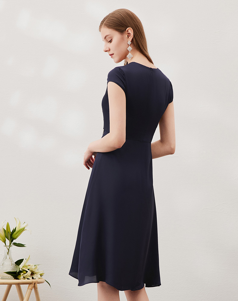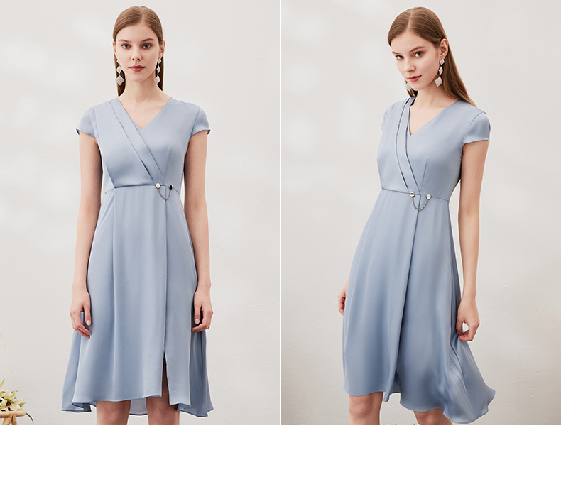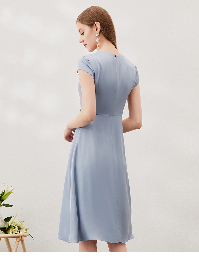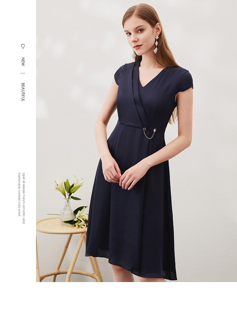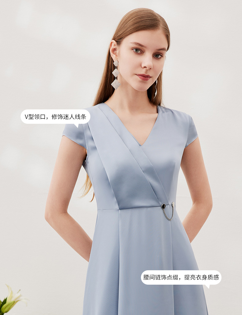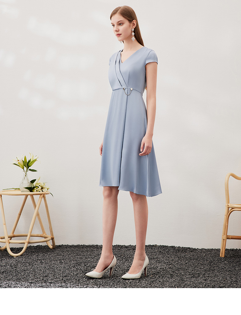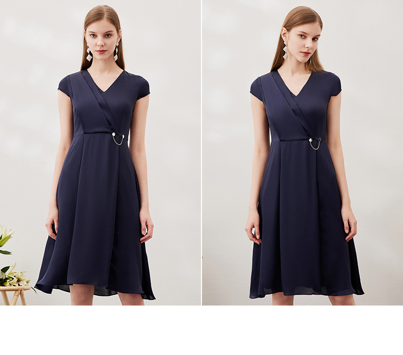 EITIE爱特爱夏季新款优雅气质V领洋气显瘦连衣裙女7007722