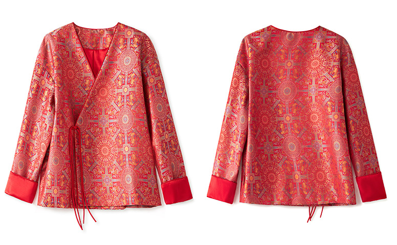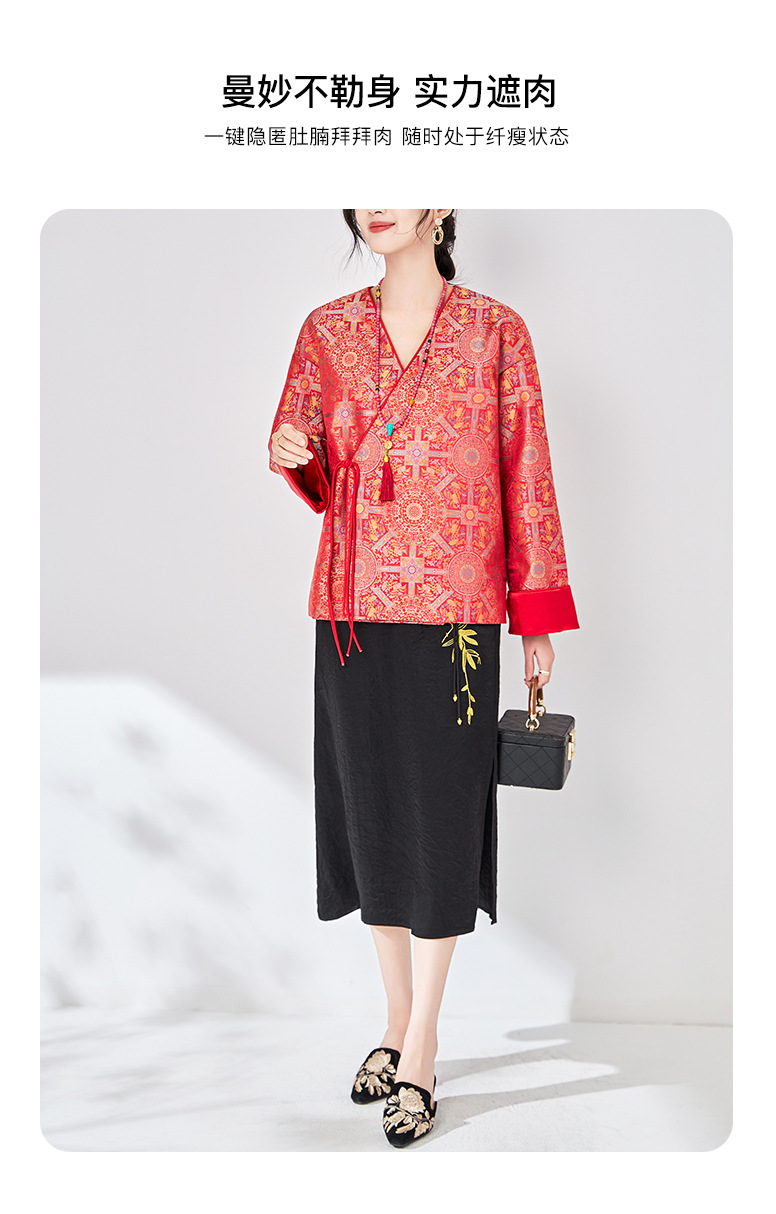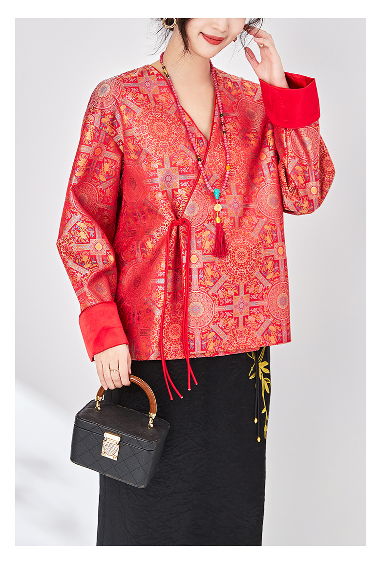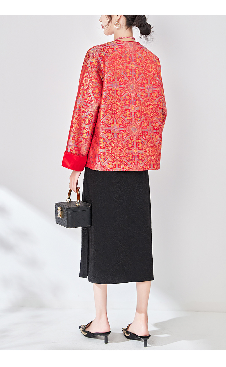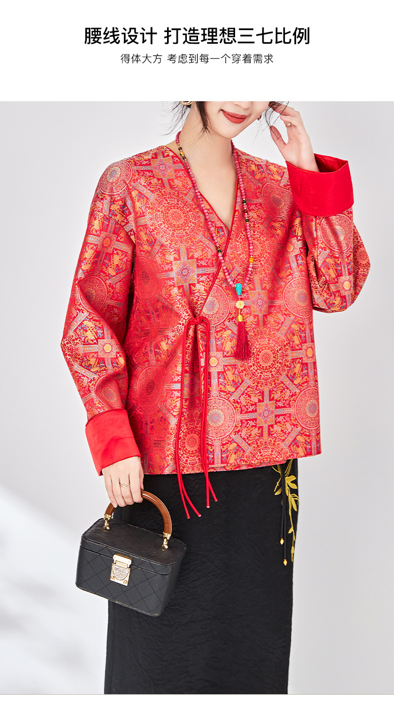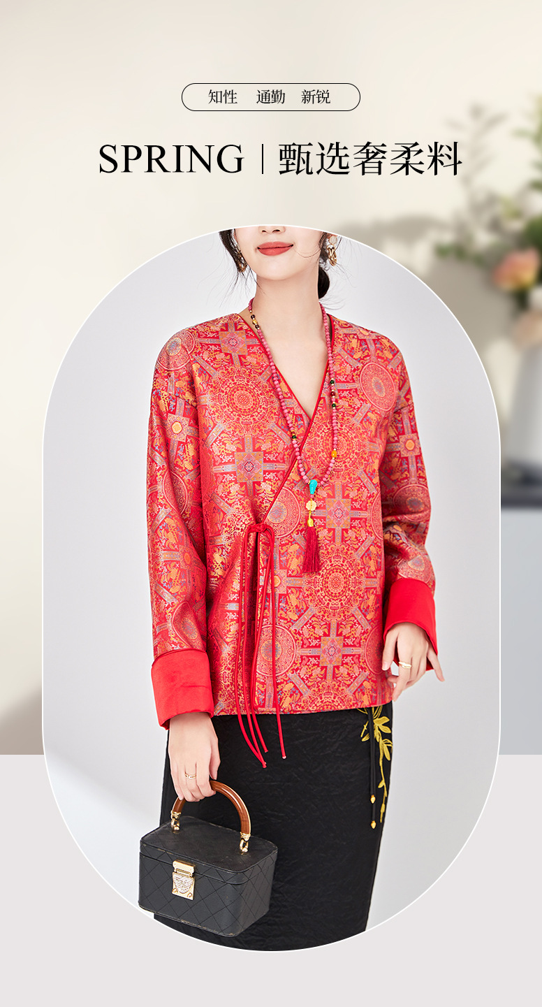 复古国风新中式,女装春季人丝提花缎红色上衣外套WLZD-2403104