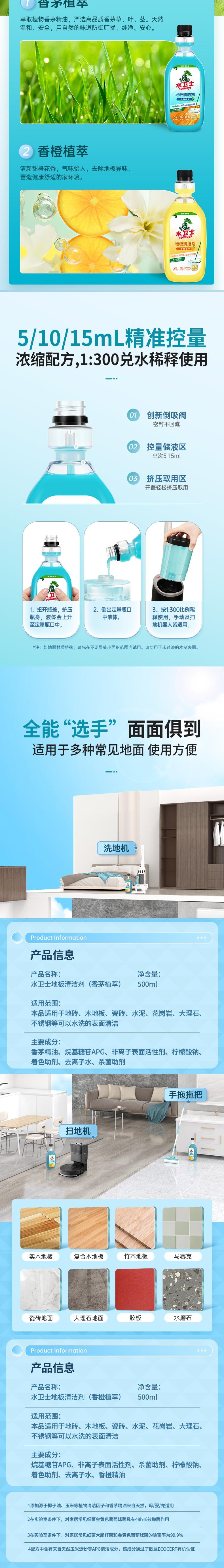 水卫士 地板清洁剂(香茅)500ml*1 cjsws41120