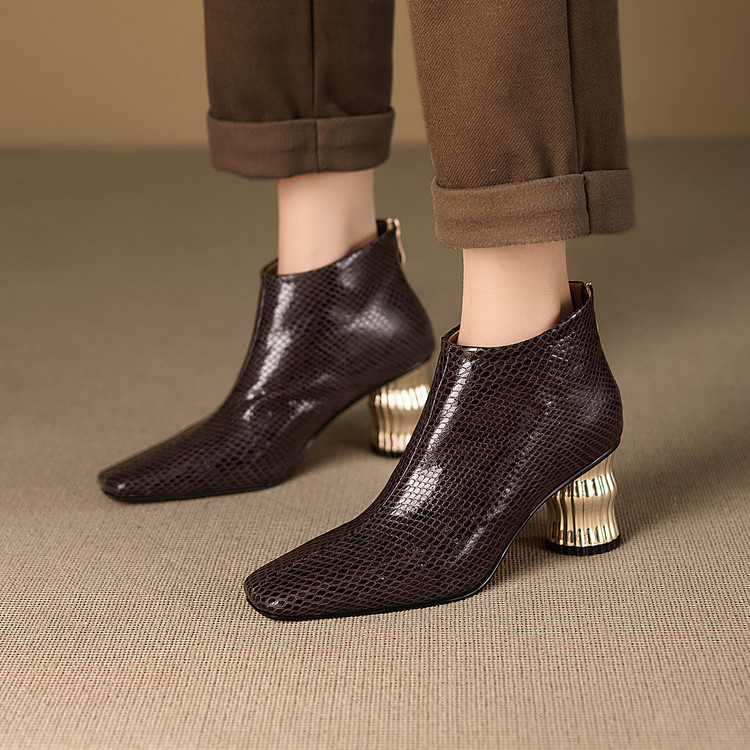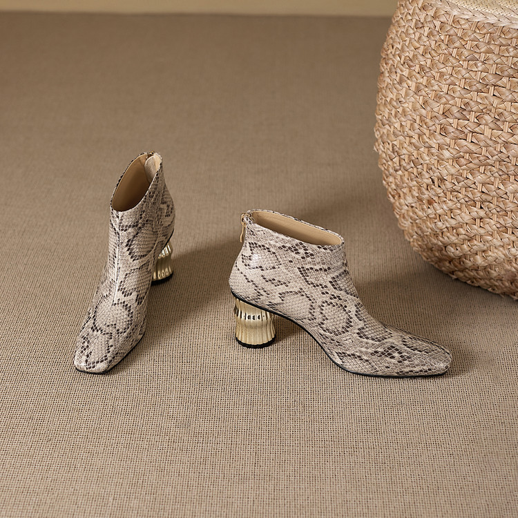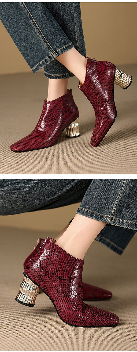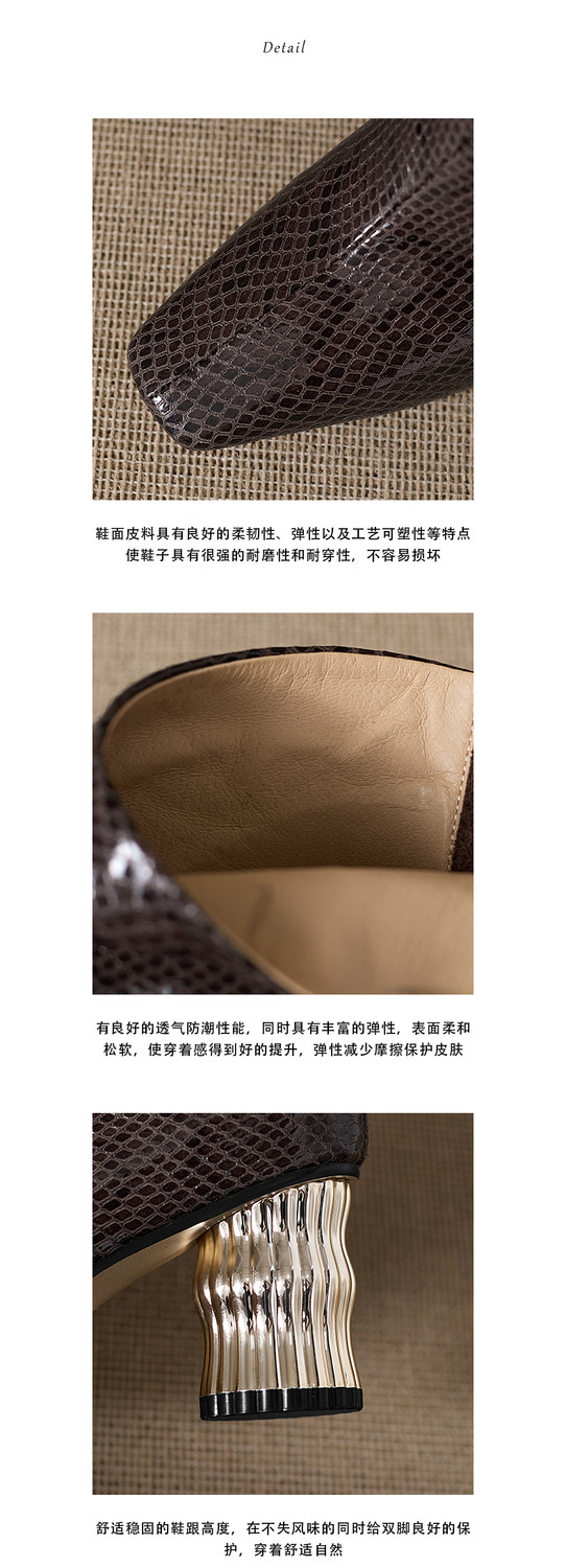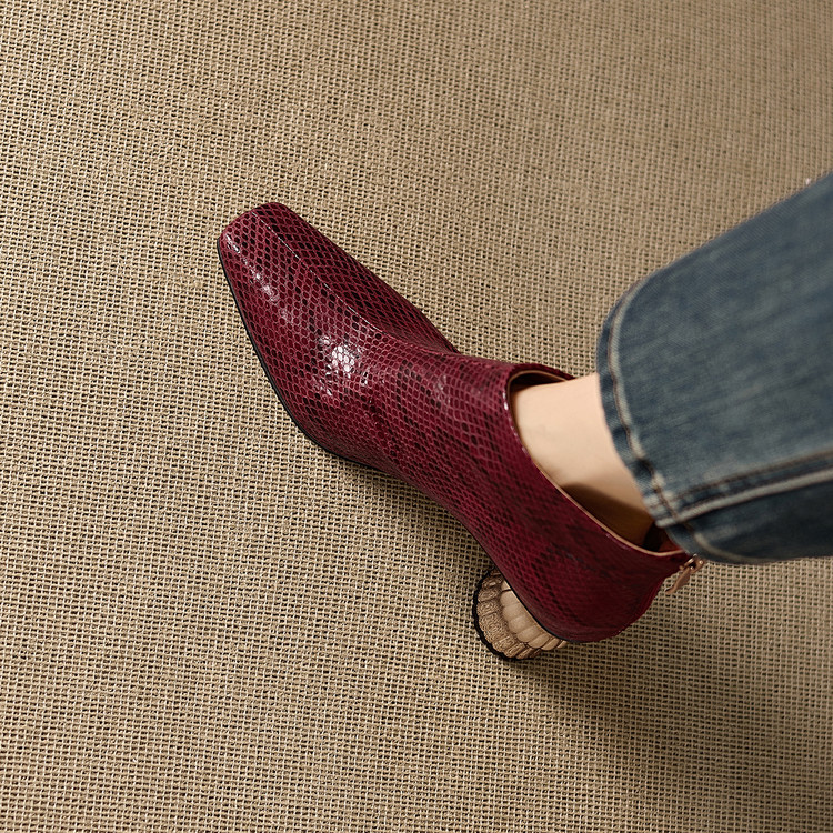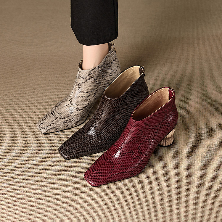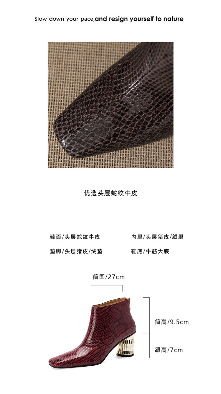 【预售5天】真皮粗跟短靴女秋冬季新款复古高跟单靴时尚百搭蛇纹显瘦女靴MBJR&6978