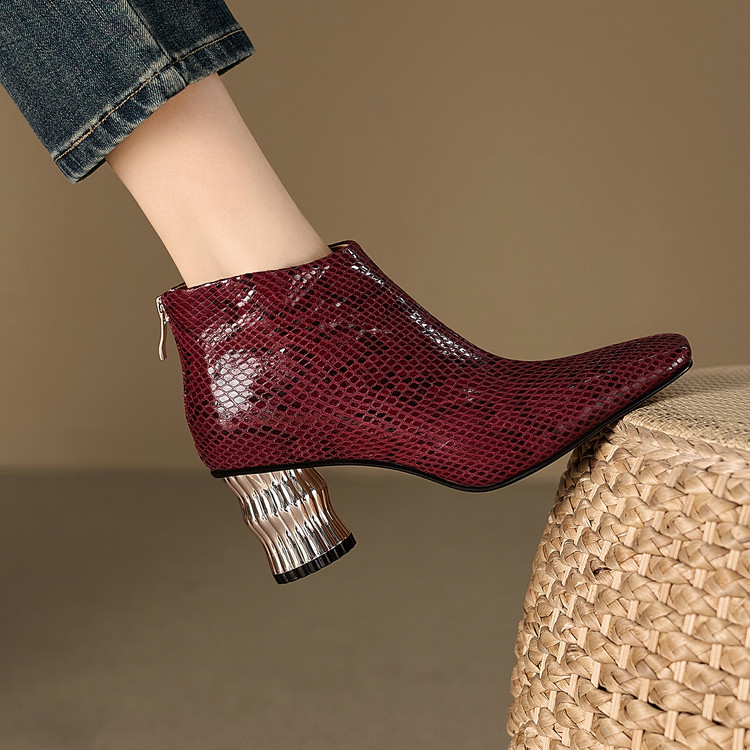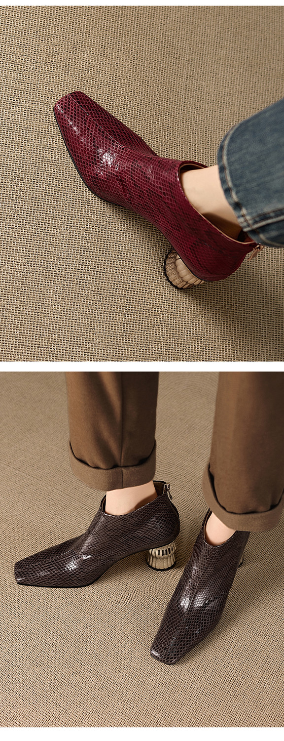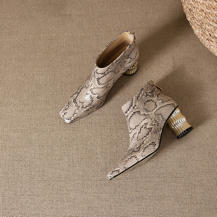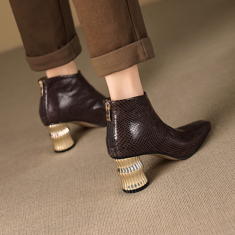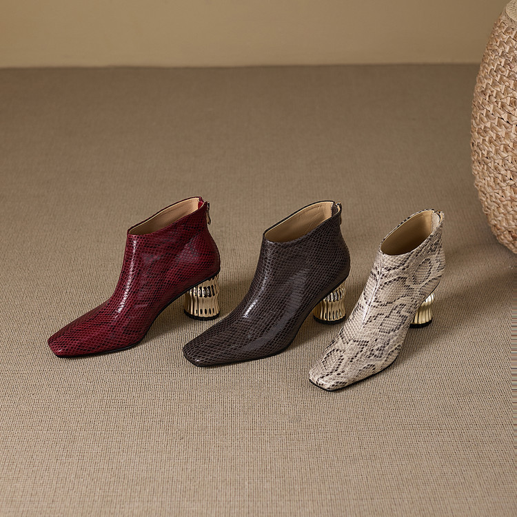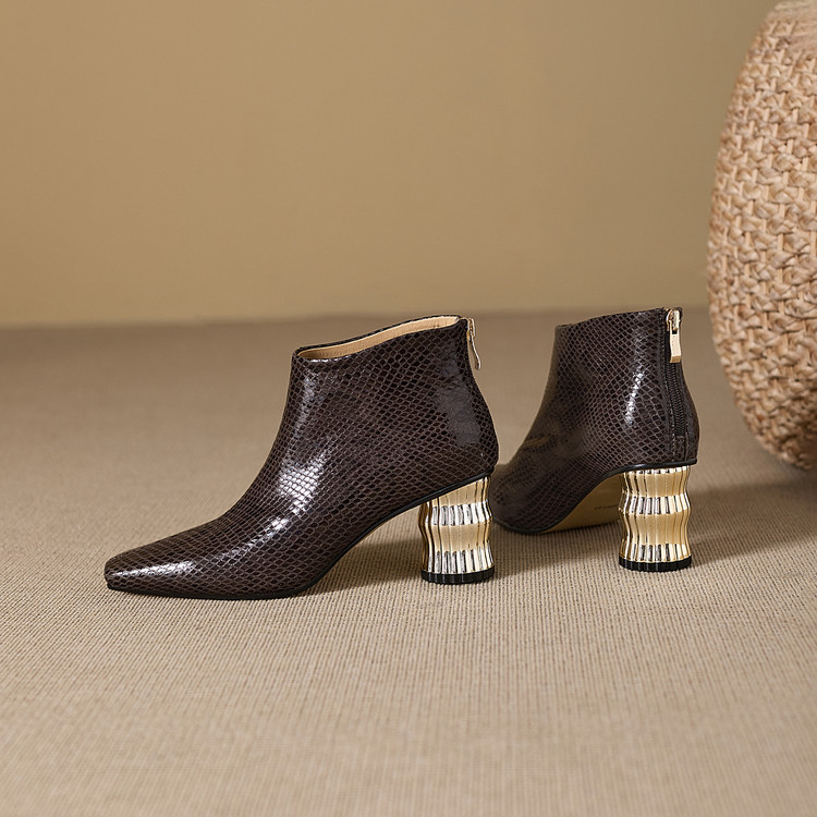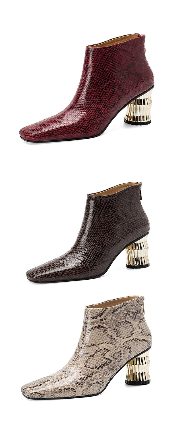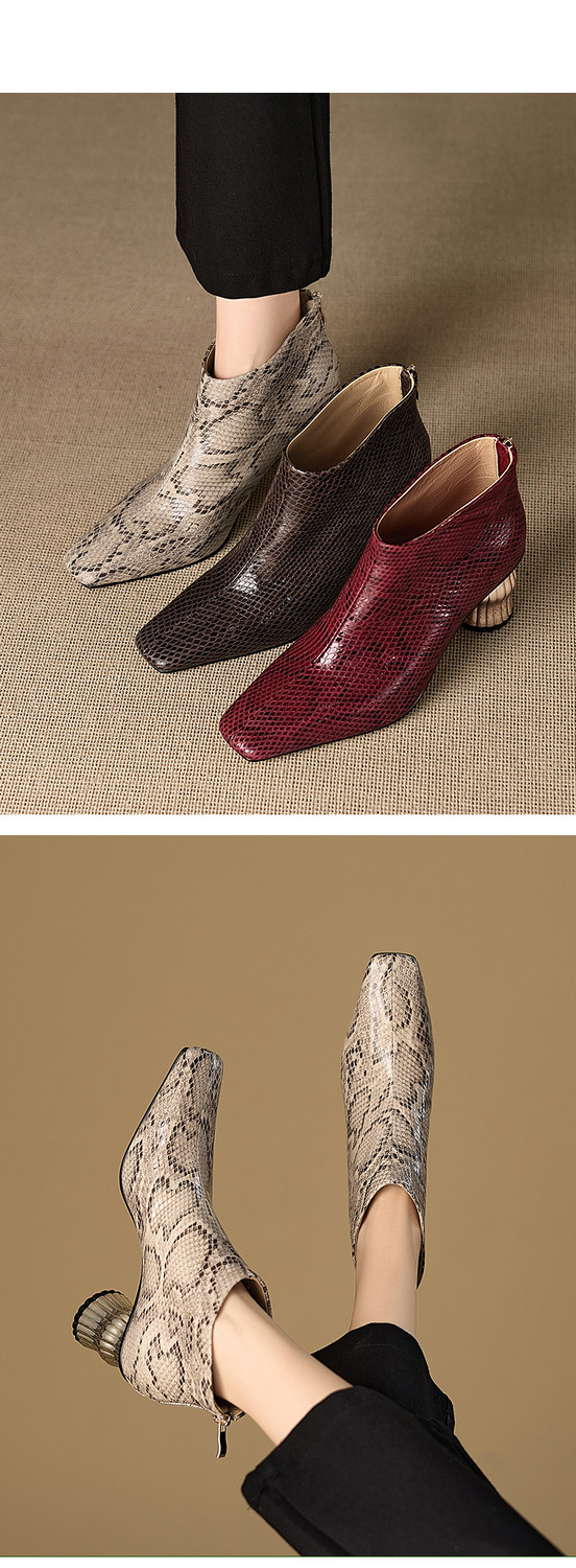 【预售5天】真皮粗跟短靴女秋冬季新款复古高跟单靴时尚百搭蛇纹显瘦女靴MBJR&6978