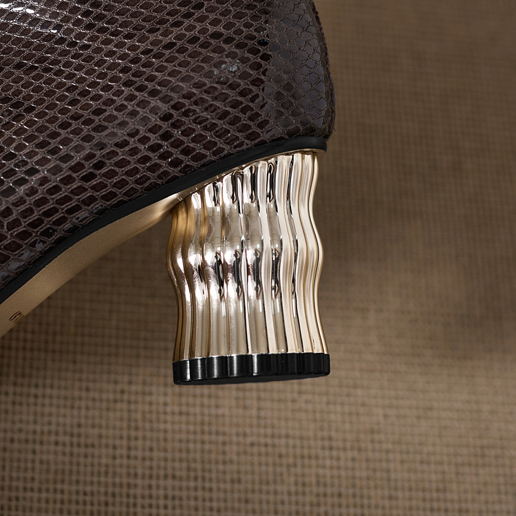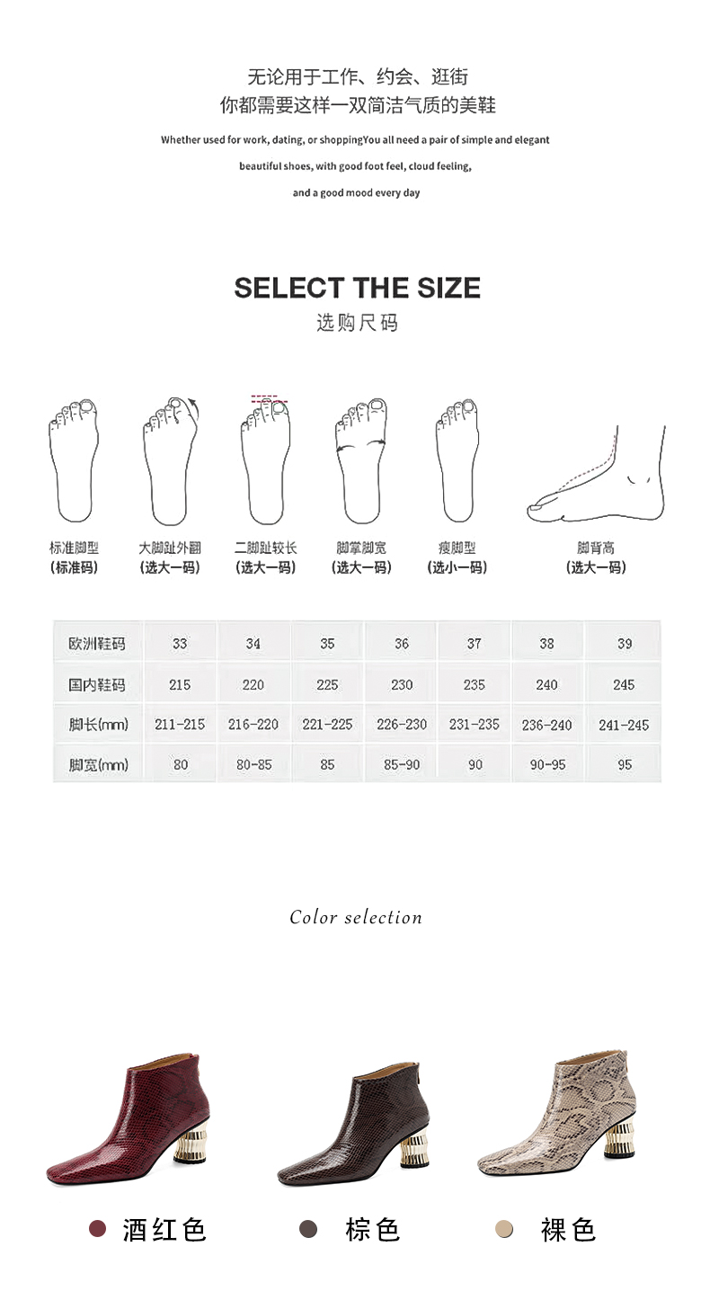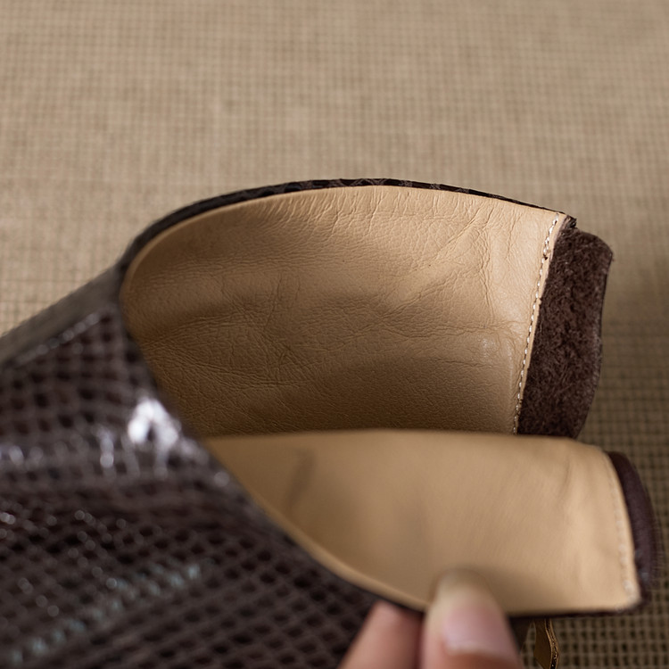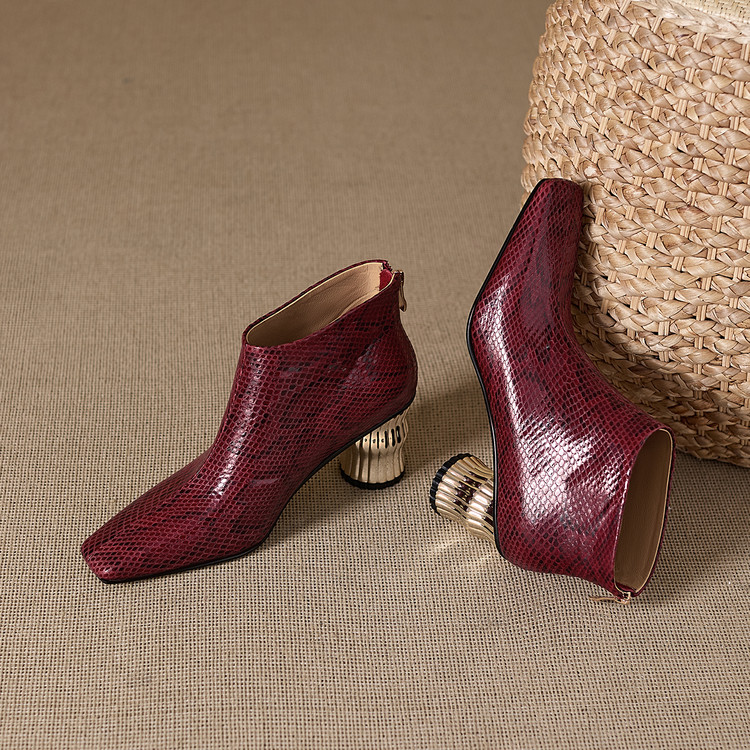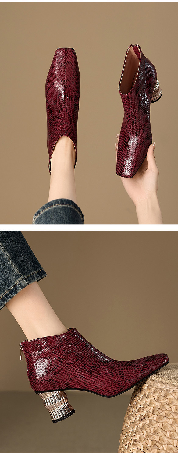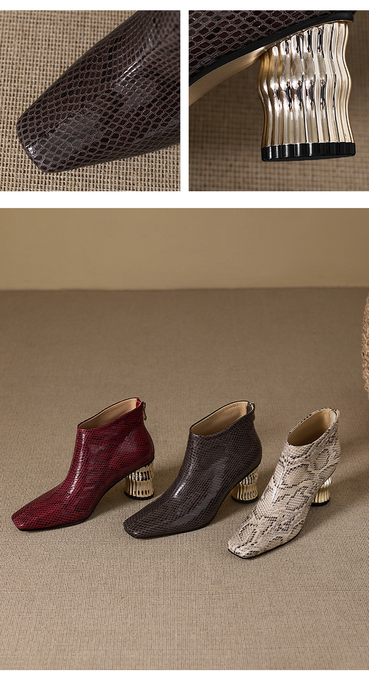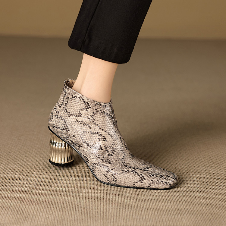 【预售5天】真皮粗跟短靴女秋冬季新款复古高跟单靴时尚百搭蛇纹显瘦女靴MBJR&6978