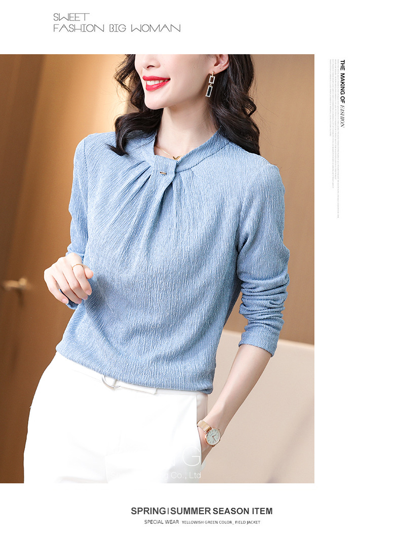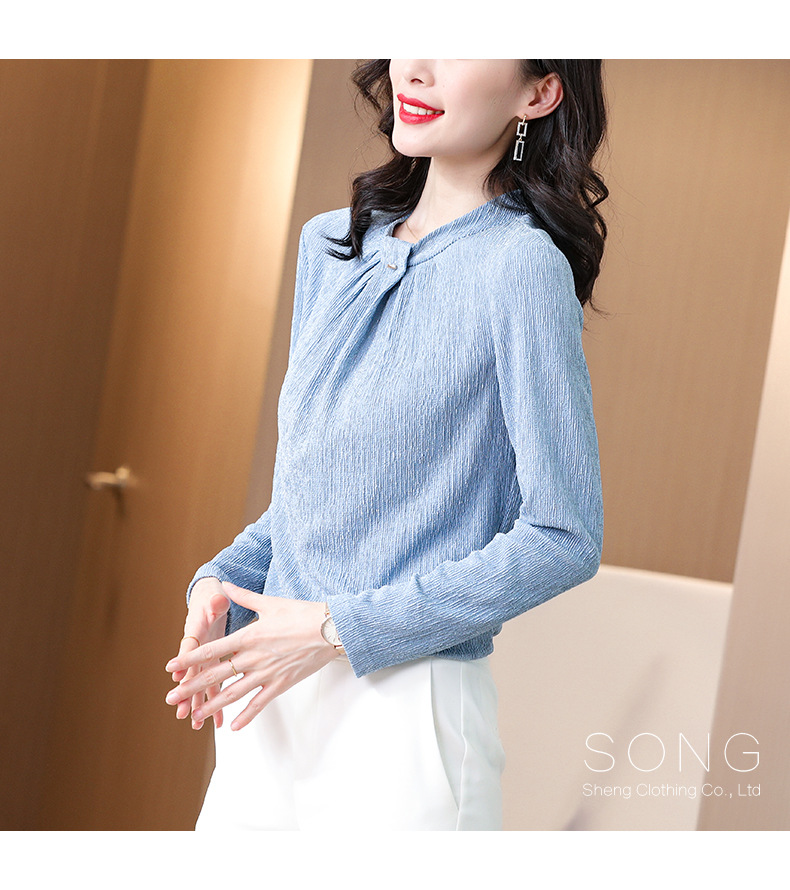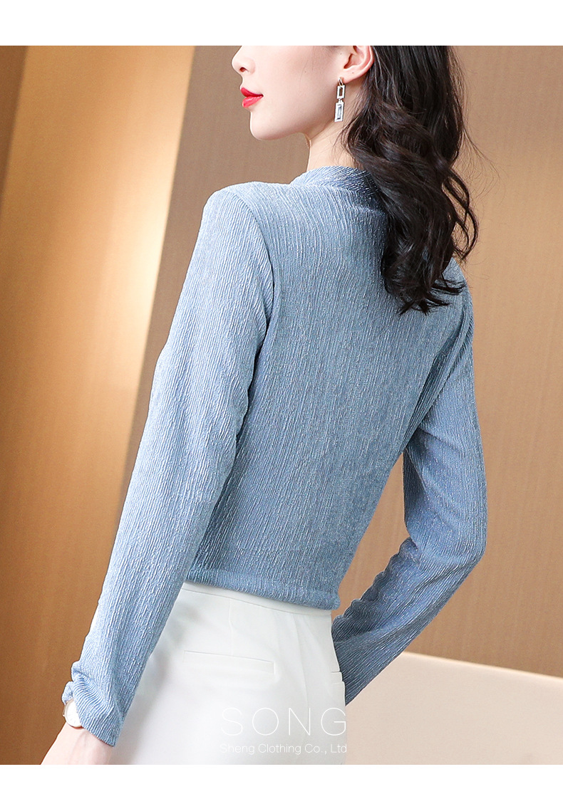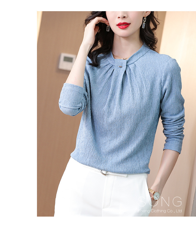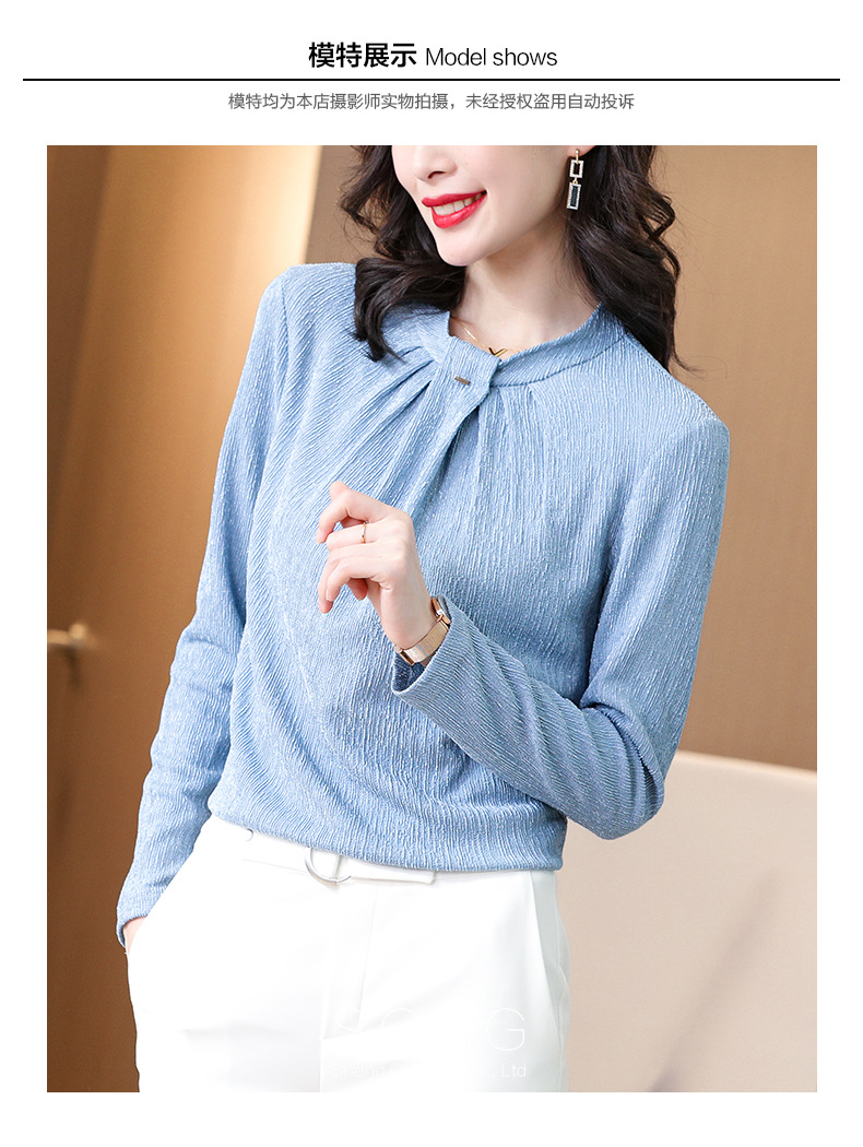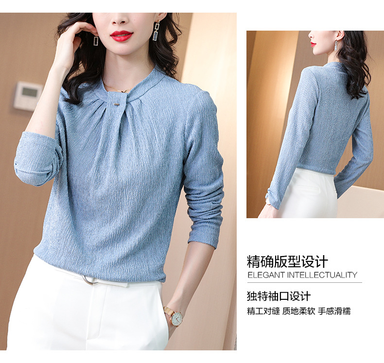 SS- 08-0619针织打底衫女褶皱圆领上衣修身显瘦内搭外穿长袖T恤