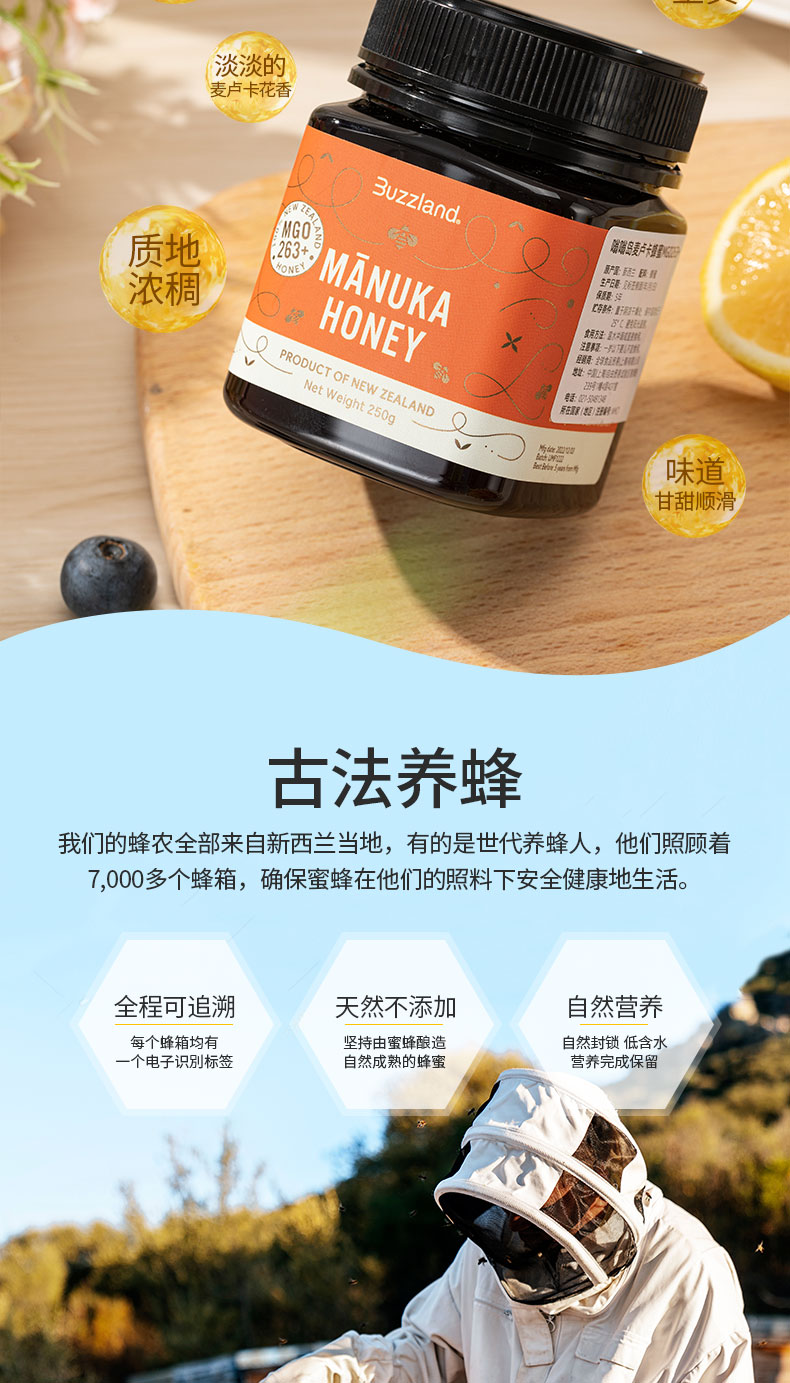 F Buzzland麦卢卡蜂蜜【10+】250g瓶装