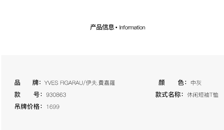 YvesFigarau伊夫·费嘉罗夏季新款舒适透气休闲短袖T恤930863