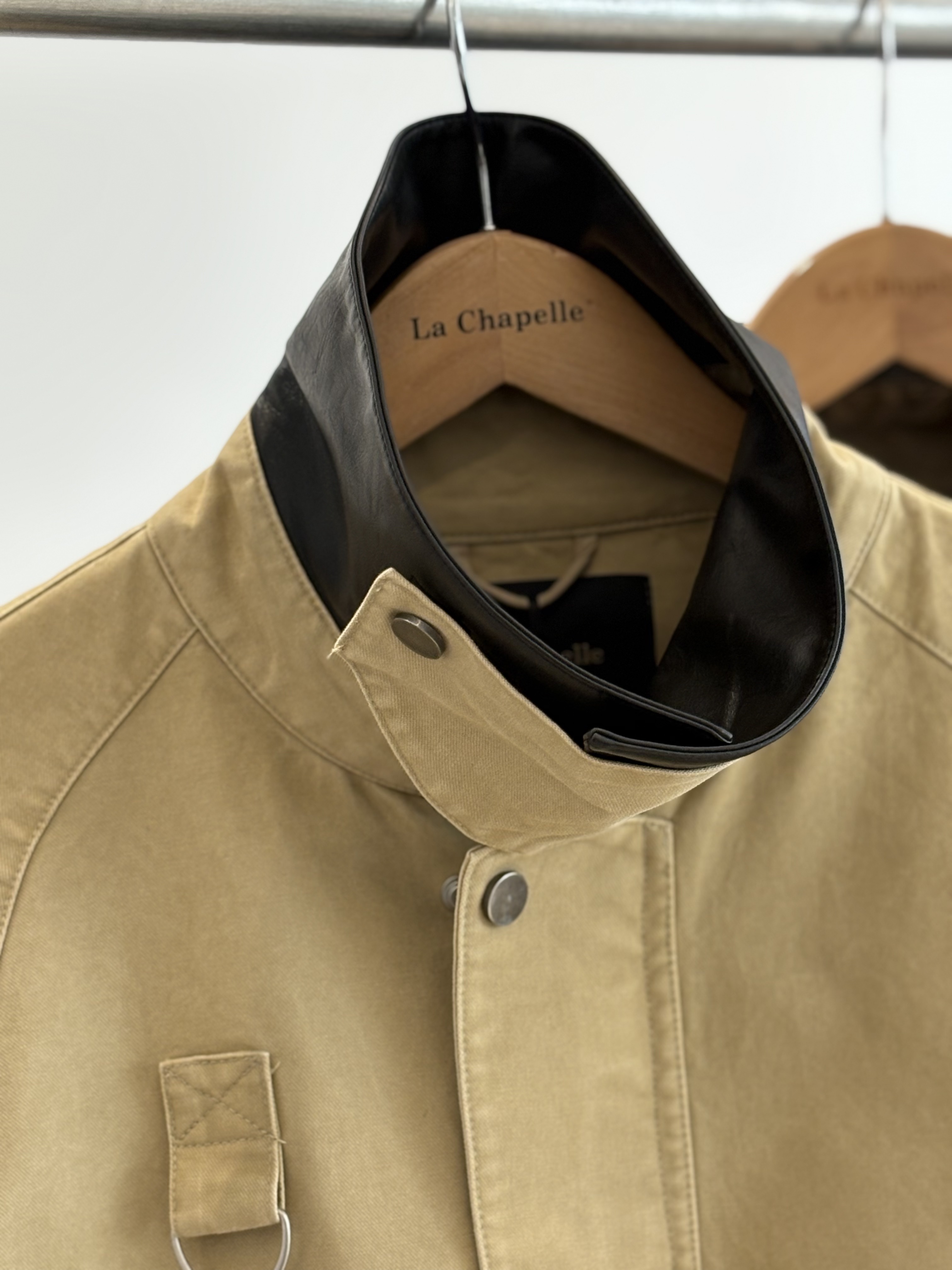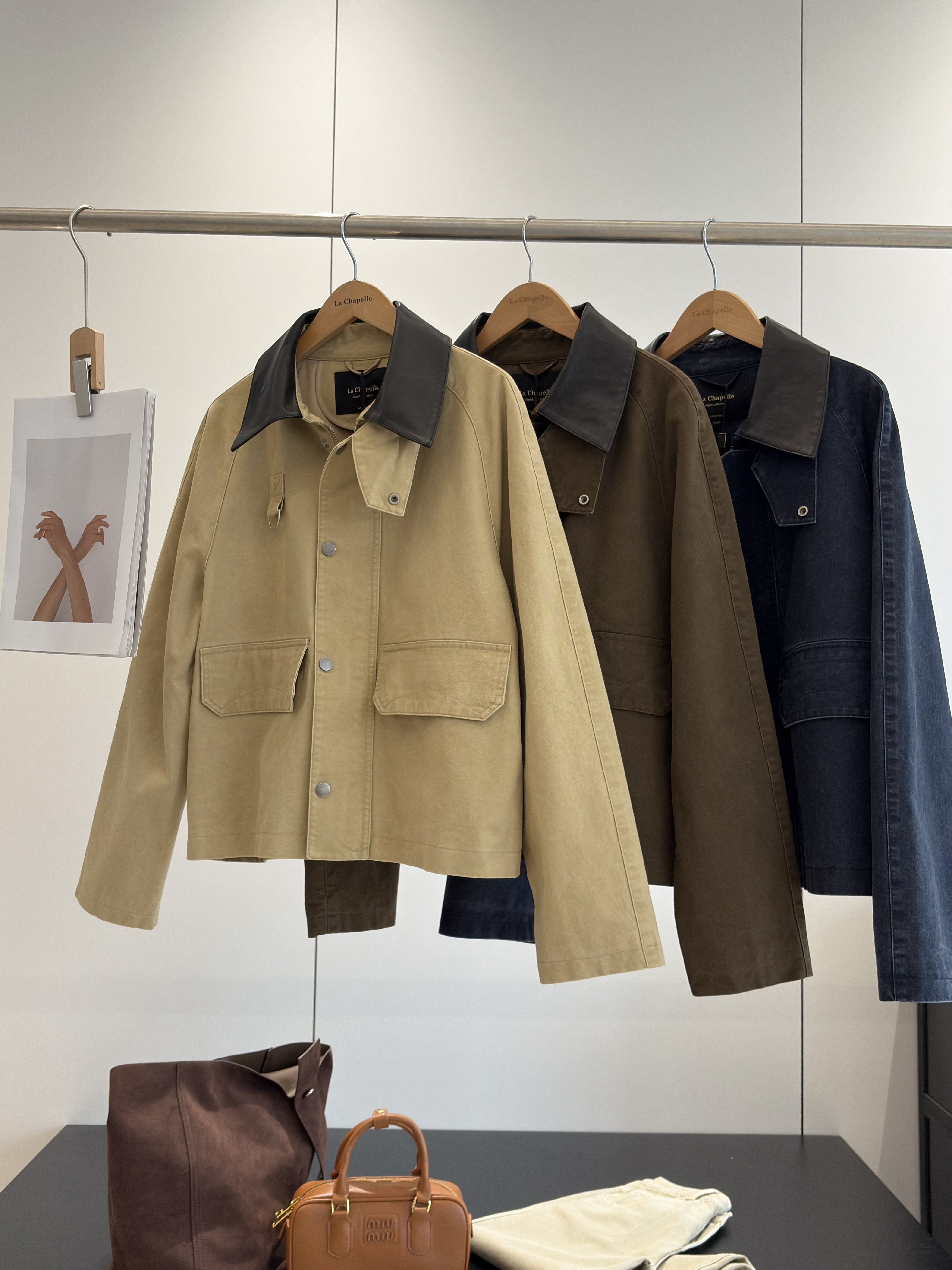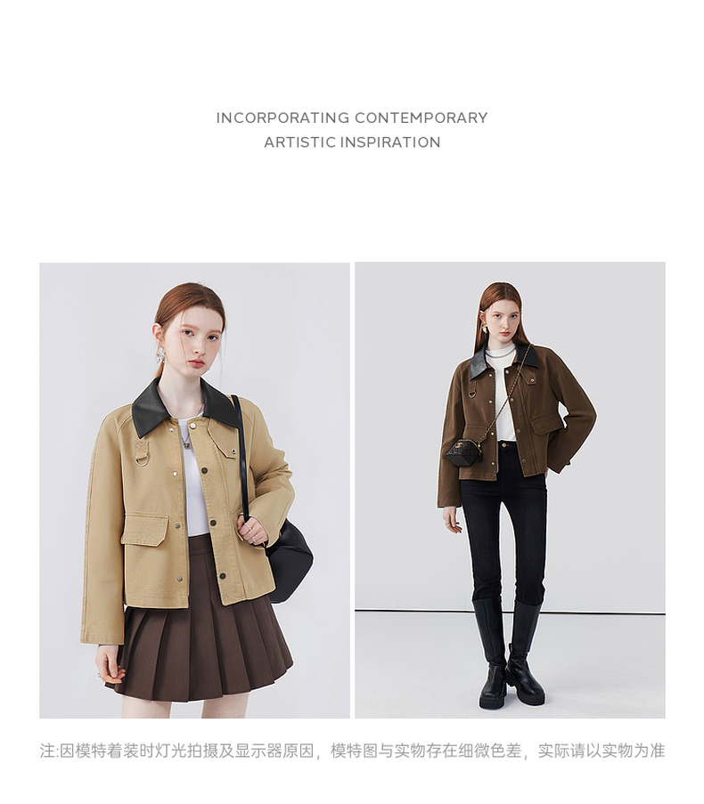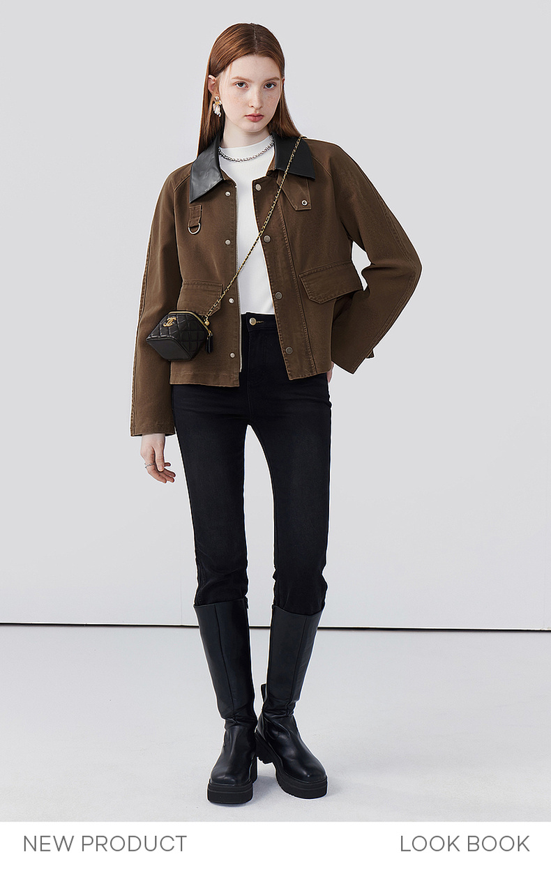 天猫同步【时髦巴恩风】拉夏贝尔/La Chapelle皮质翻领D字环翻盖口袋外套女复古设计感休闲时髦夹克衫