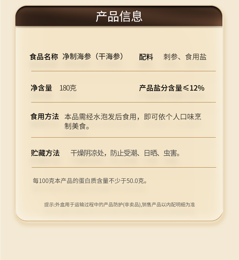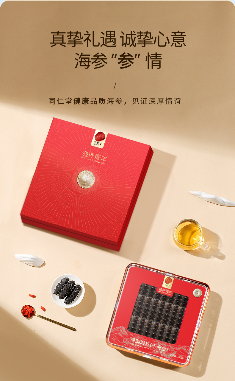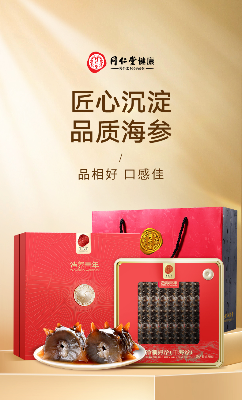 【正宗同仁堂品牌】北京同仁堂 净制海参干海参180克(121-150头/500克) 去砂嘴 去内脏 严格控盐 品质严选SY