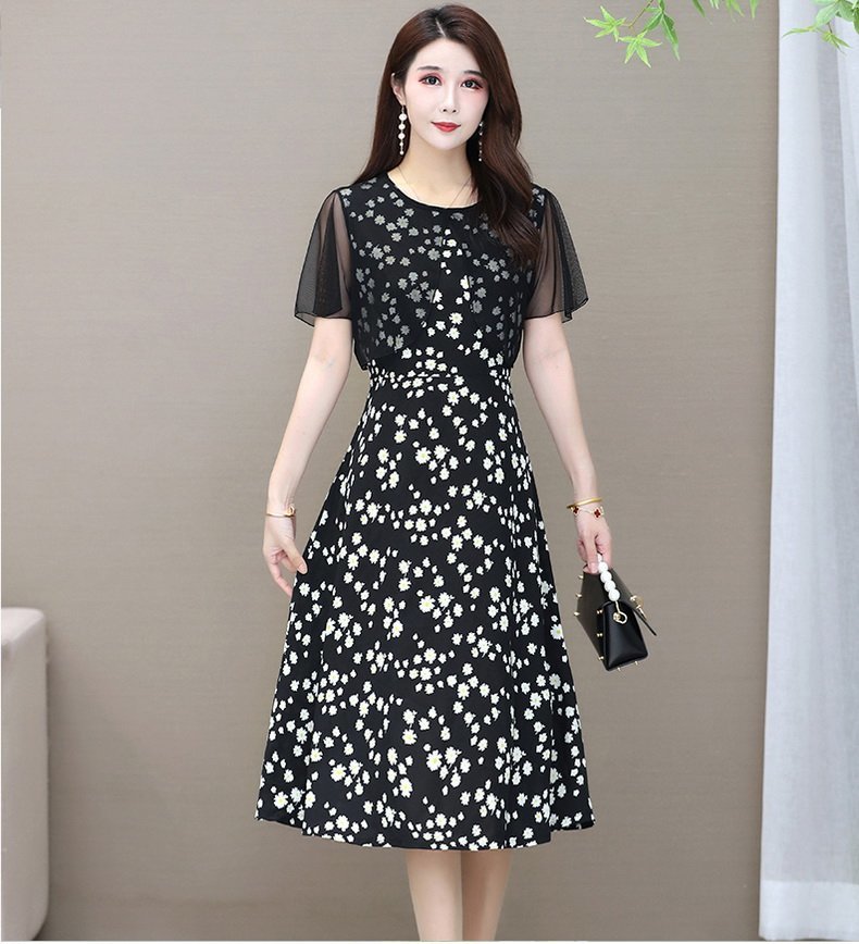 MQ-1224-2003夏季新款韩版宽松时尚V领碎花雪纺连衣裙YY