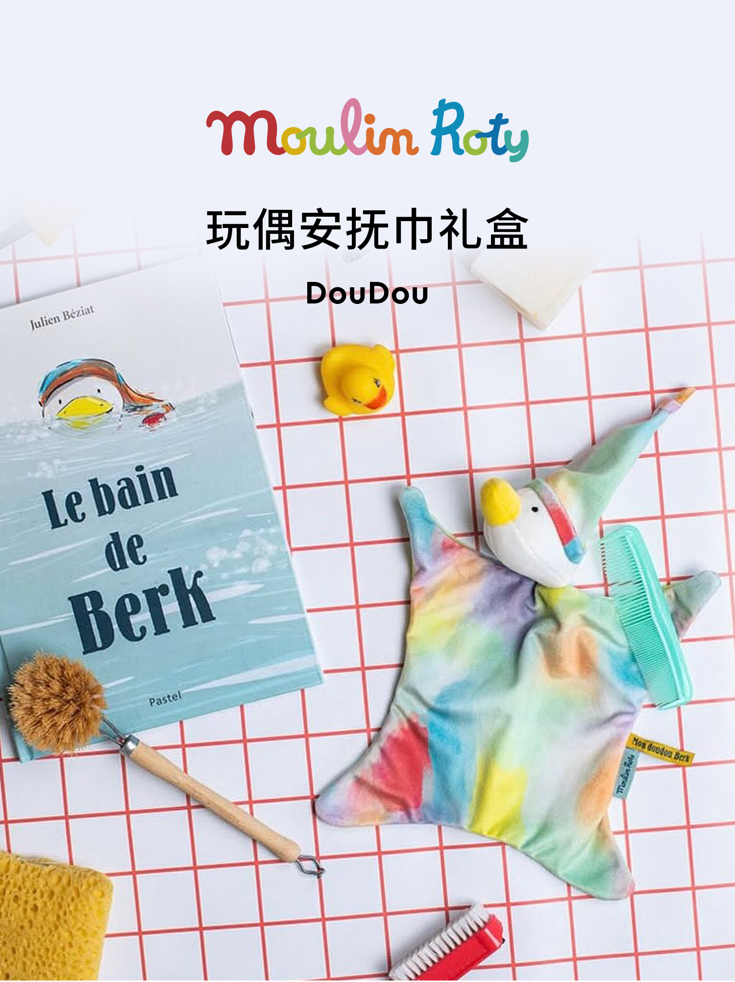 Moulin Roty 安抚巾礼盒 鸭子伯克 法国儿童书籍玩偶系列 适合0岁+ 法国品牌 -894011