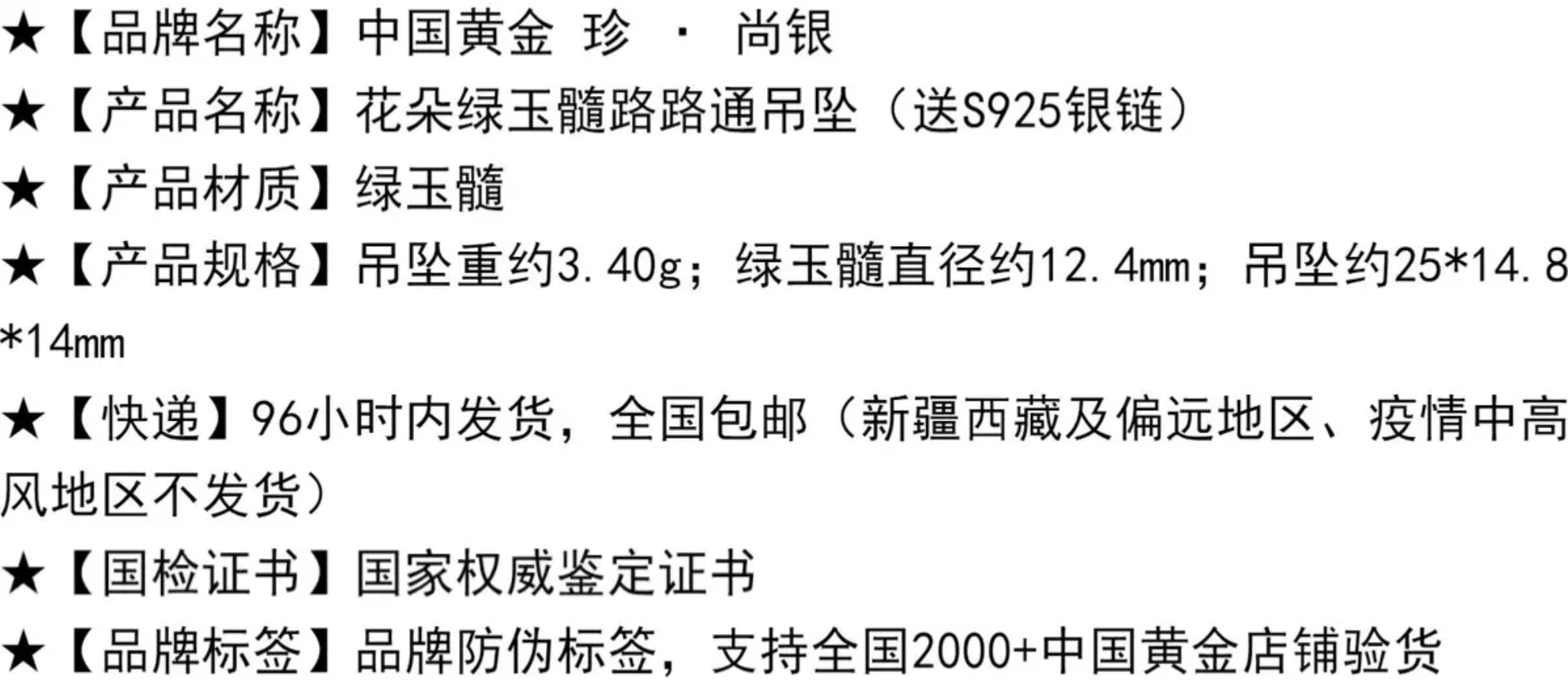 【品牌授权】花朵绿玉髓路路通吊坠(送S925银链)