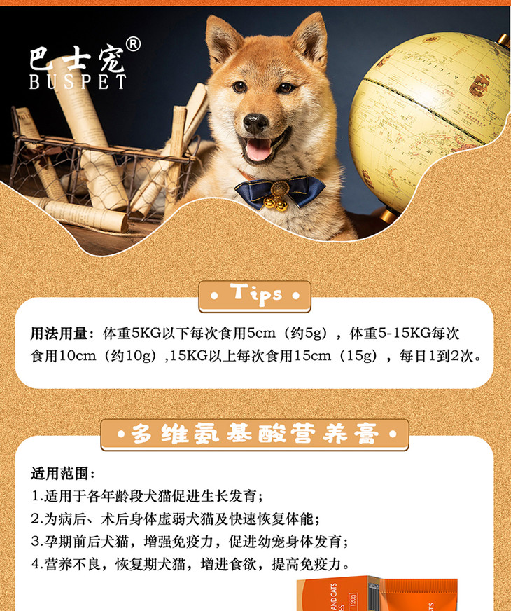 【效期到26年12月】Buspet巴士宠多维氨基酸营养膏120g 麦蒂宠物医疗渠道专供,网上禁卖。
