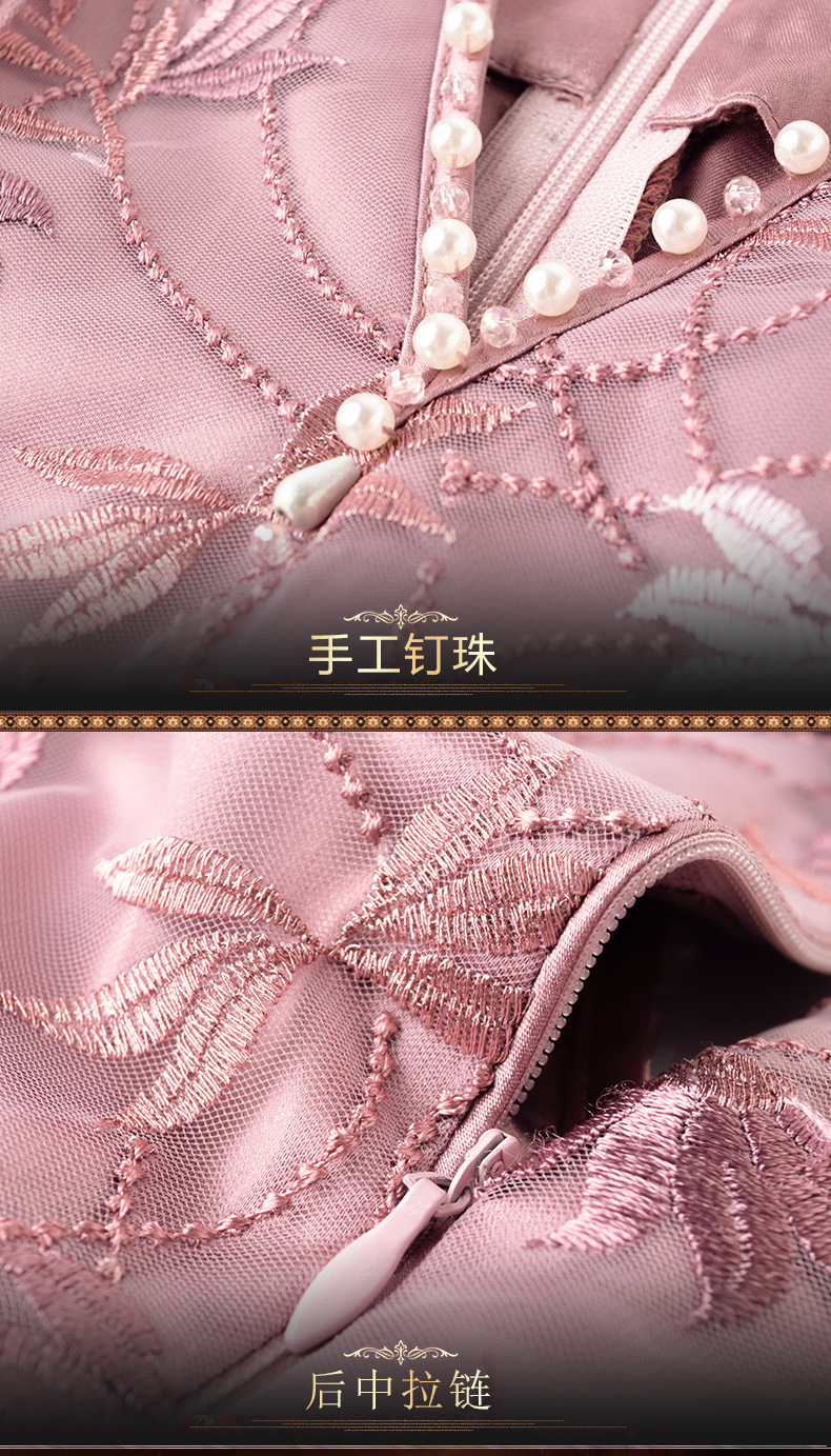 蕾丝加绒长袖保暖毛领日常旗袍 MLS6113