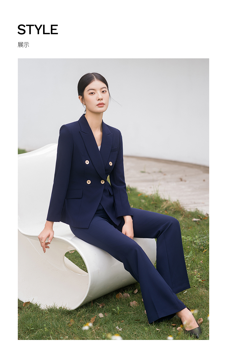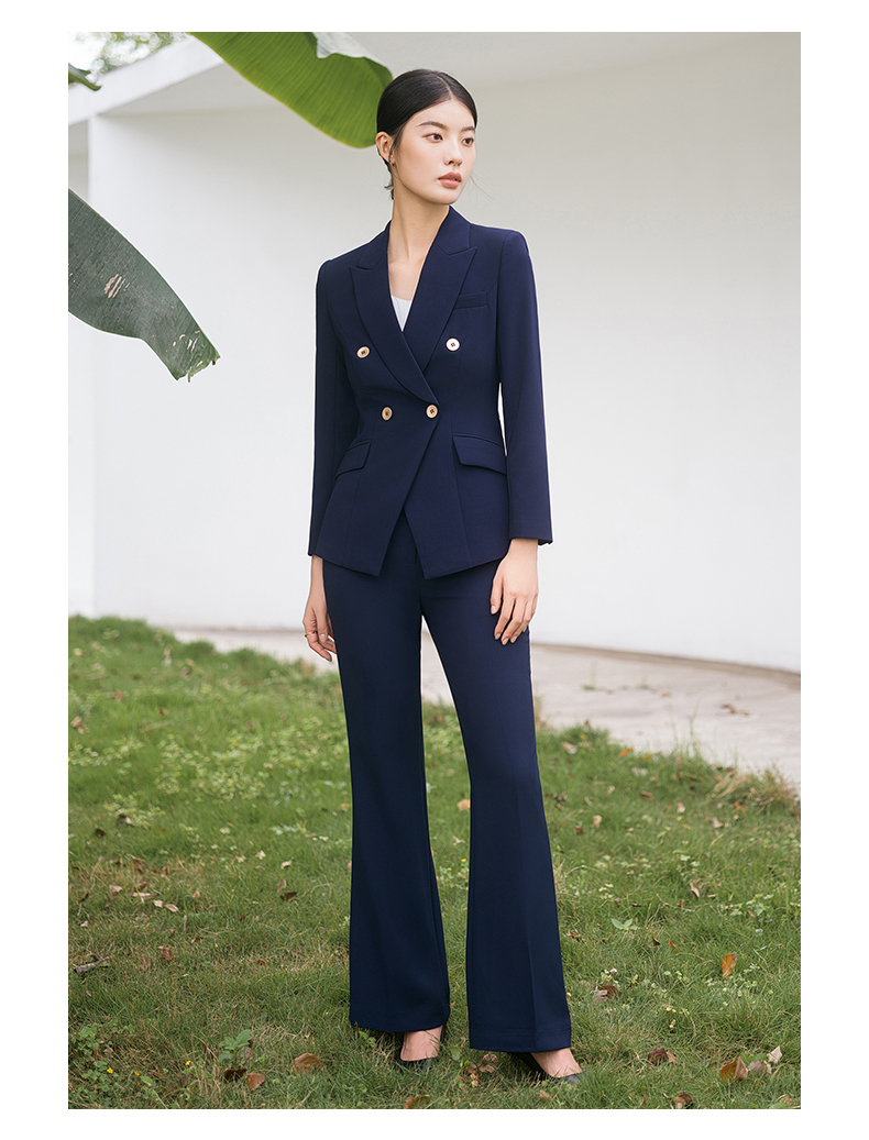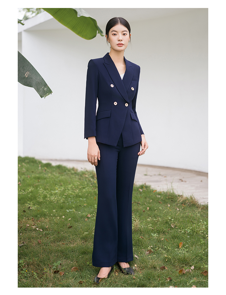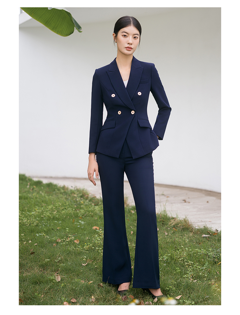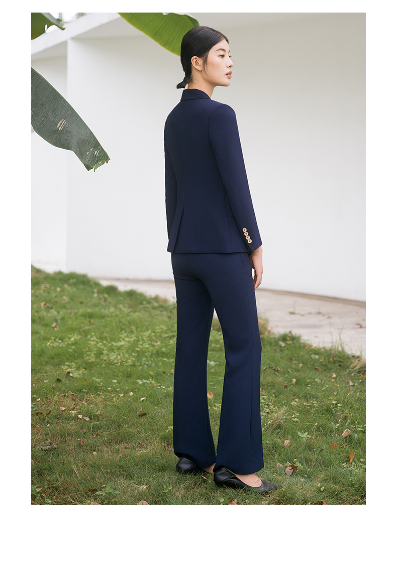 IWY/时尚干练藏青色工作服气质售楼部白领正式场合西装套装微喇裤C11355+P31356