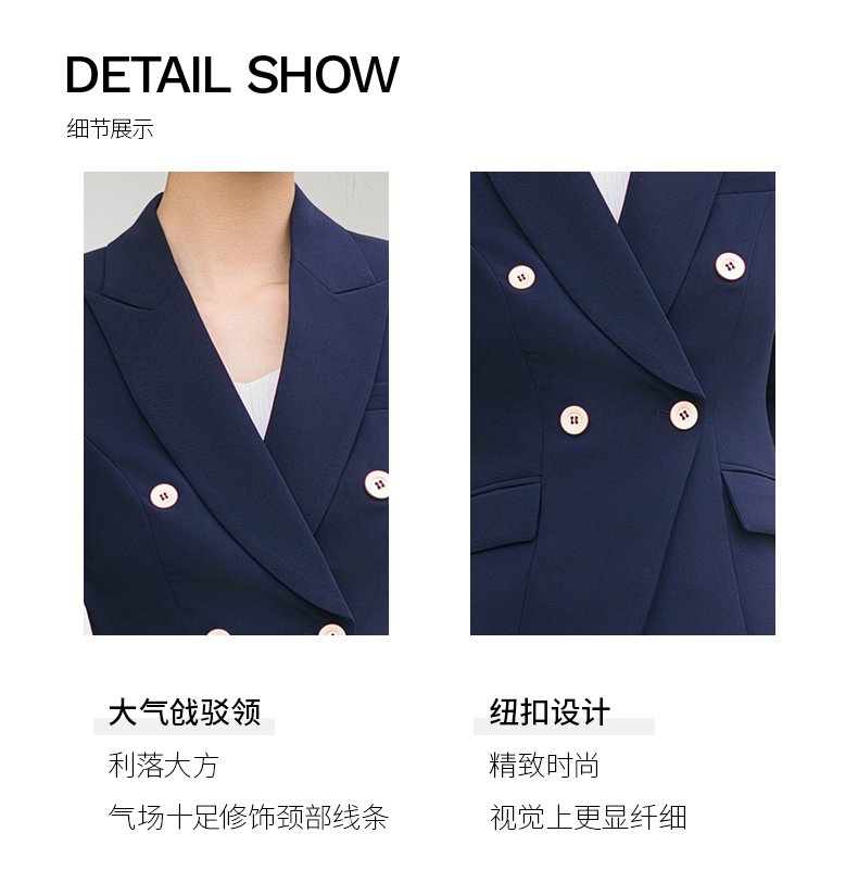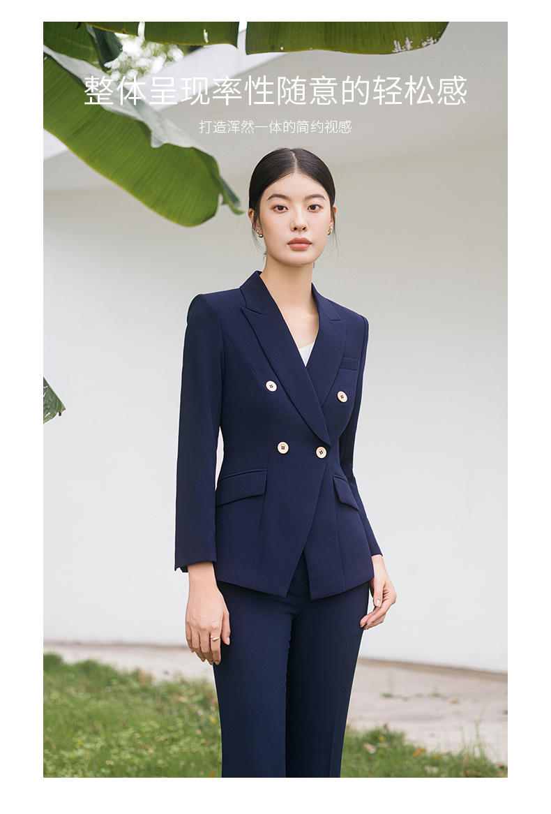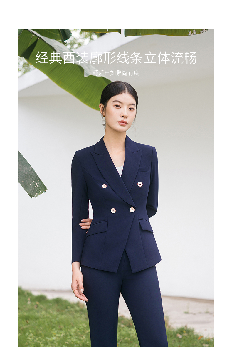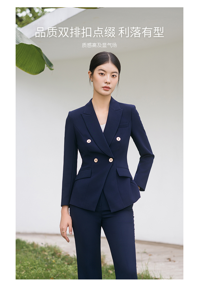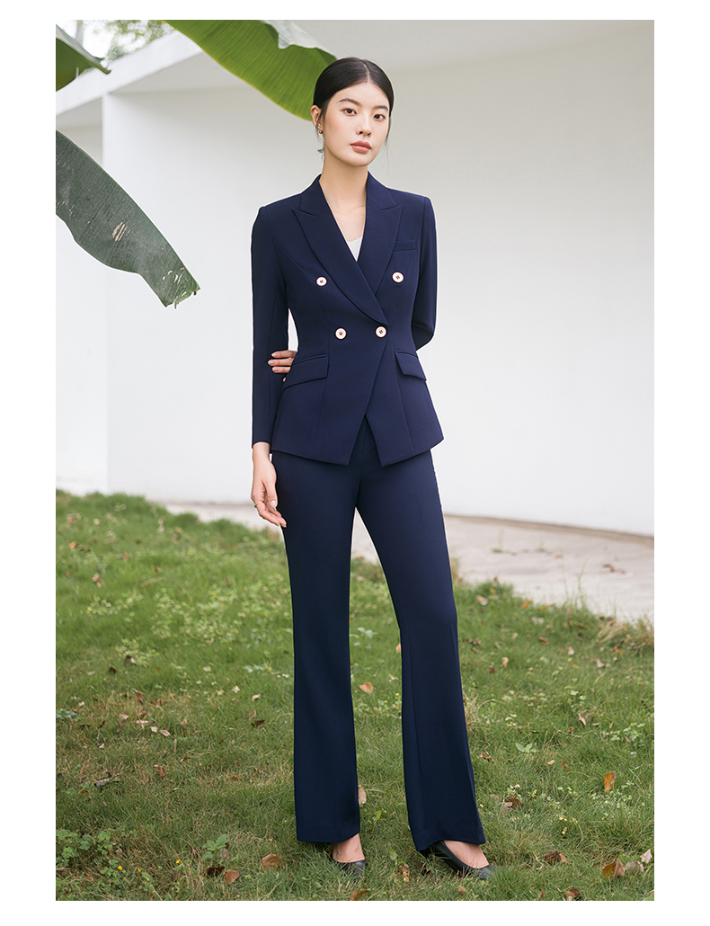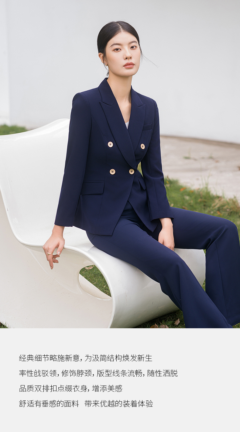 IWY/时尚干练藏青色工作服气质售楼部白领正式场合西装套装微喇裤C11355+P31356