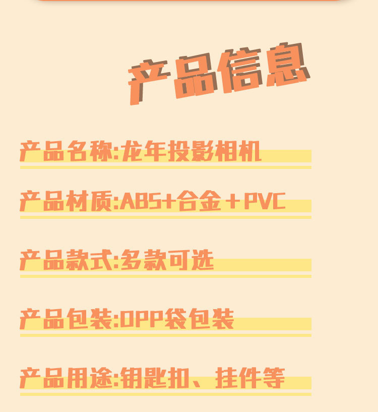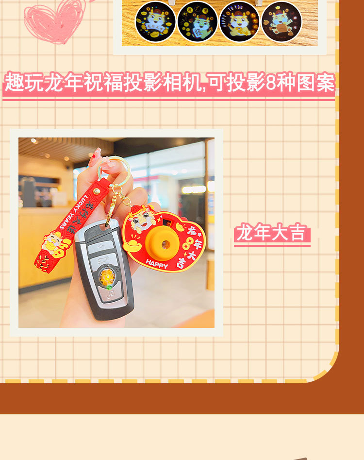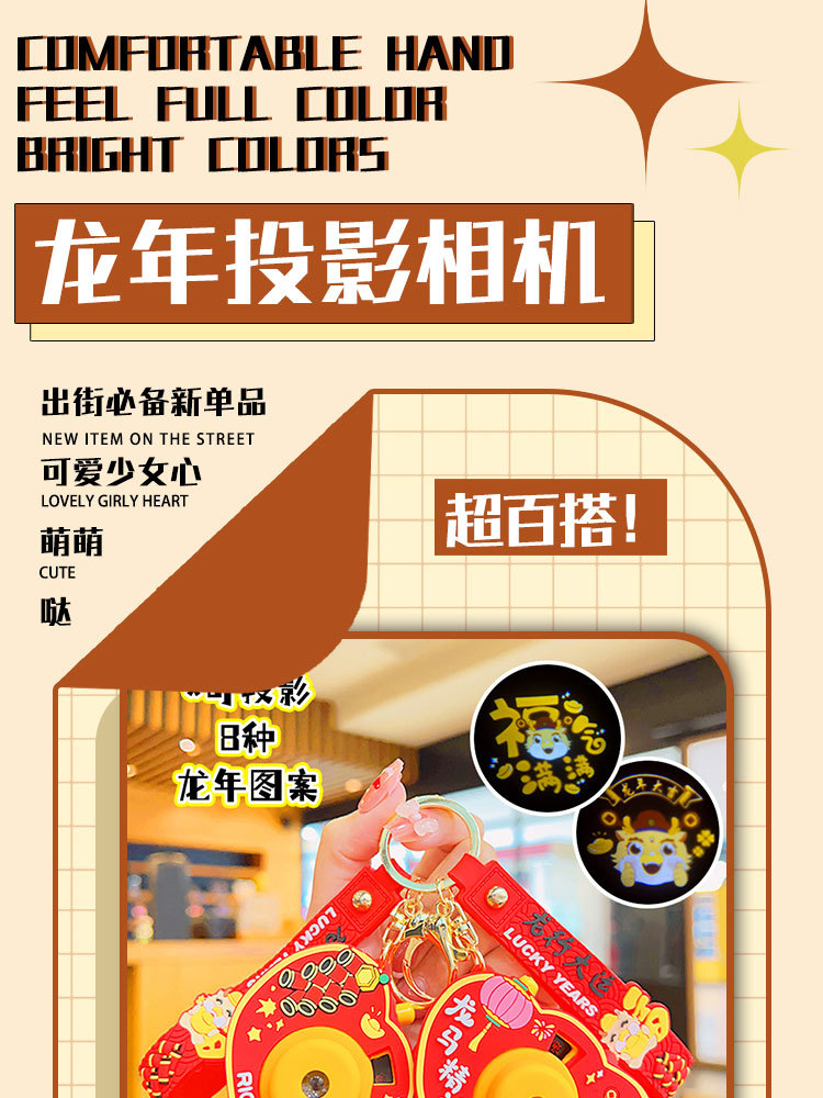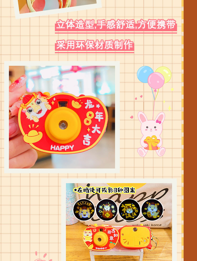 国潮龙年【投影相机钥匙扣】汽车钥匙扣挂件 投影相机包包挂饰礼品 情侣钥匙挂饰 新年