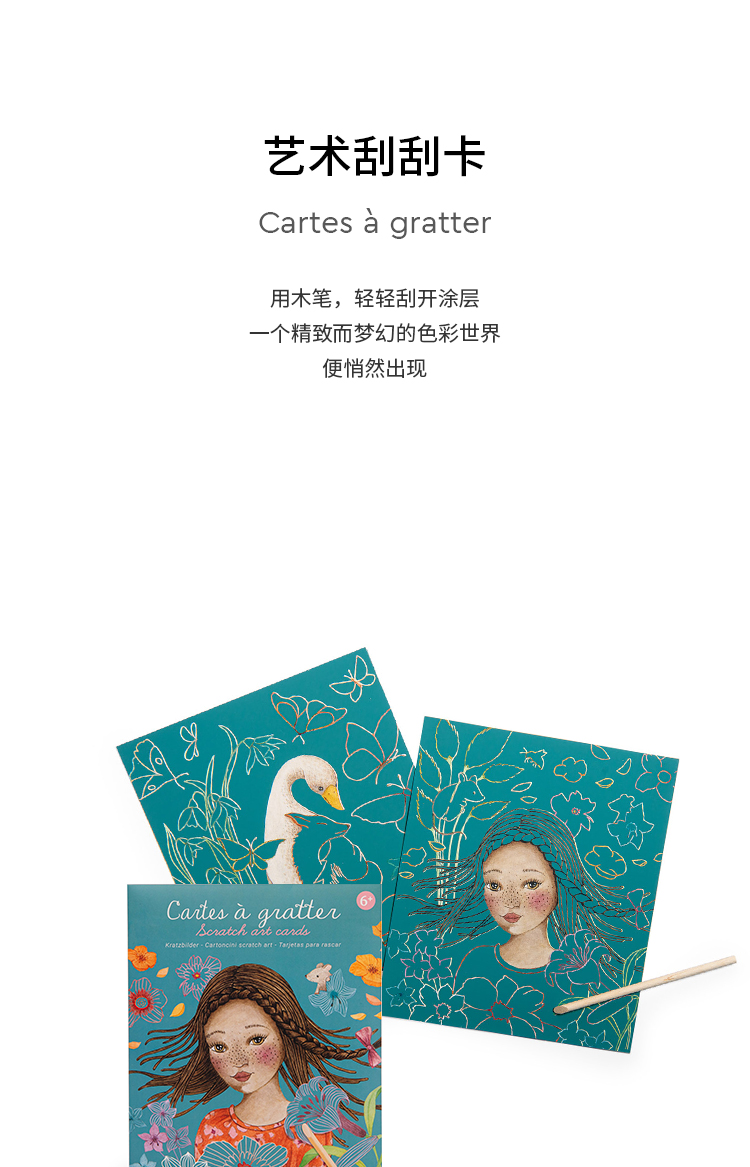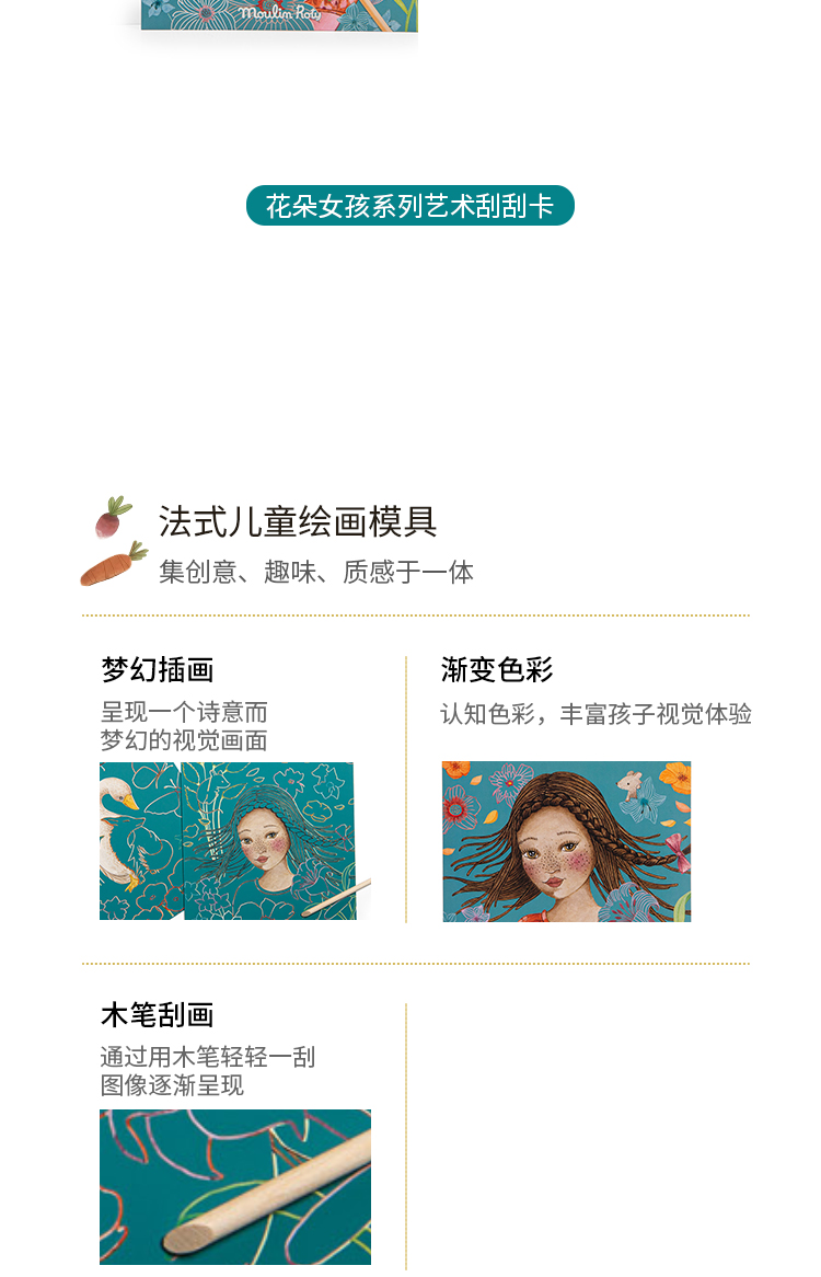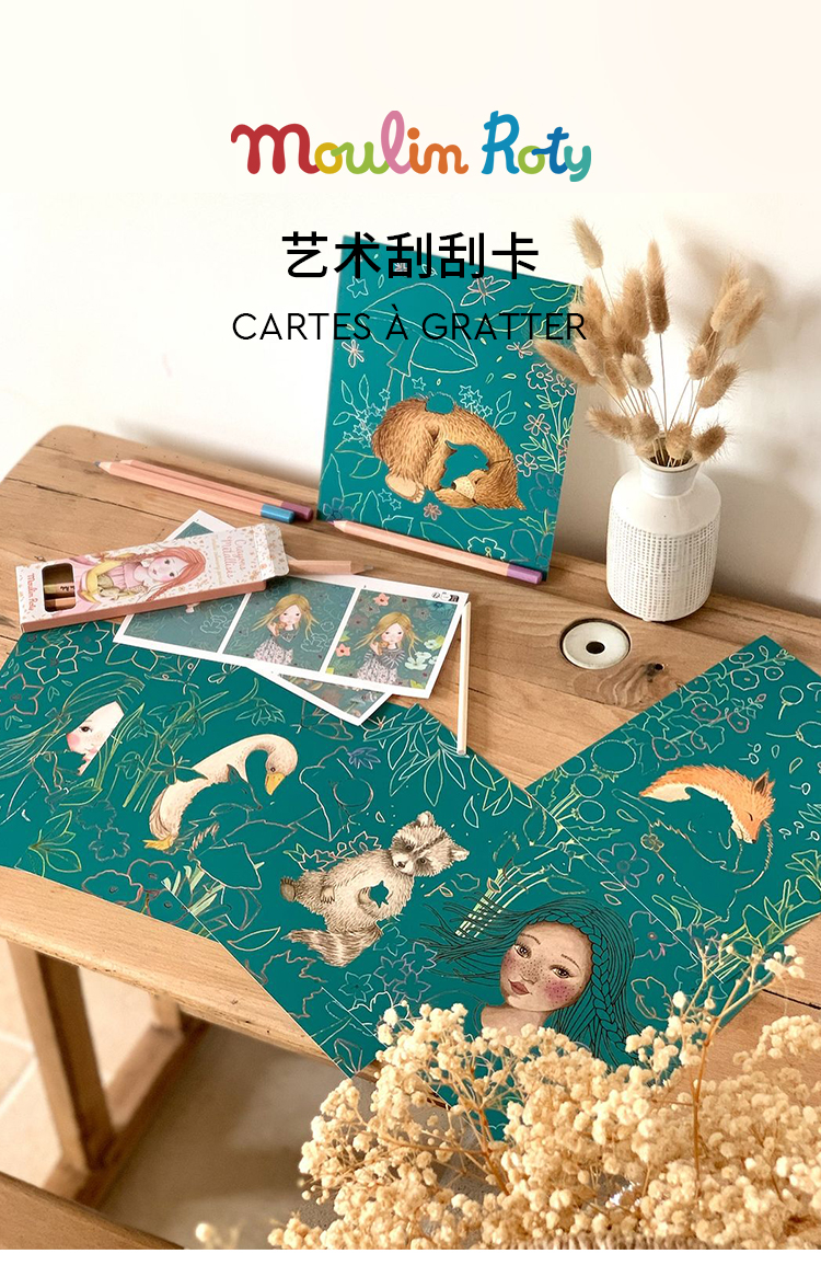 Moulin Roty 艺术刮刮卡 创意美学 适合年龄3岁+ 花朵女孩系列 艺术培养 法国 710606