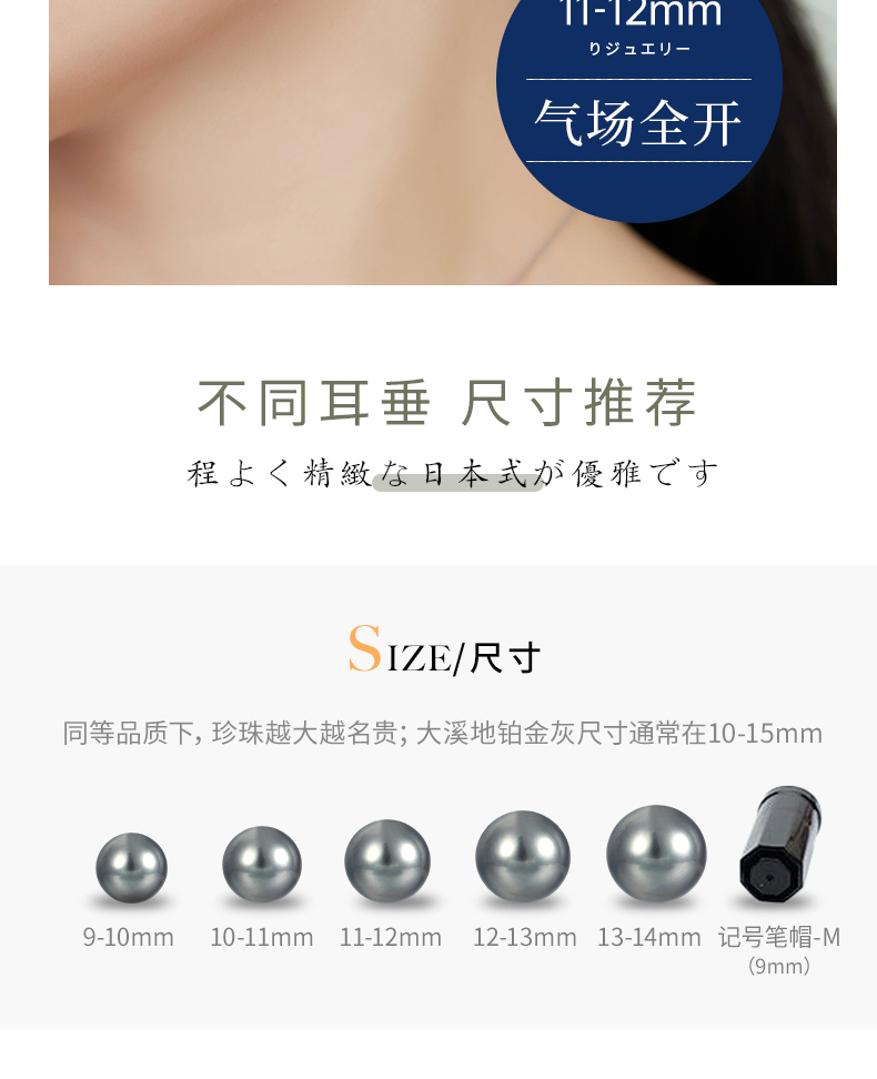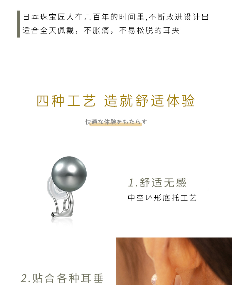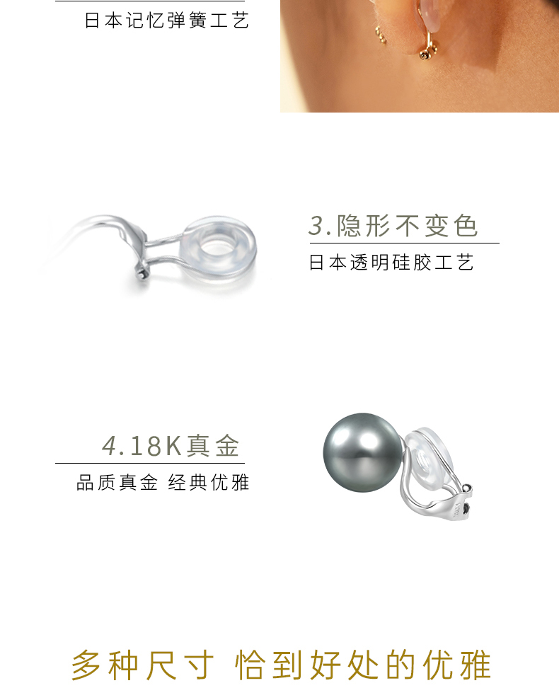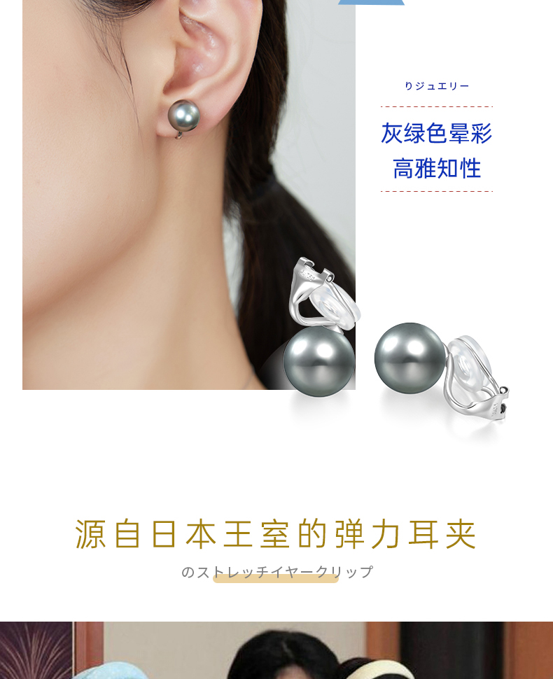 【天猫同款】悦甄 18k金大溪地铂金灰珍珠耳夹 classic