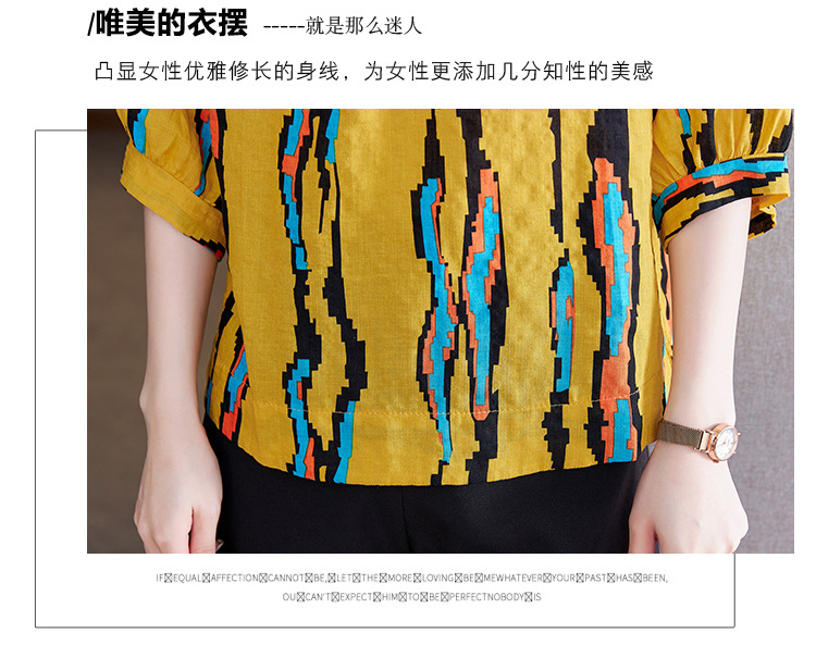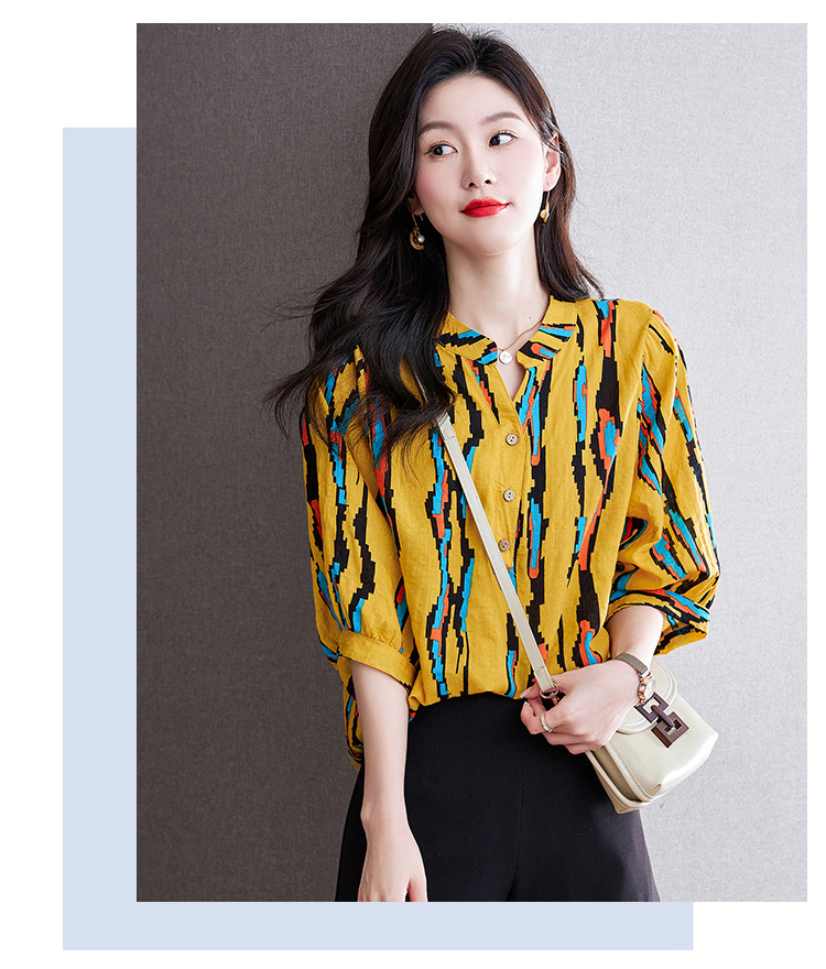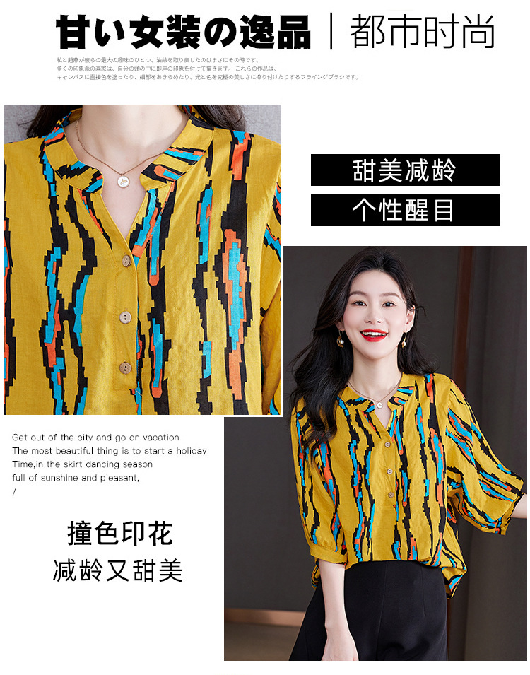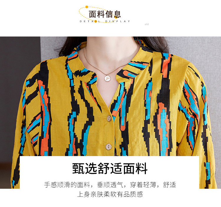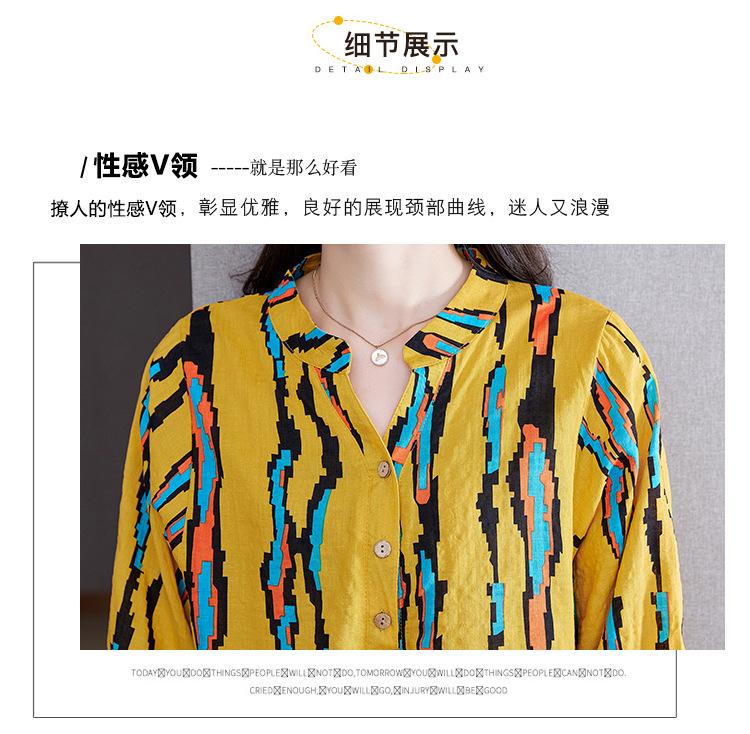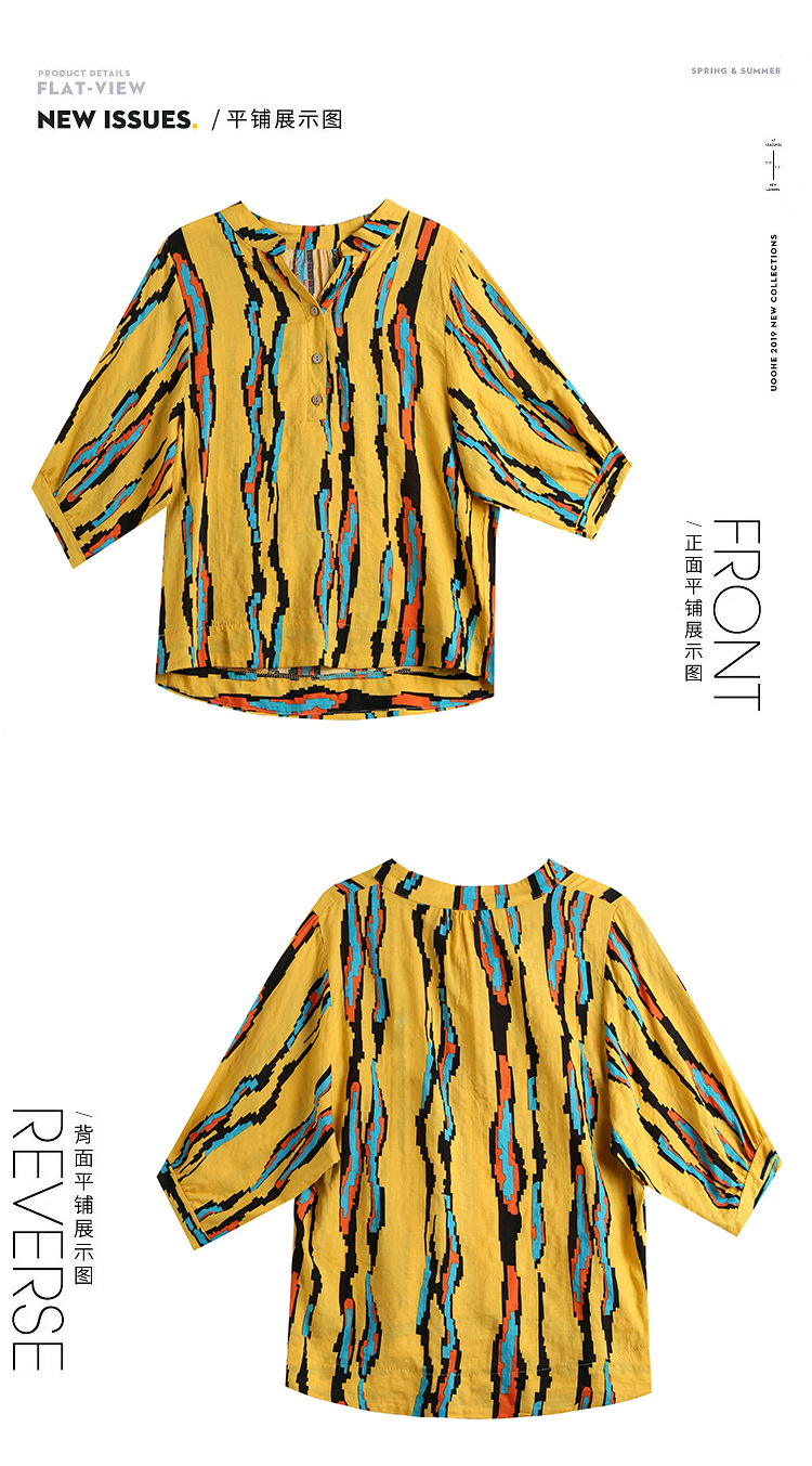 宽松民族风,加大码衬衫套头慵懒风上衣KQL-8598