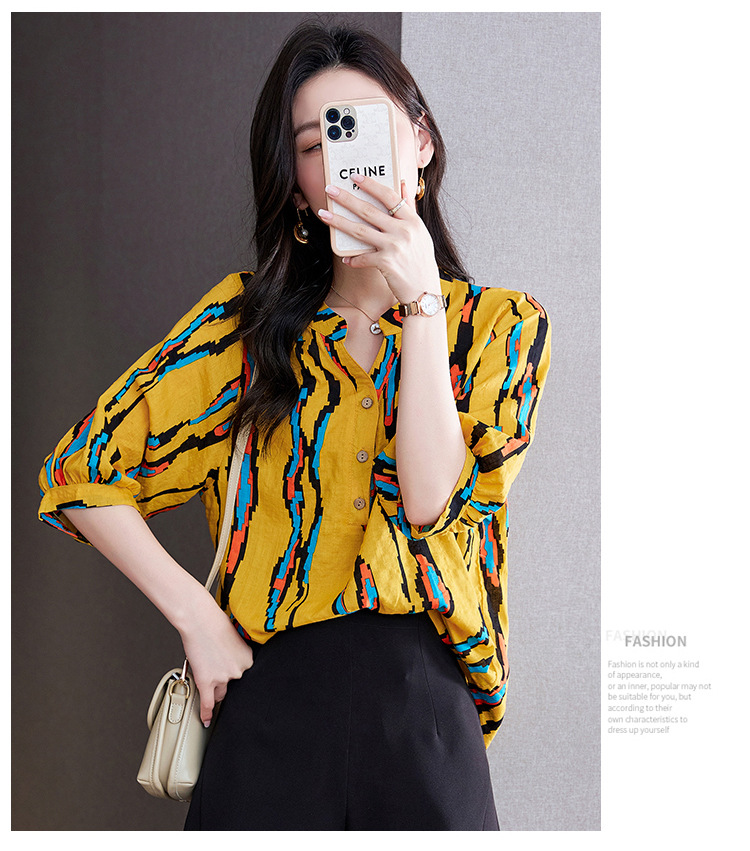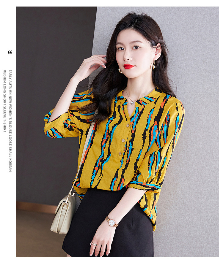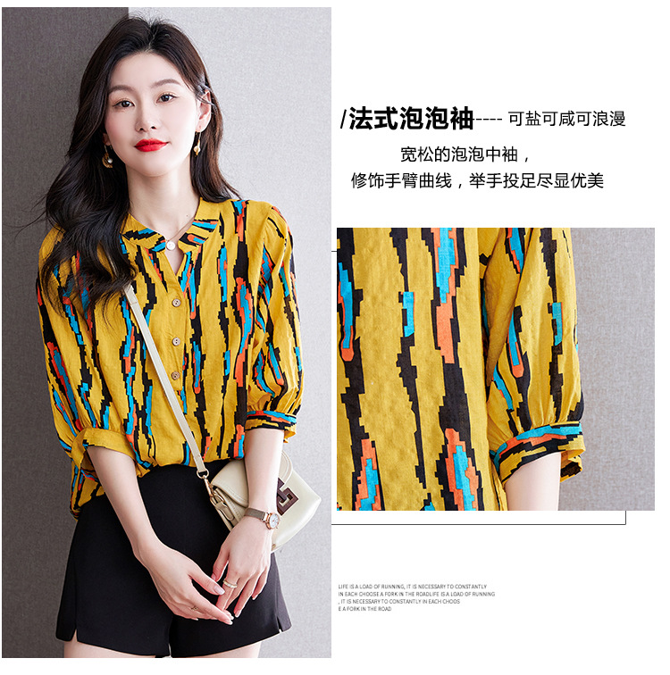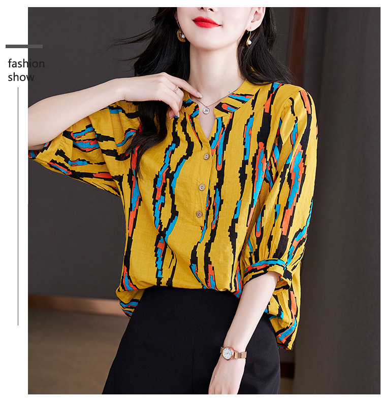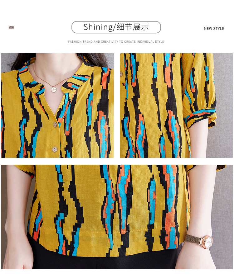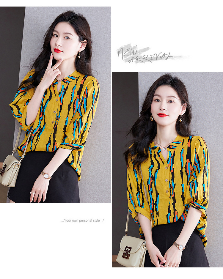 宽松民族风,加大码衬衫套头慵懒风上衣KQL-8598