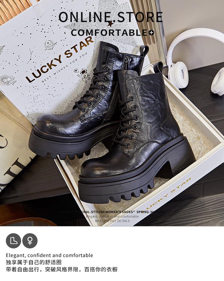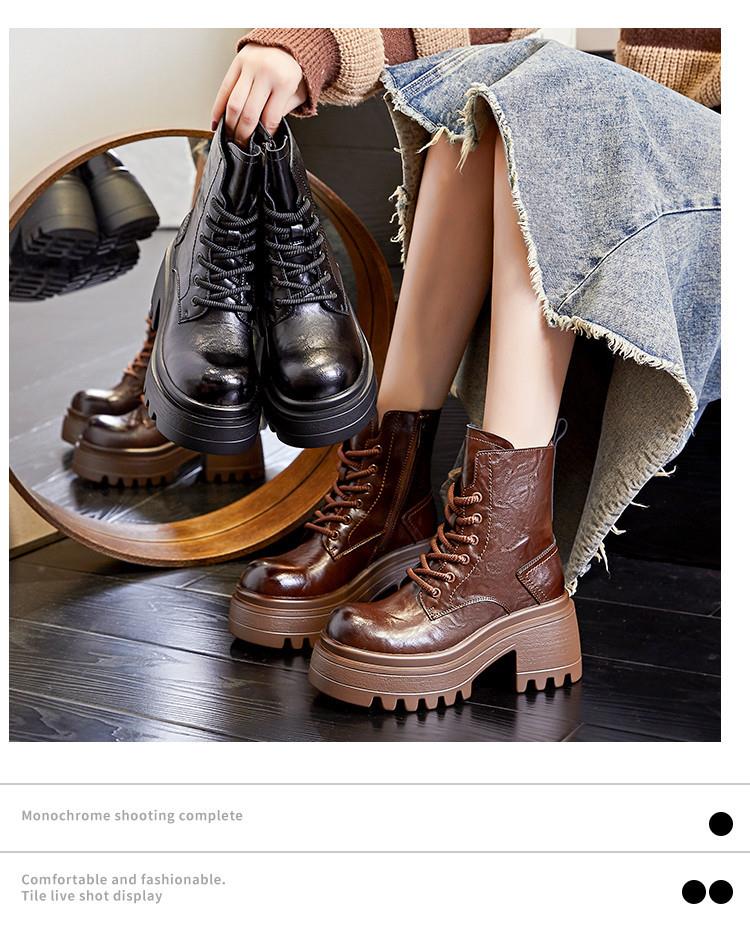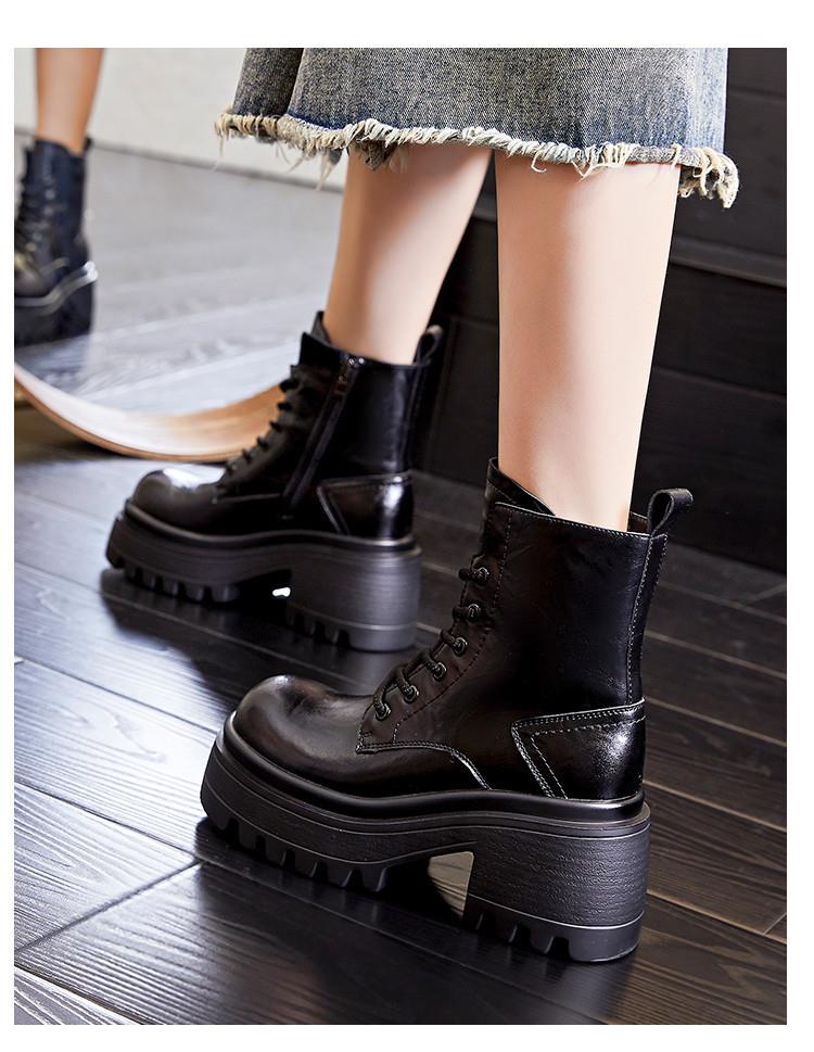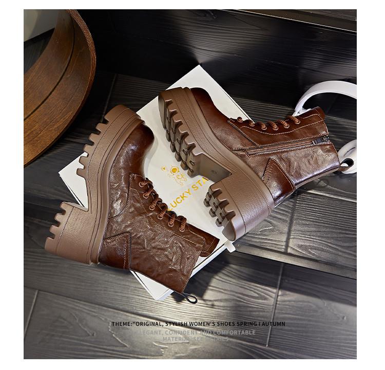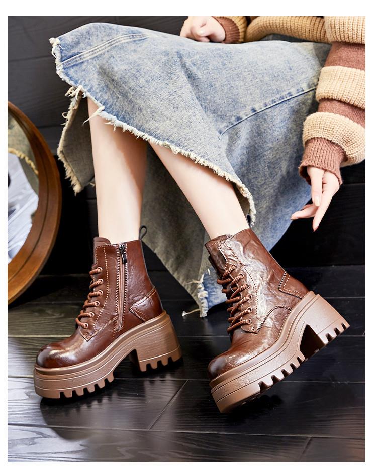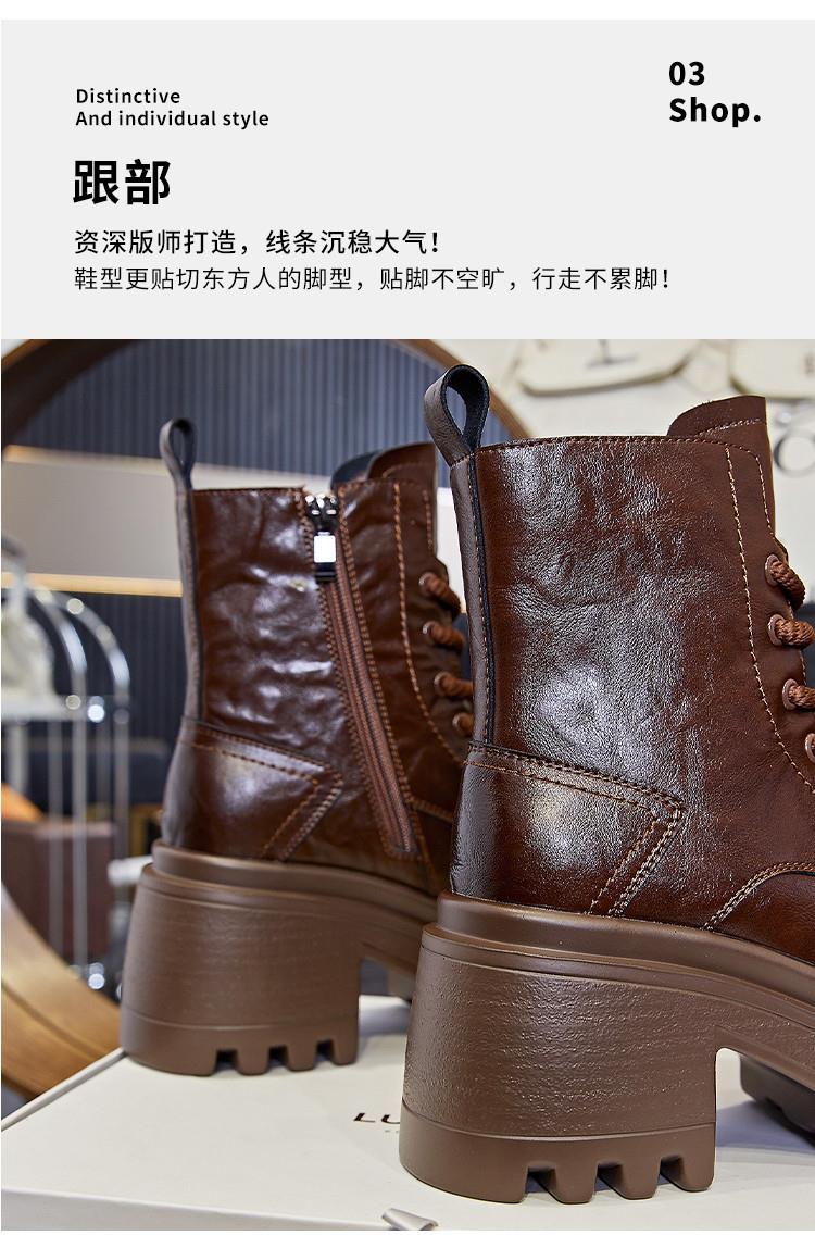 真皮马丁靴女2023秋冬新款高跟复古短靴女休闲百搭靴子女时尚女靴