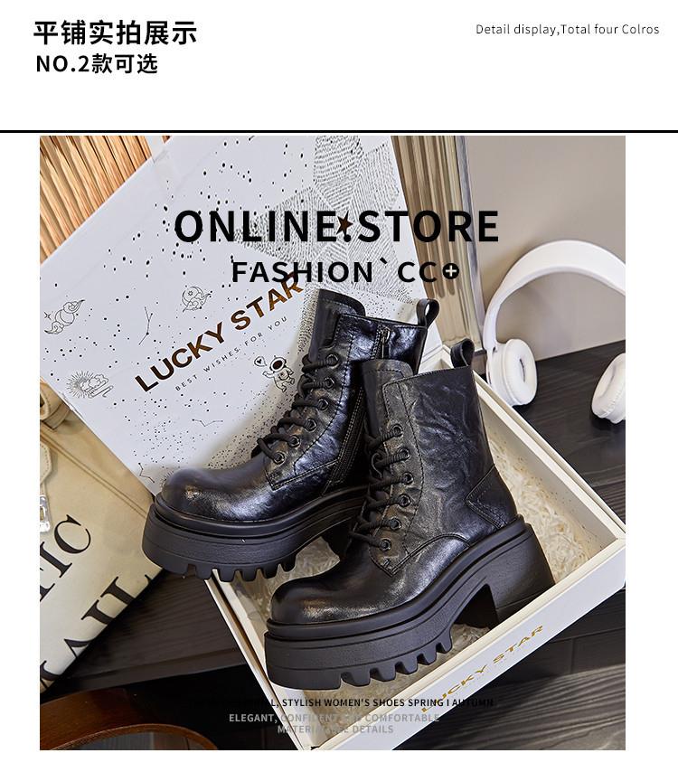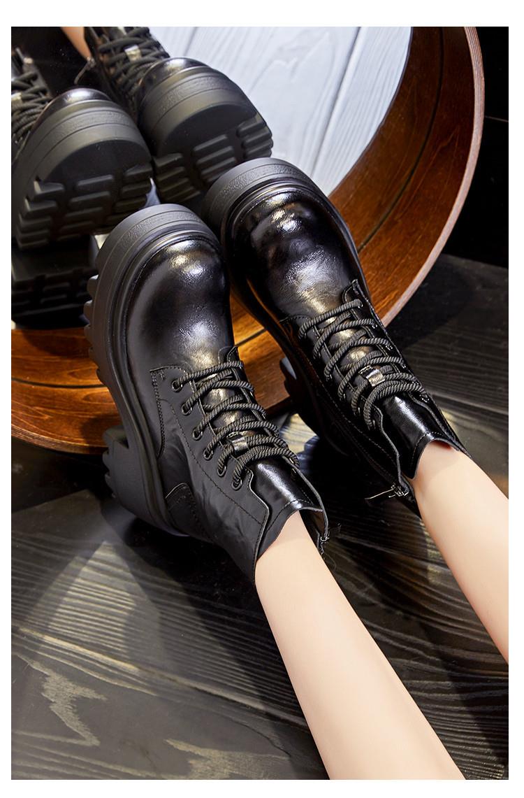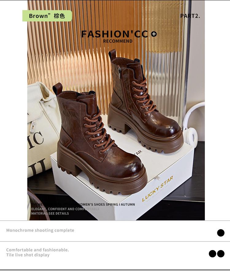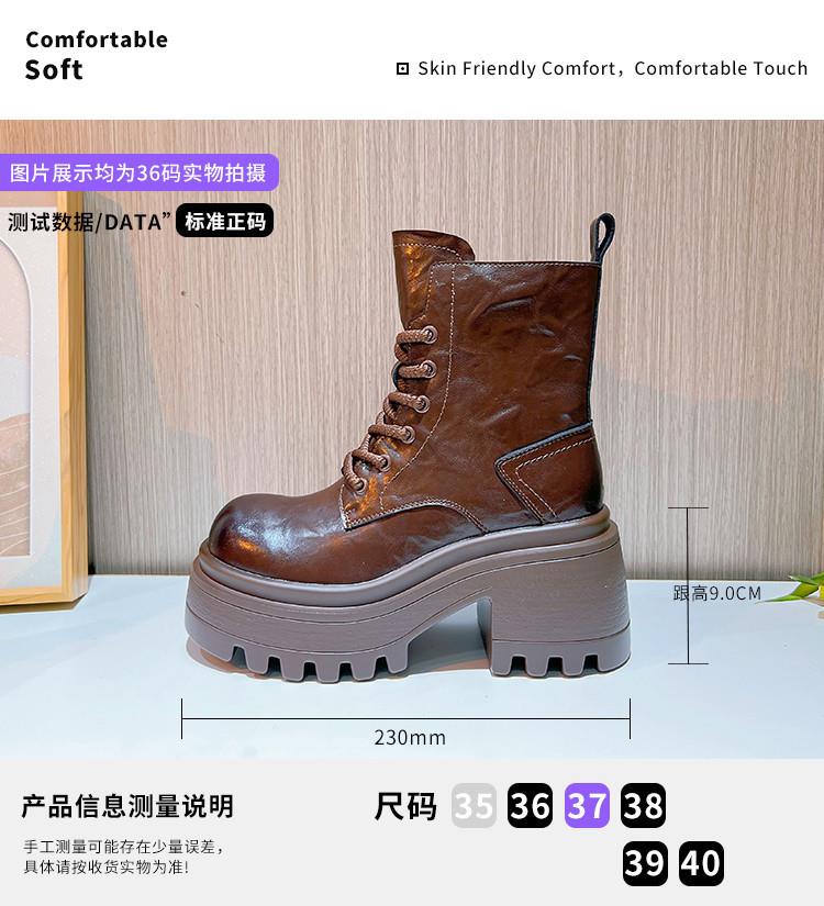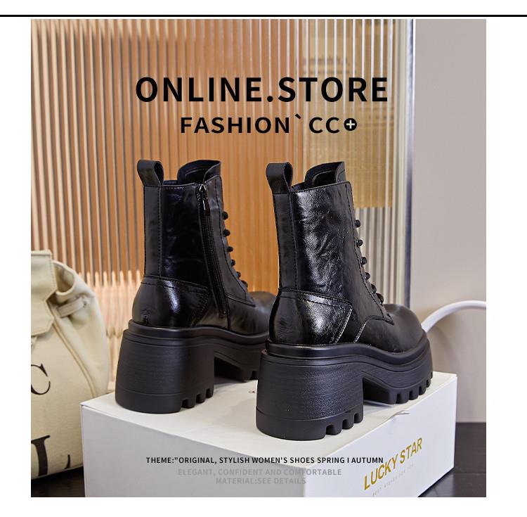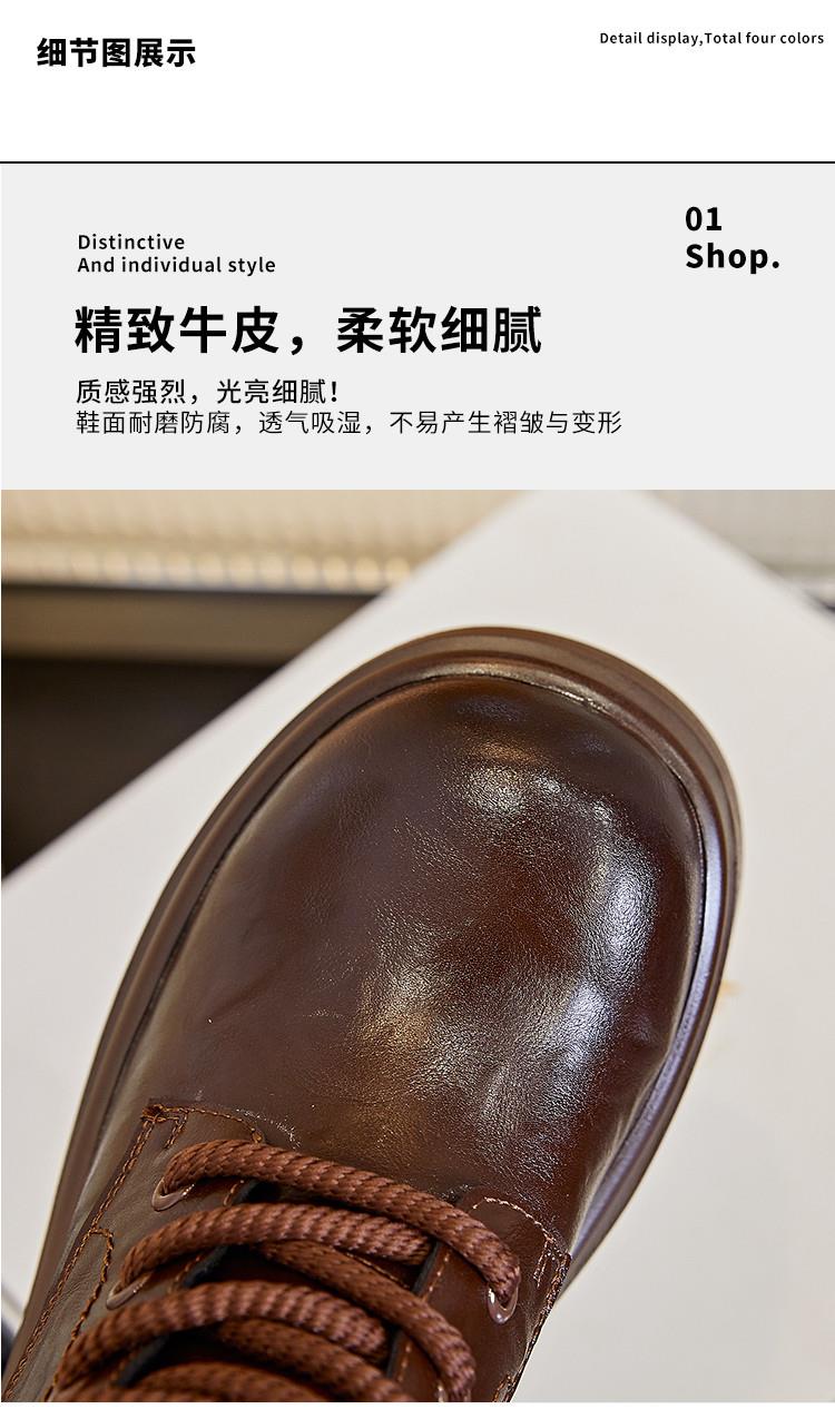 真皮马丁靴女2023秋冬新款高跟复古短靴女休闲百搭靴子女时尚女靴