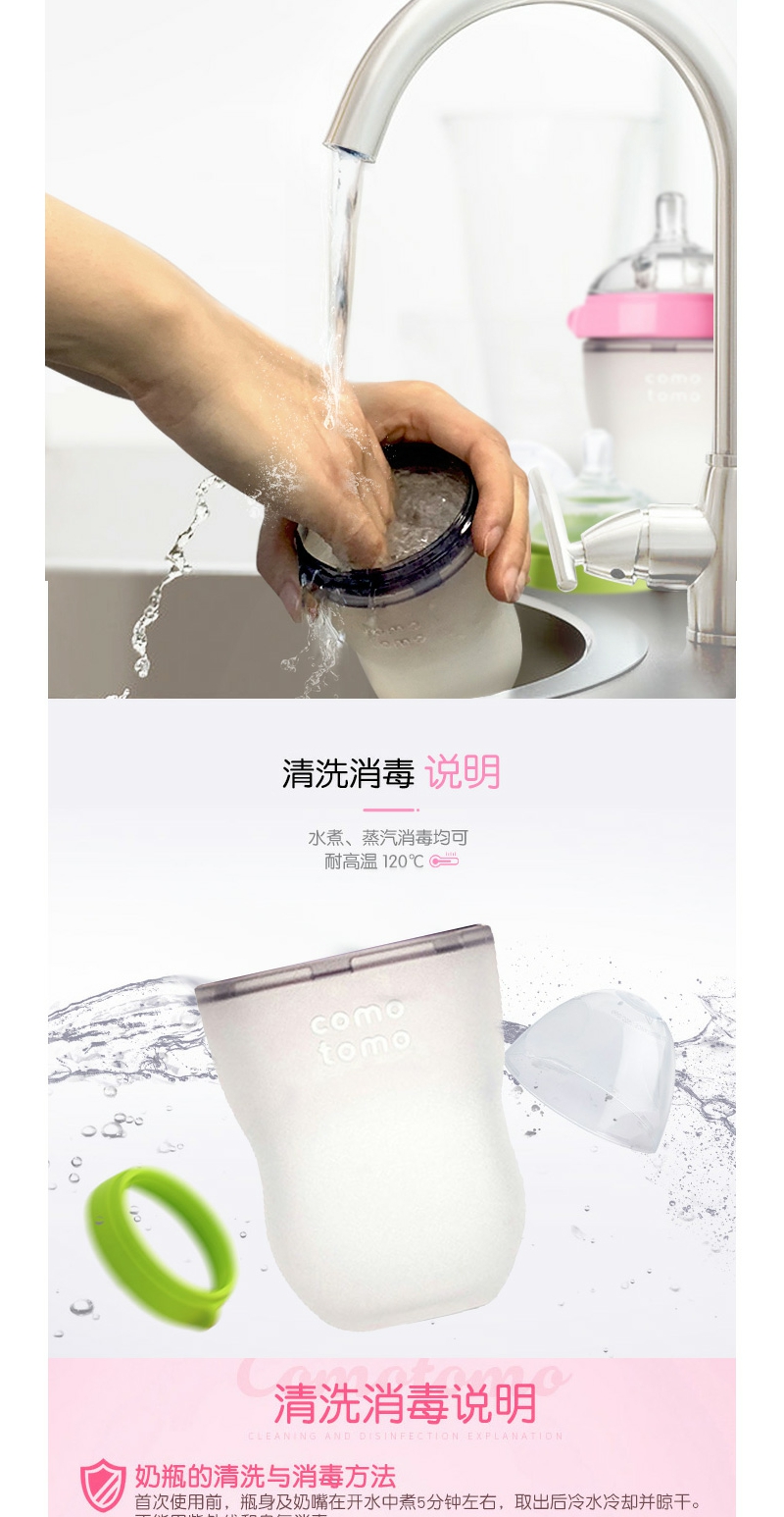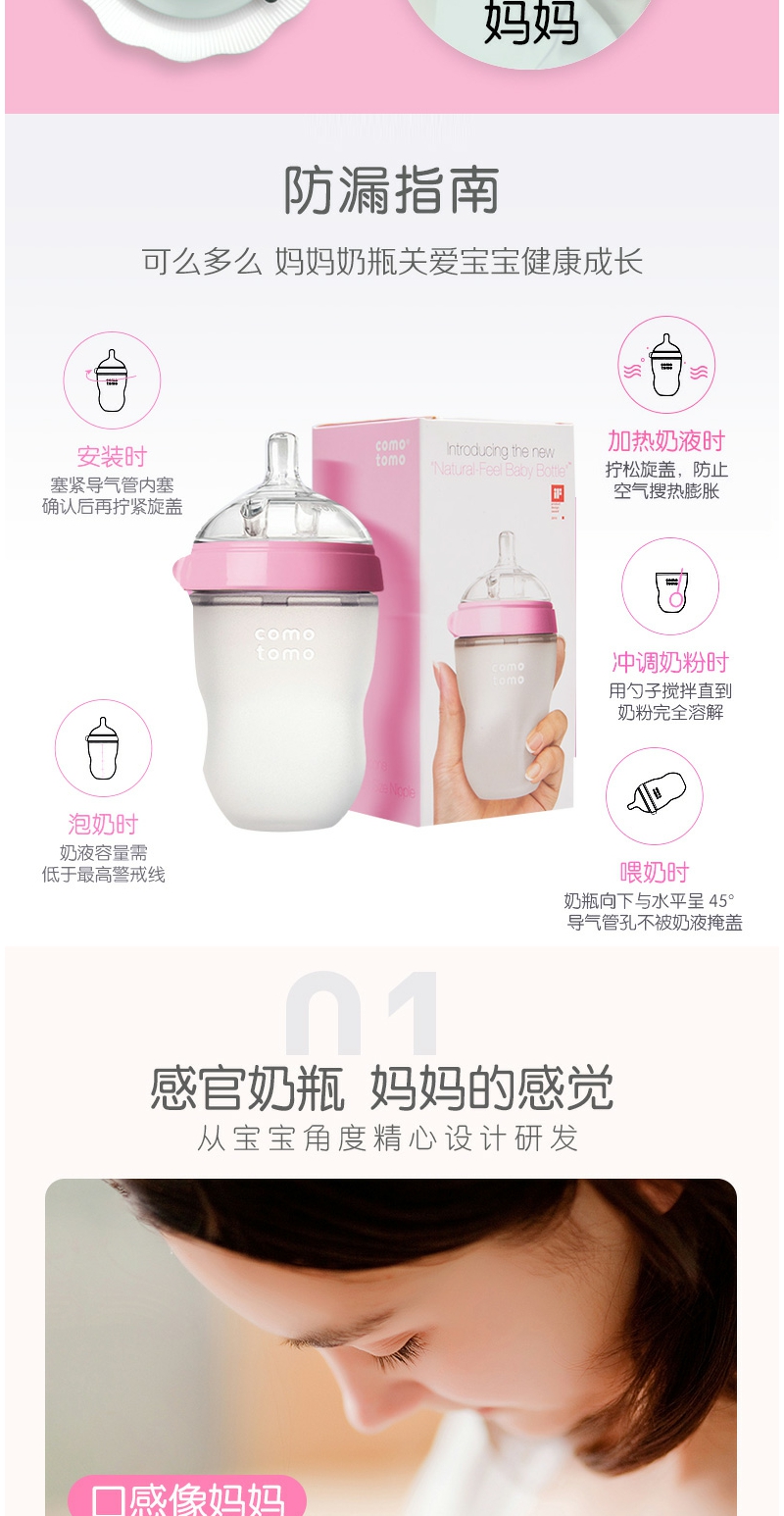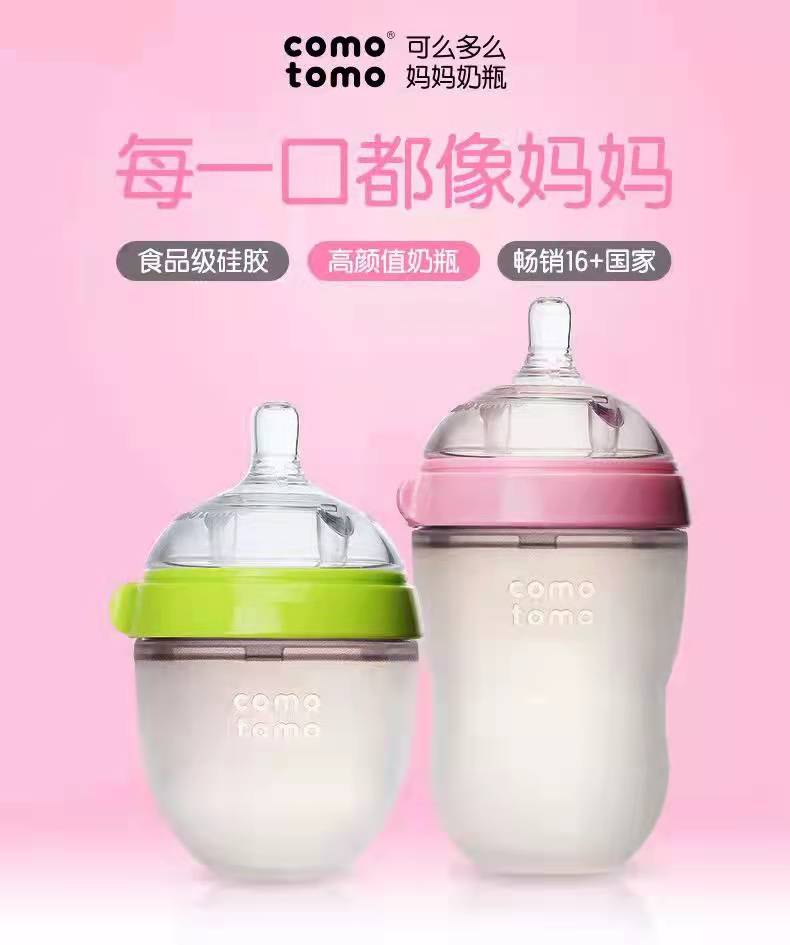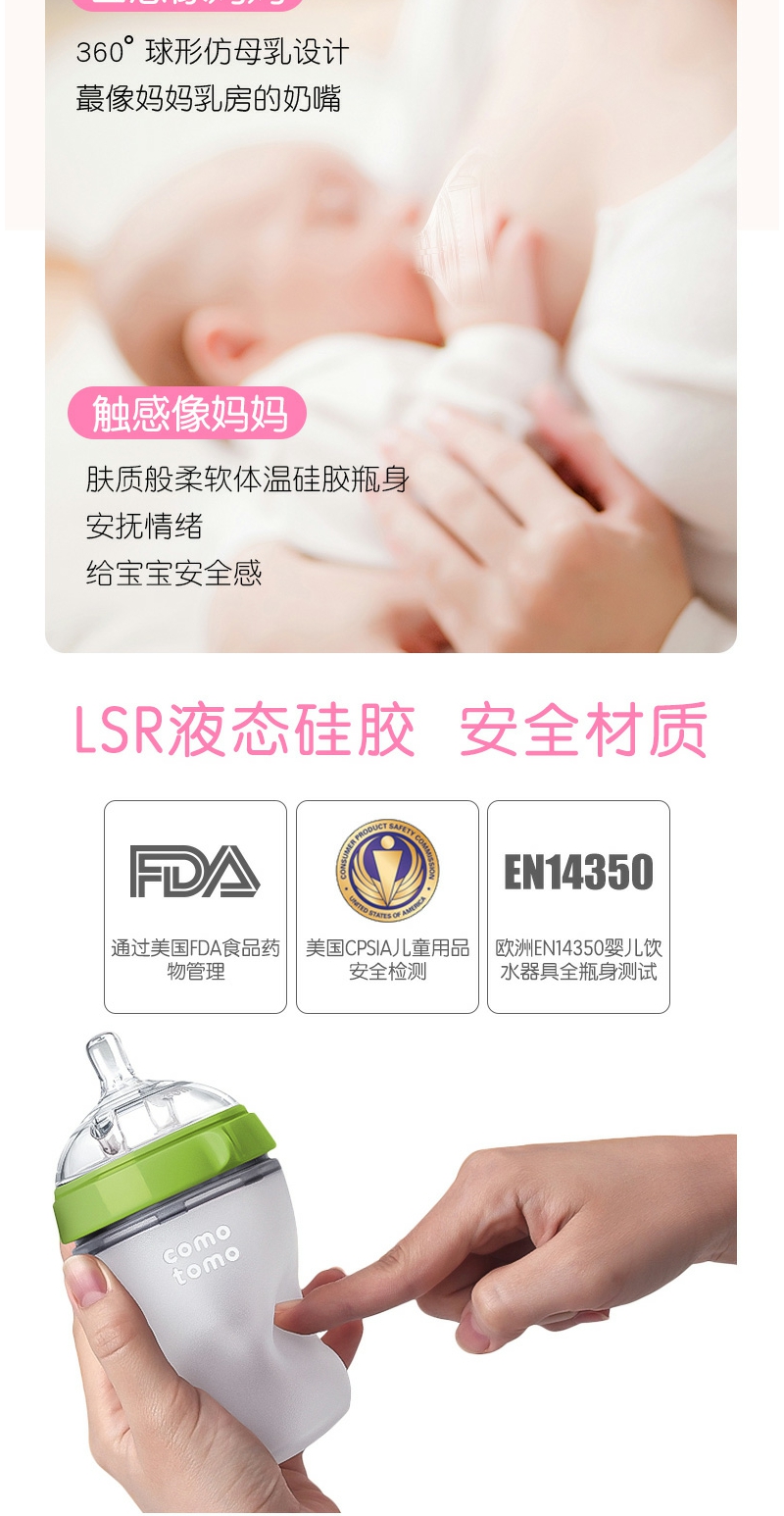 【YZ】comotomo可么多么绿粉色硅胶奶瓶250ml150ml乳感