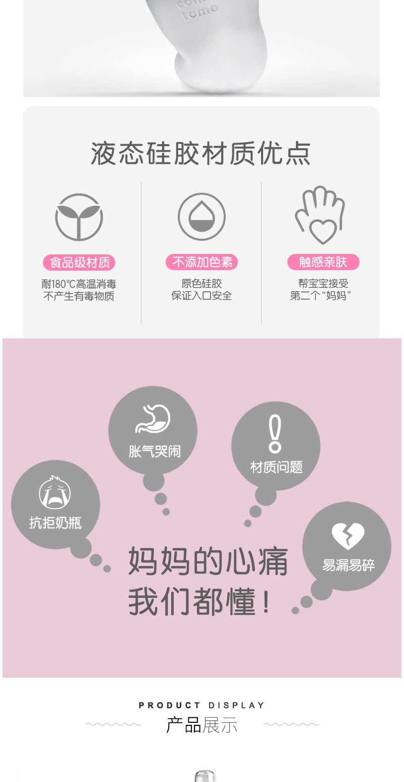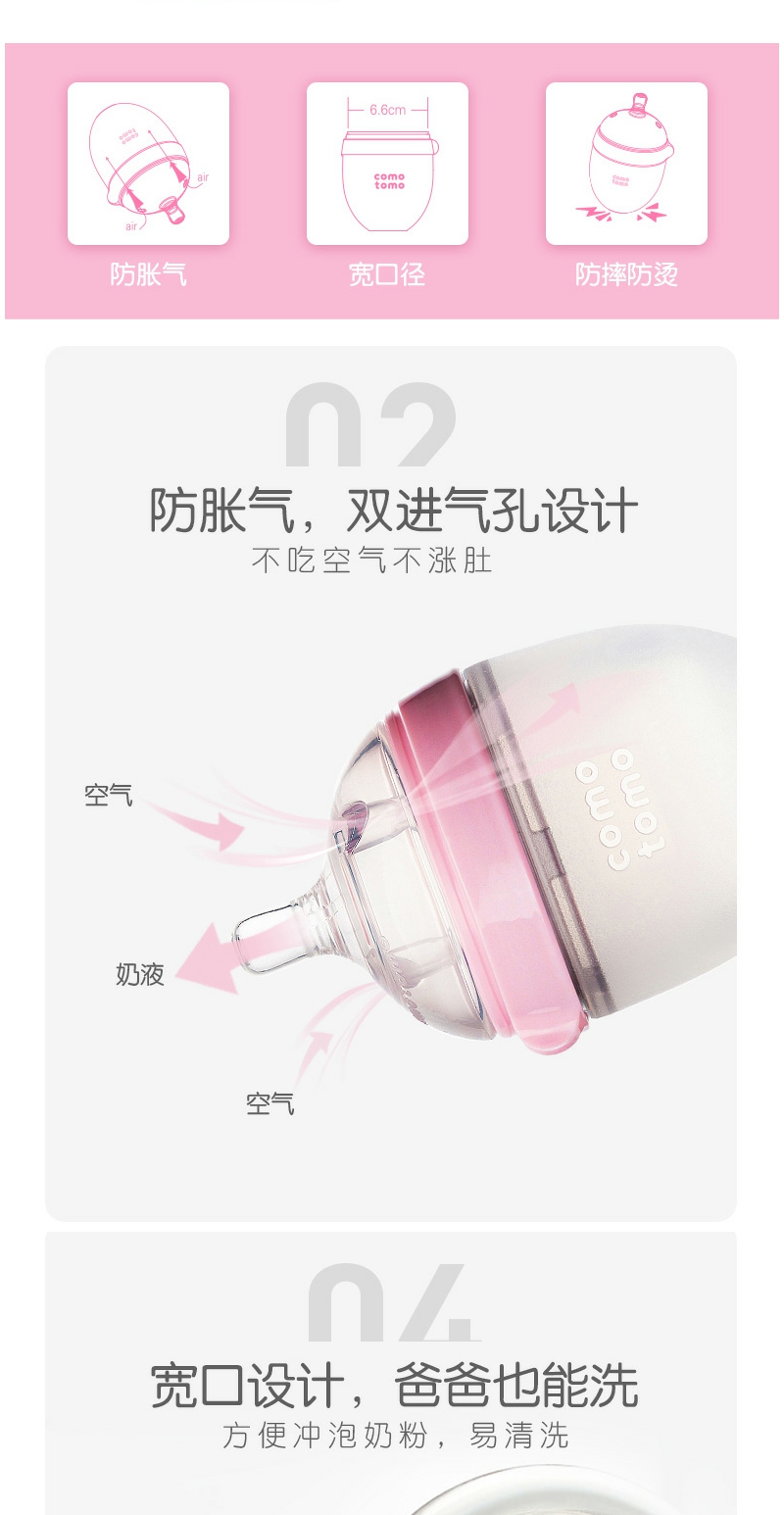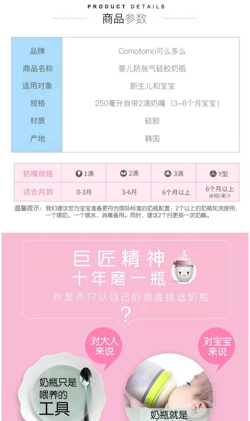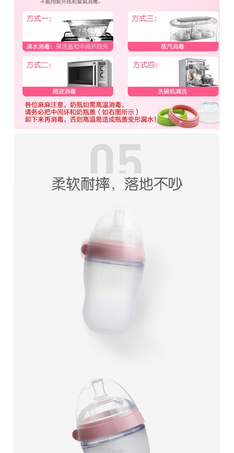【YZ】comotomo可么多么绿粉色硅胶奶瓶250ml150ml乳感