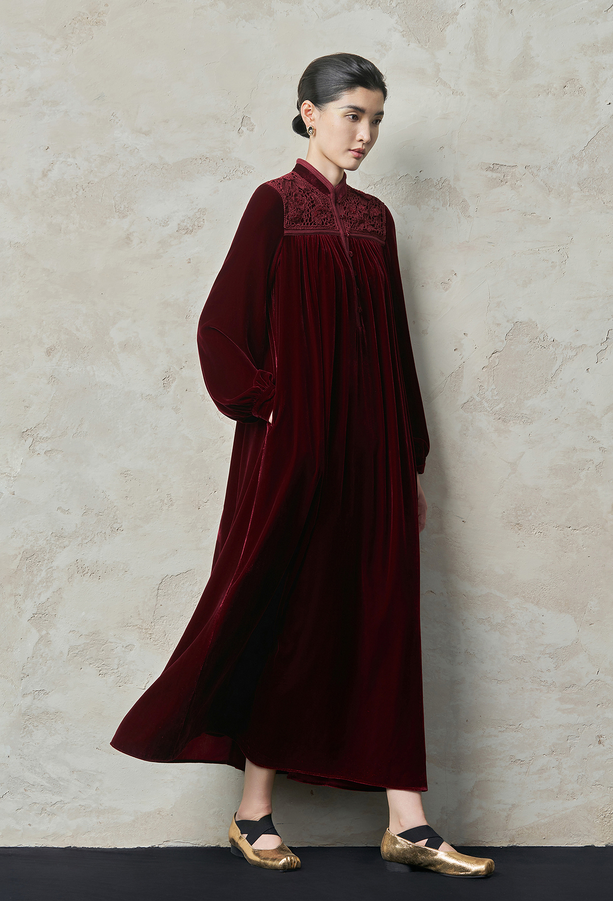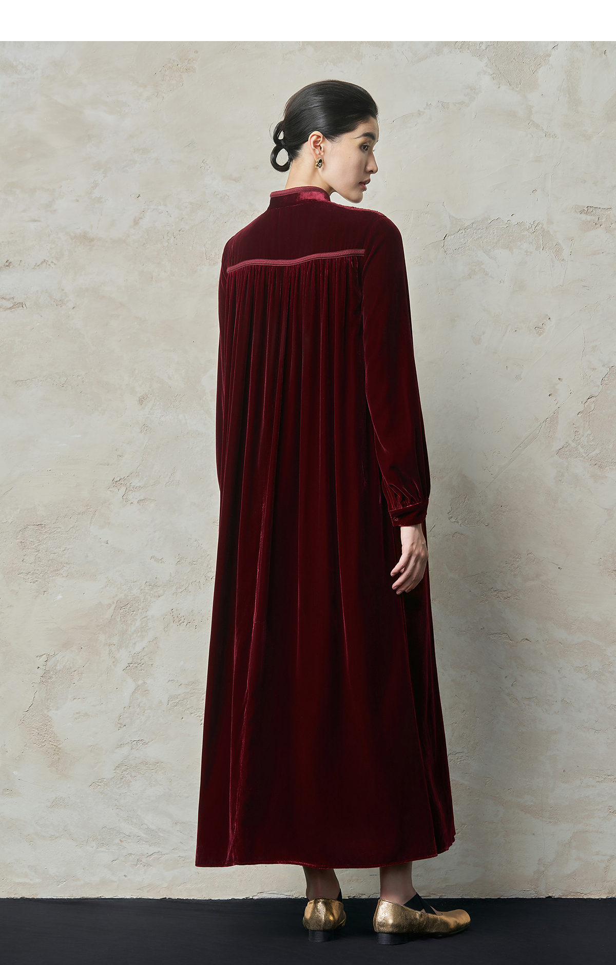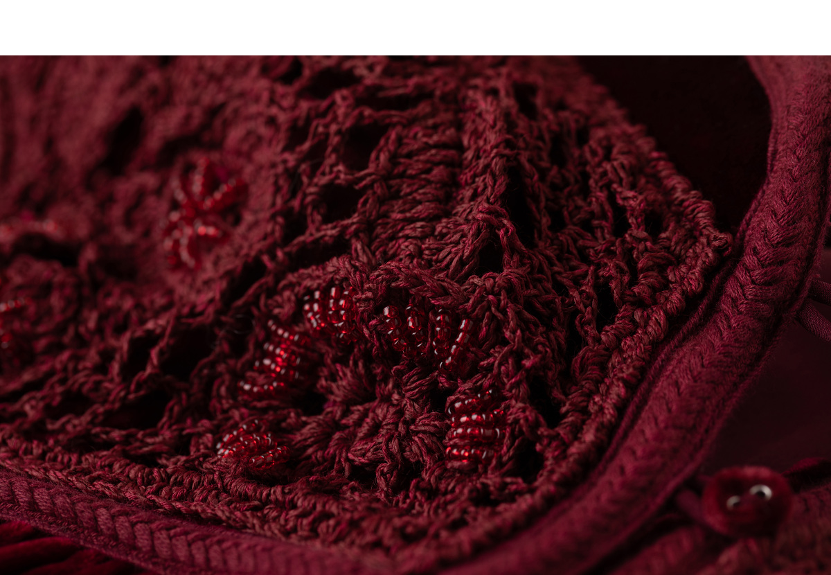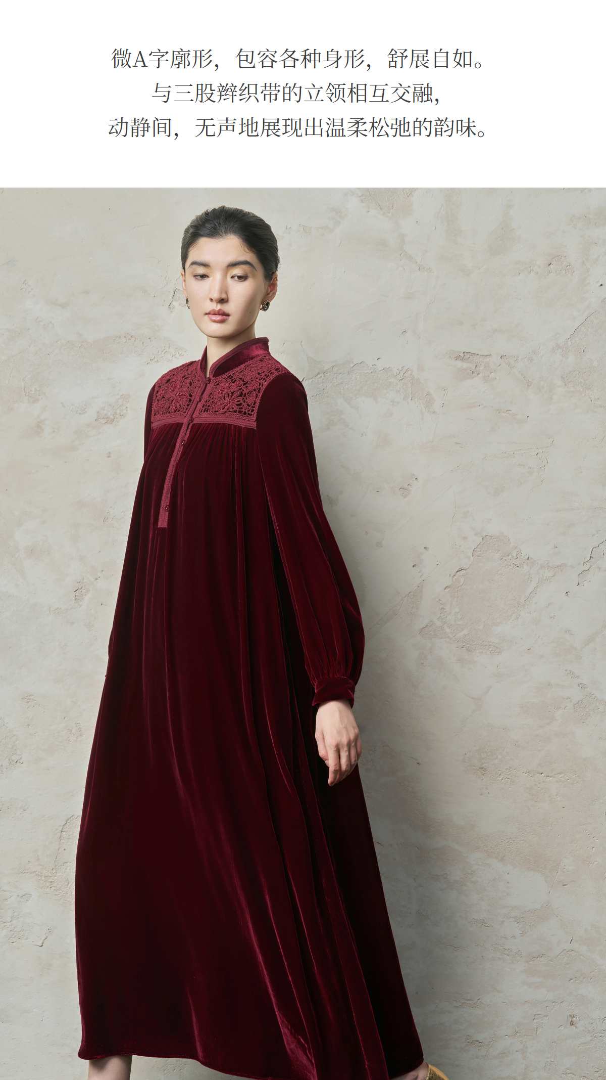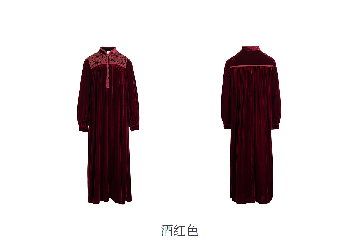 【林栖设计小店】(现货)【手工钩花】酒红连衣裙手工串珠2025秋冬新款宽松长裙女1954024B