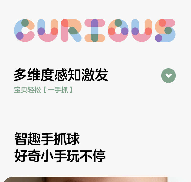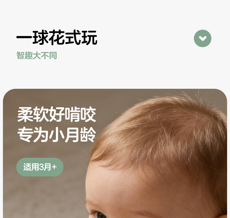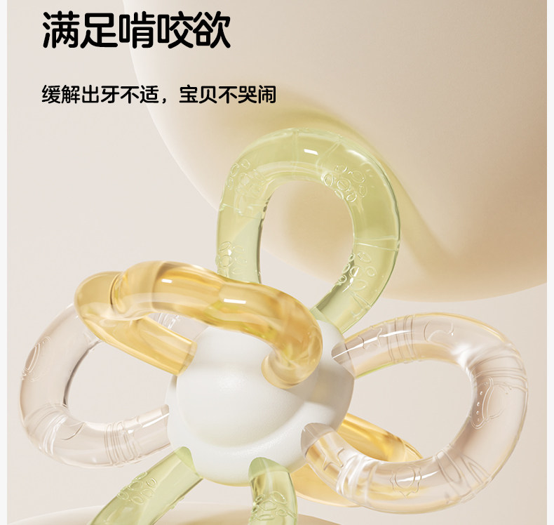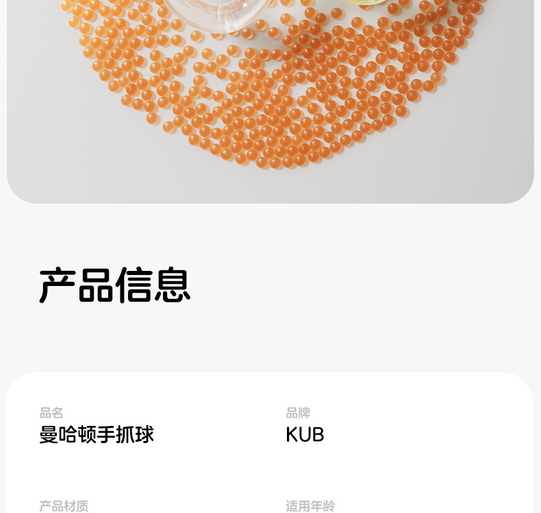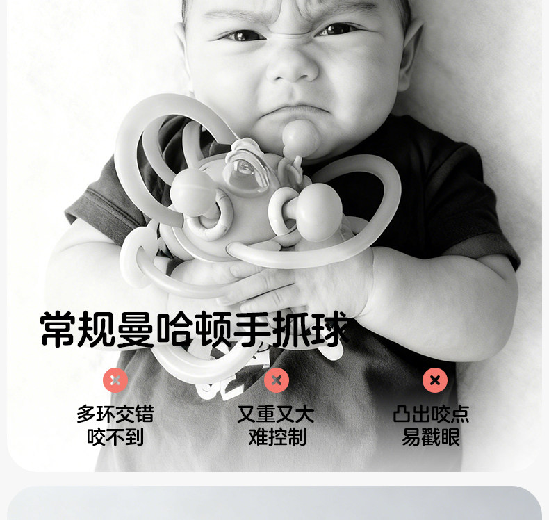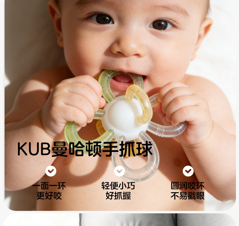 KUB可优比曼哈顿手抓球婴儿玩具硅胶可咬牙胶宝宝3个月摇铃0一1岁