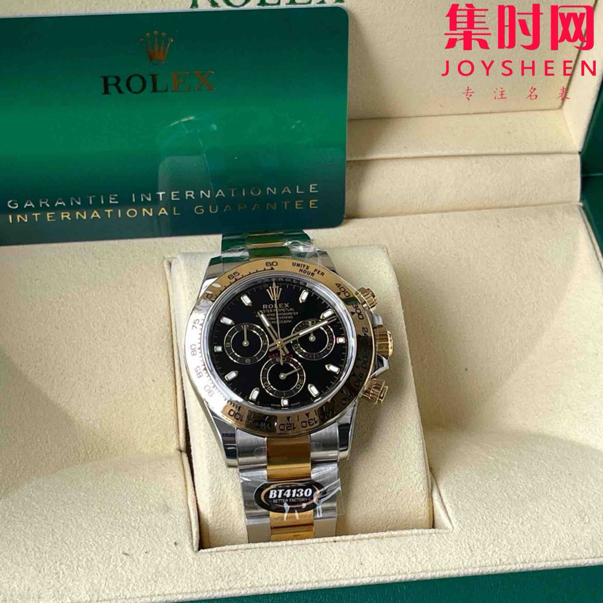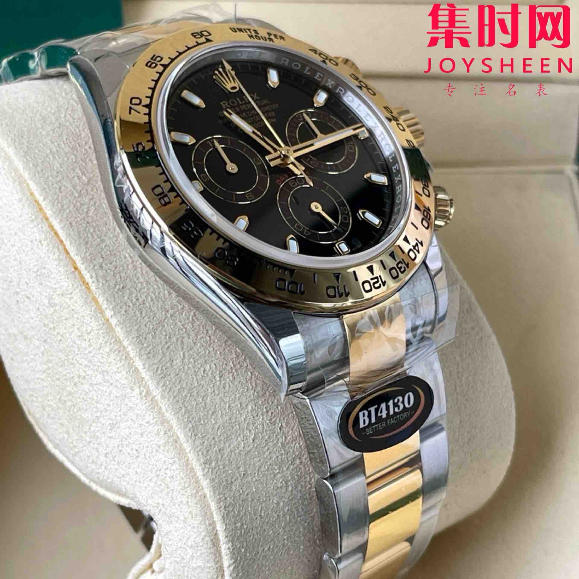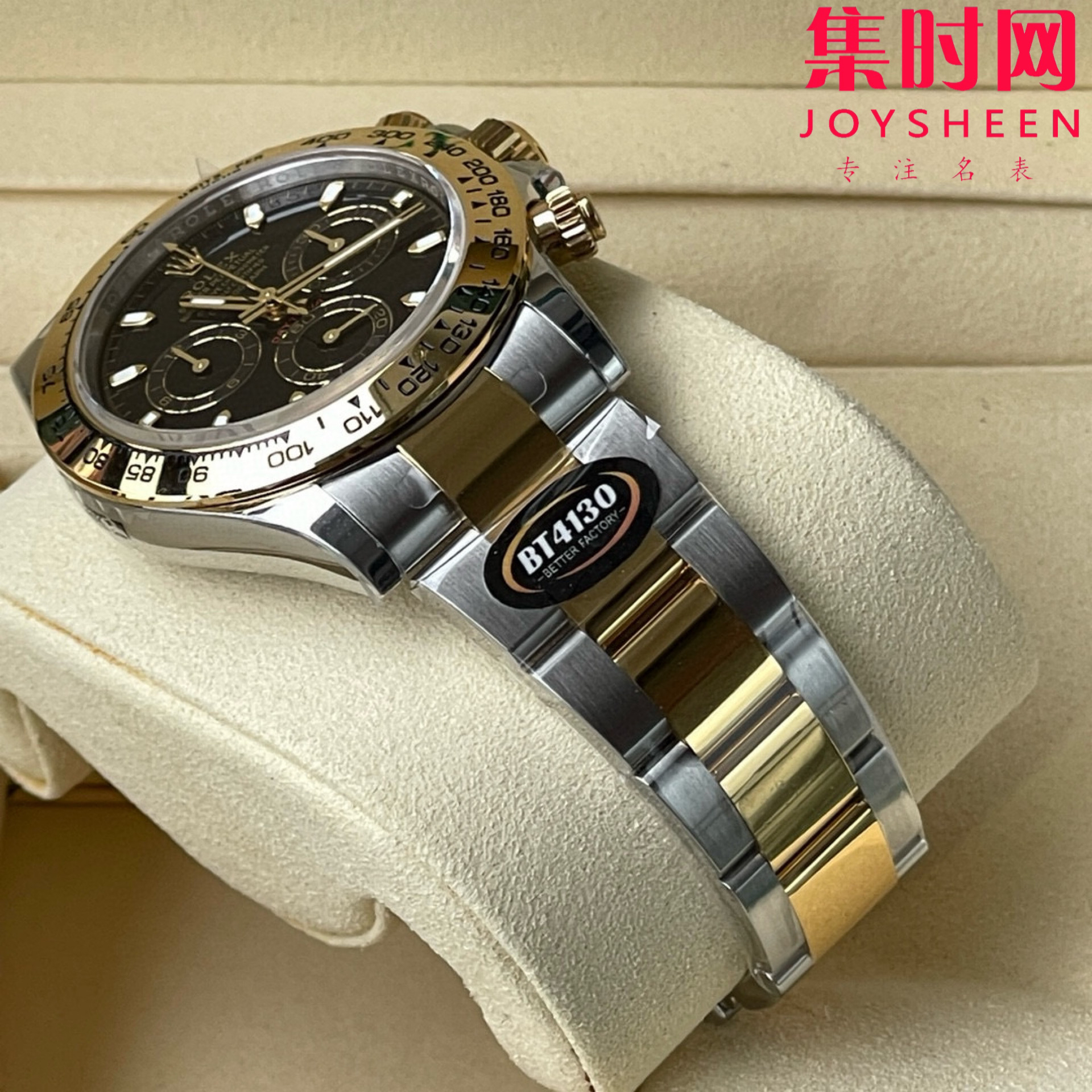 劳力士宇宙计型 BT迪通拿 间金黑盘 男士腕表 丹东4130机 新品上市,BT迪通拿间金款,三段拼接头粒,侧面不漏钢,原版开模,对版间金迪通拿,BT一贯秉承只有更好的工匠精神