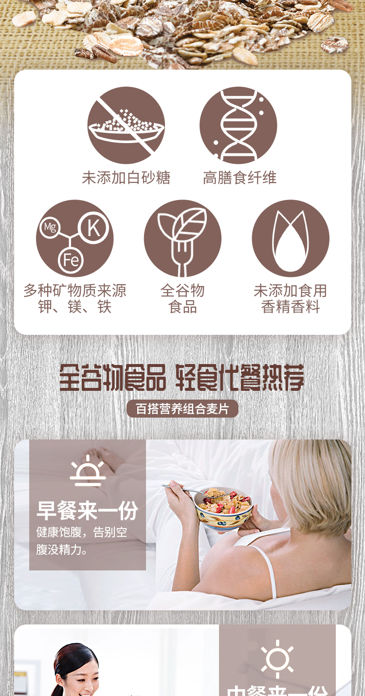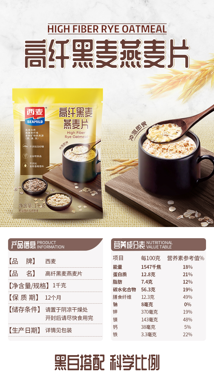 高纤黑麦燕麦片1kg黑麦0蔗糖免煮即食健身代餐