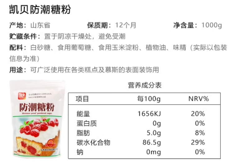 1kg 凯贝 防潮糖粉 糖粉面包蛋糕表面装饰糖霜饼干烘焙用原料