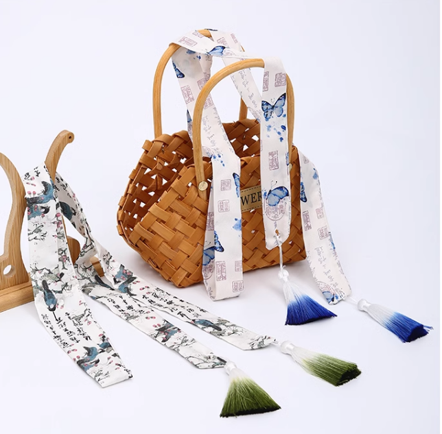 七夕新中式印花丝带鲜花花束绑带手工艺礼物装饰飘带书法