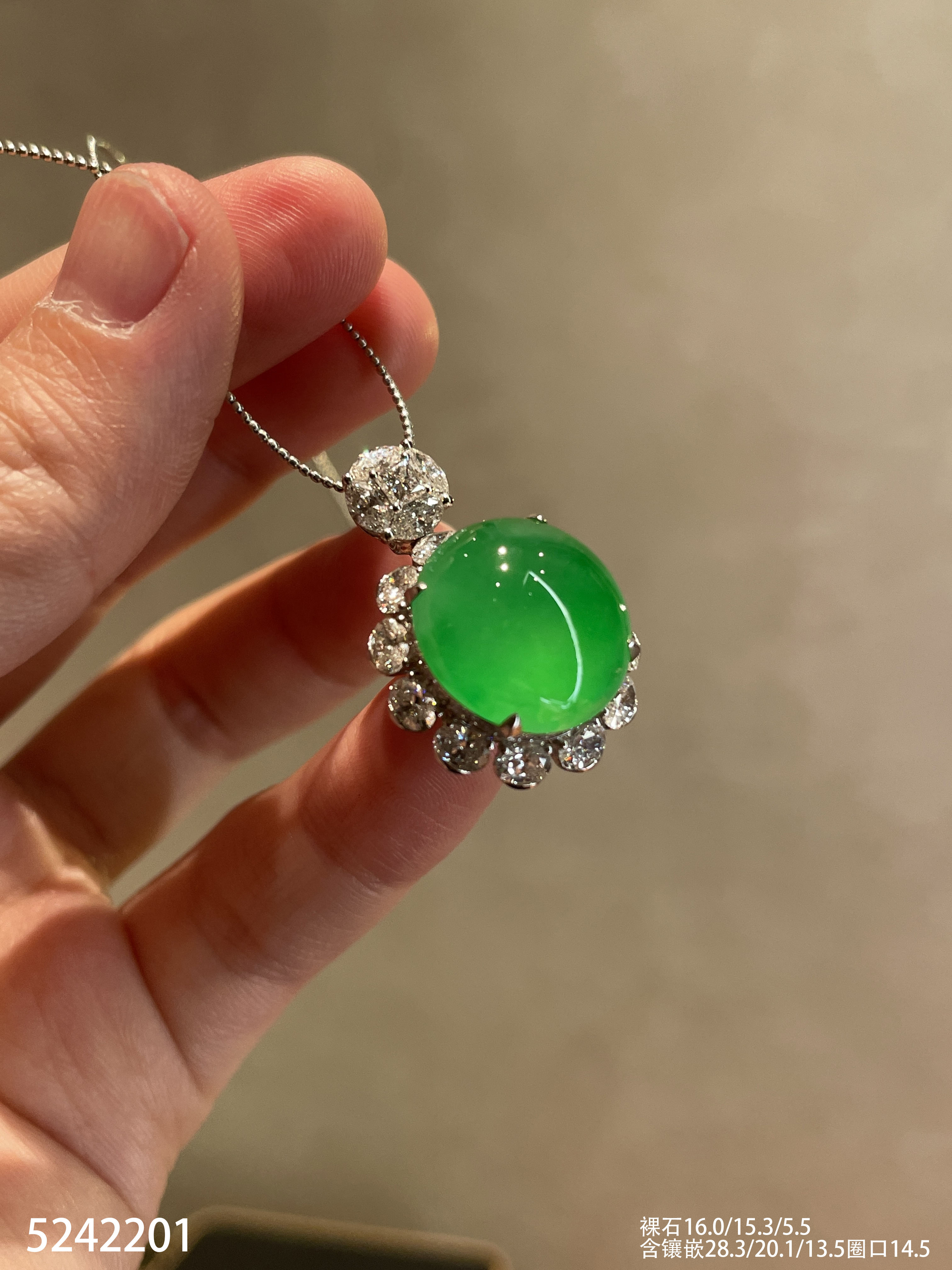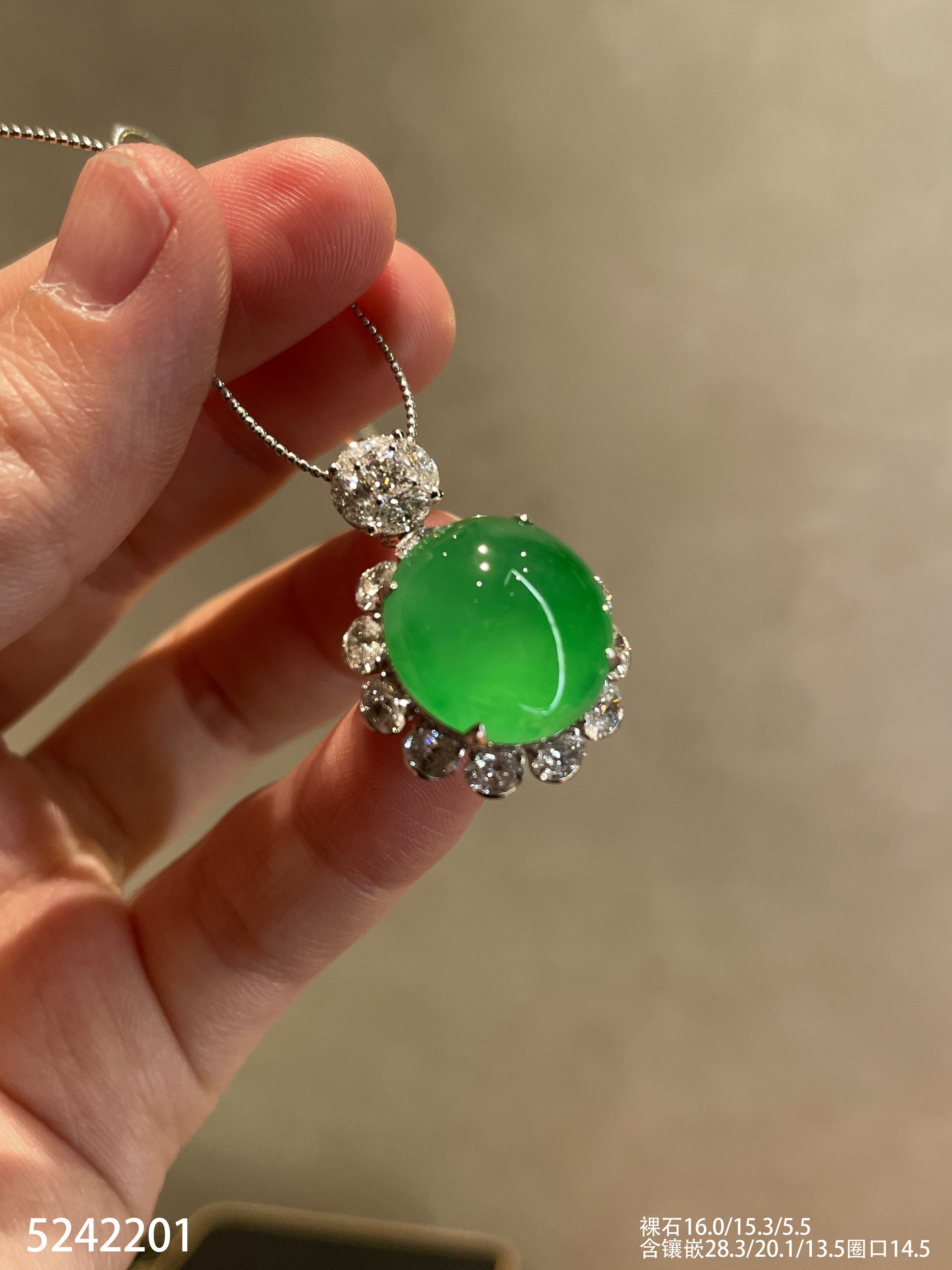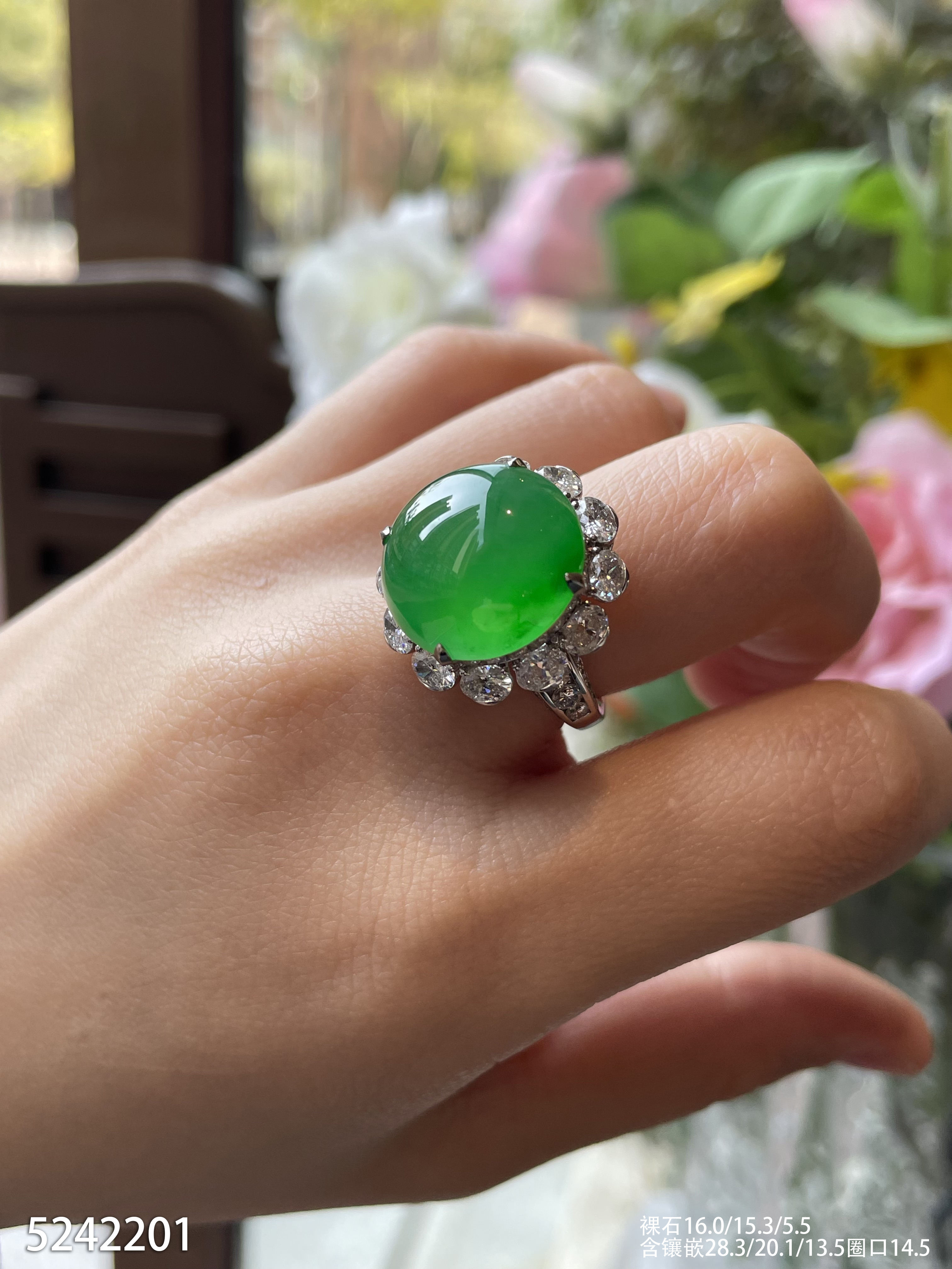玻璃种艳绿蛋面吊坠戒指两用款【5242201】具体价格微信咨询