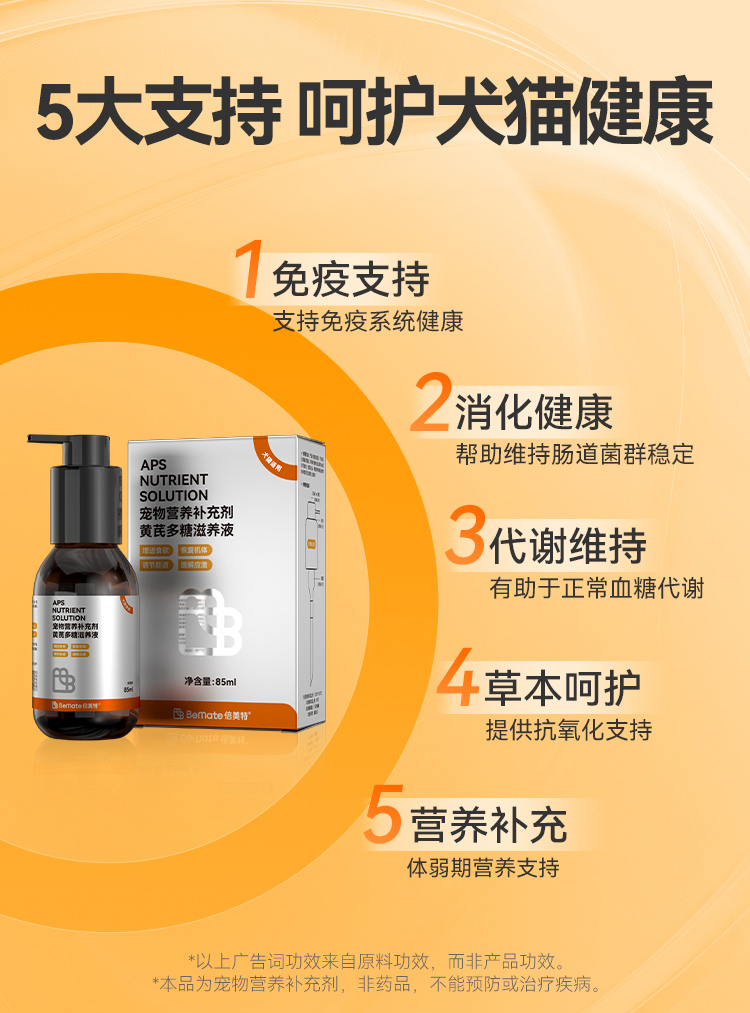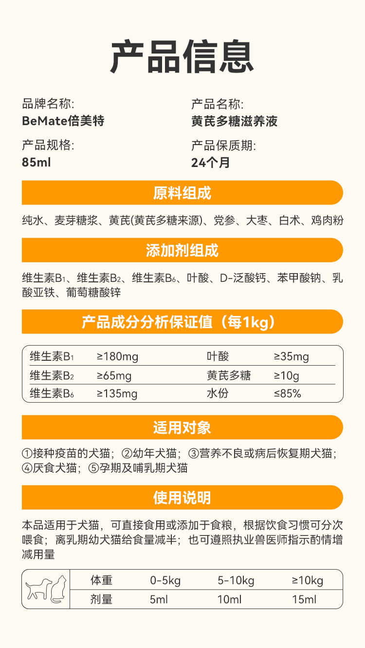 BeMate倍美特 黄芪多糖滋养液 85ml/瓶 改善食欲 改善抗病毒能力 原料组成:纯水、麦芽糖浆、黄芪(黄芪多糖来源)、党参、大枣、白术、鸡肉粉