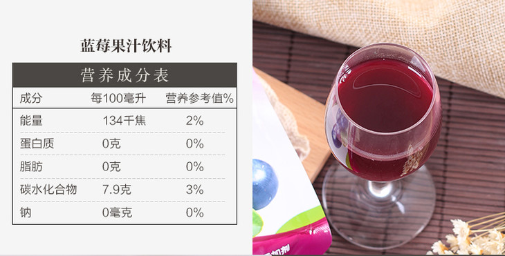 野生蓝莓果汁30% 230ml*3袋 蓝百蓓 东北野生蓝莓果汁饮料 230ml/袋 果汁含量30%
