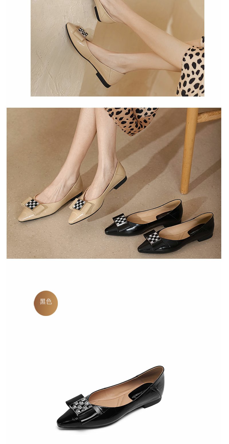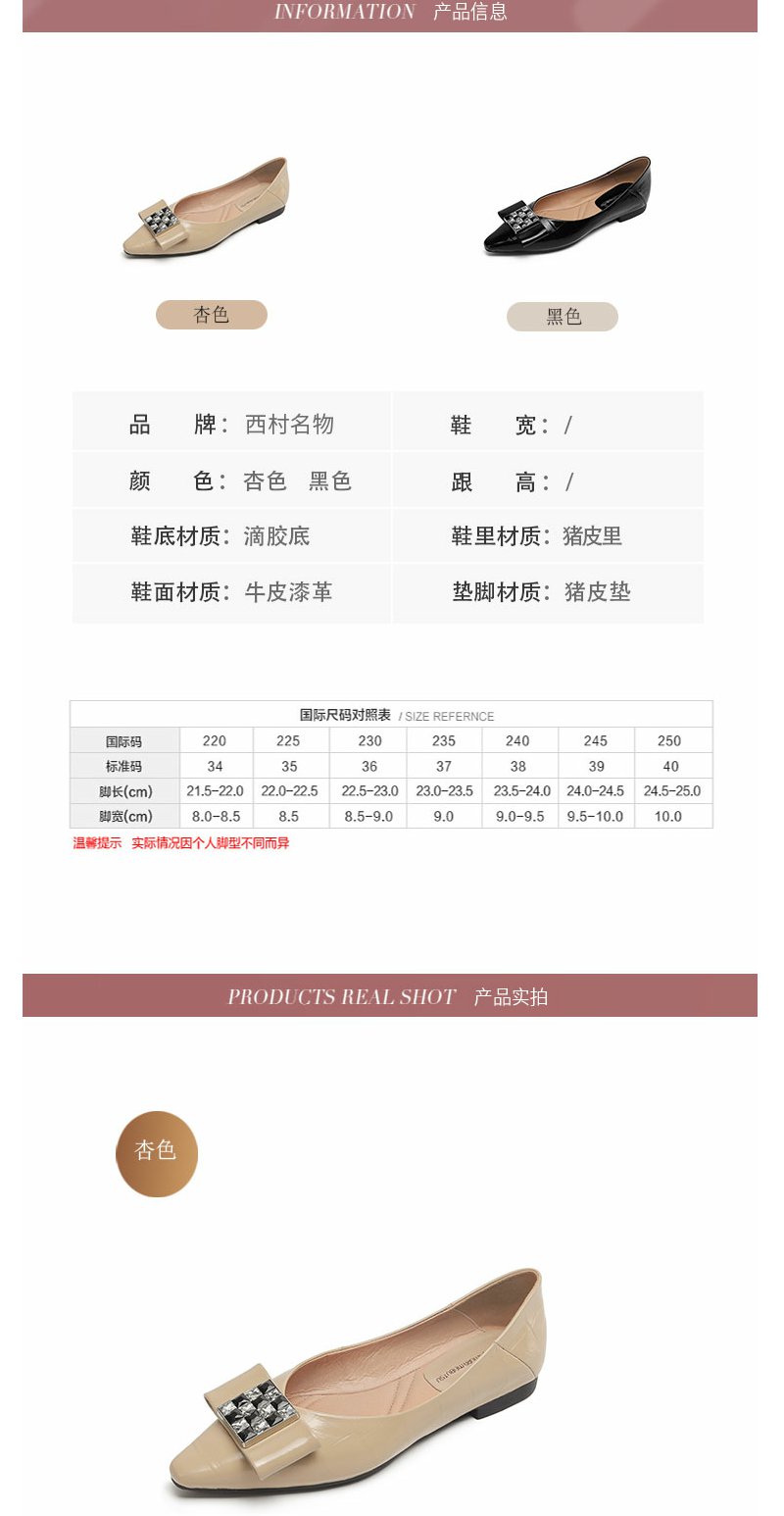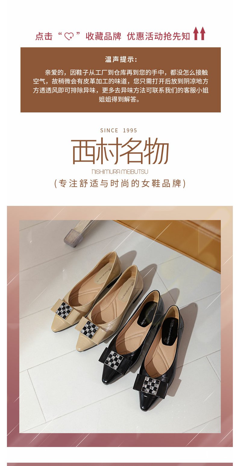 西村名物2022年春季新品尖头蝴蝶结饰扣浅口女单鞋平底时装鞋T22AE19491