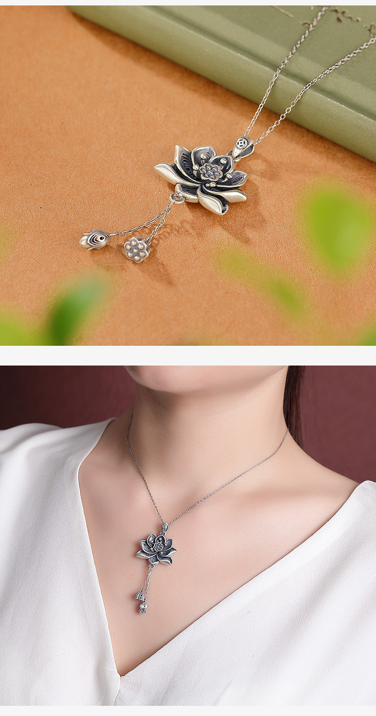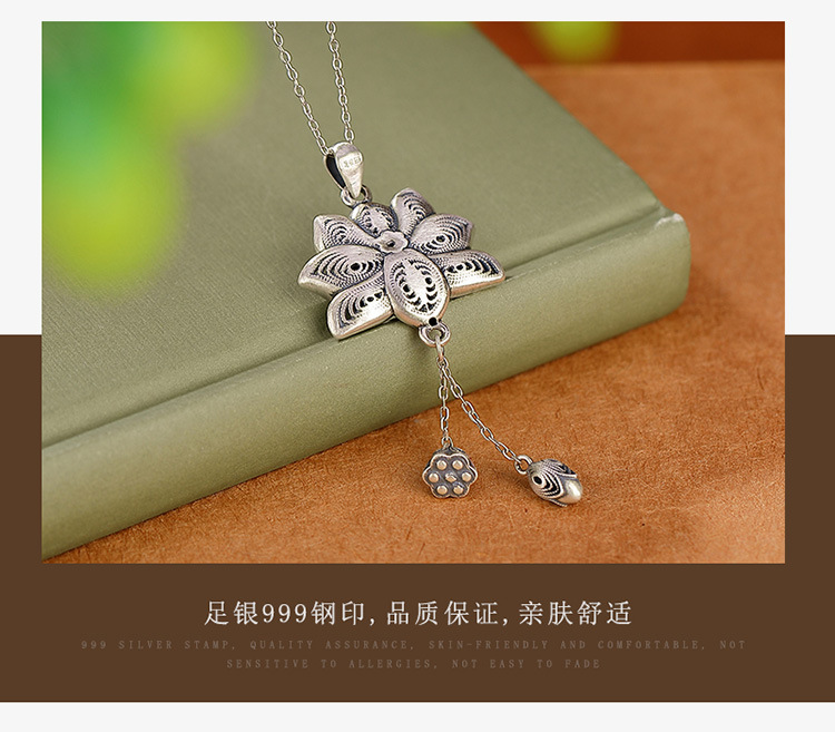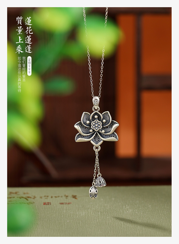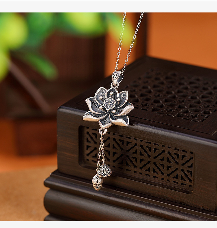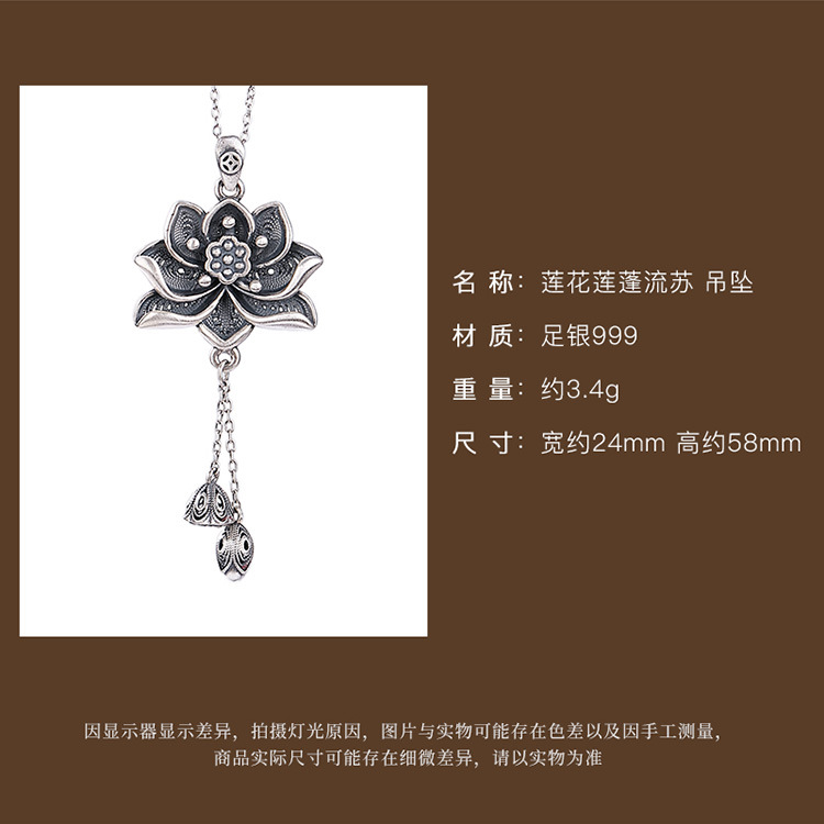 【墨莲】S999银足银复古莲花流苏莲蓬吊坠【CW-DZ06117】