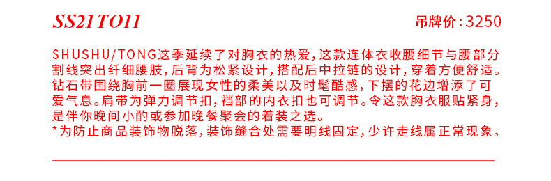 【SHUSHUTONG】蕾虎时尚镶嵌钻石拉链抹胸衣吊带经典款女