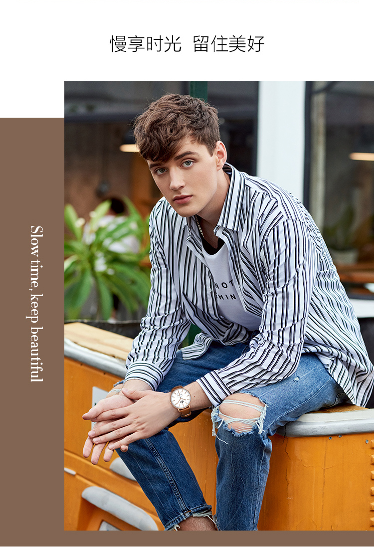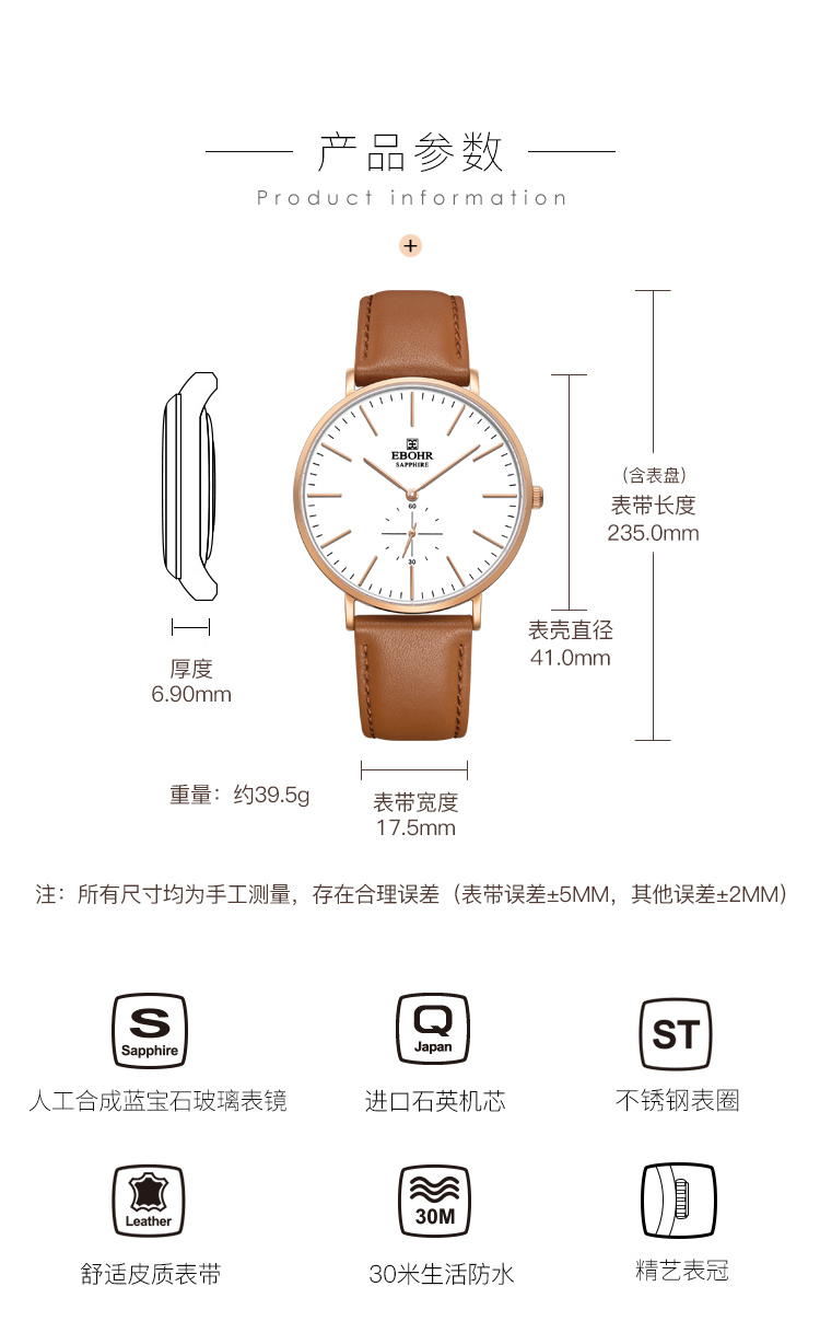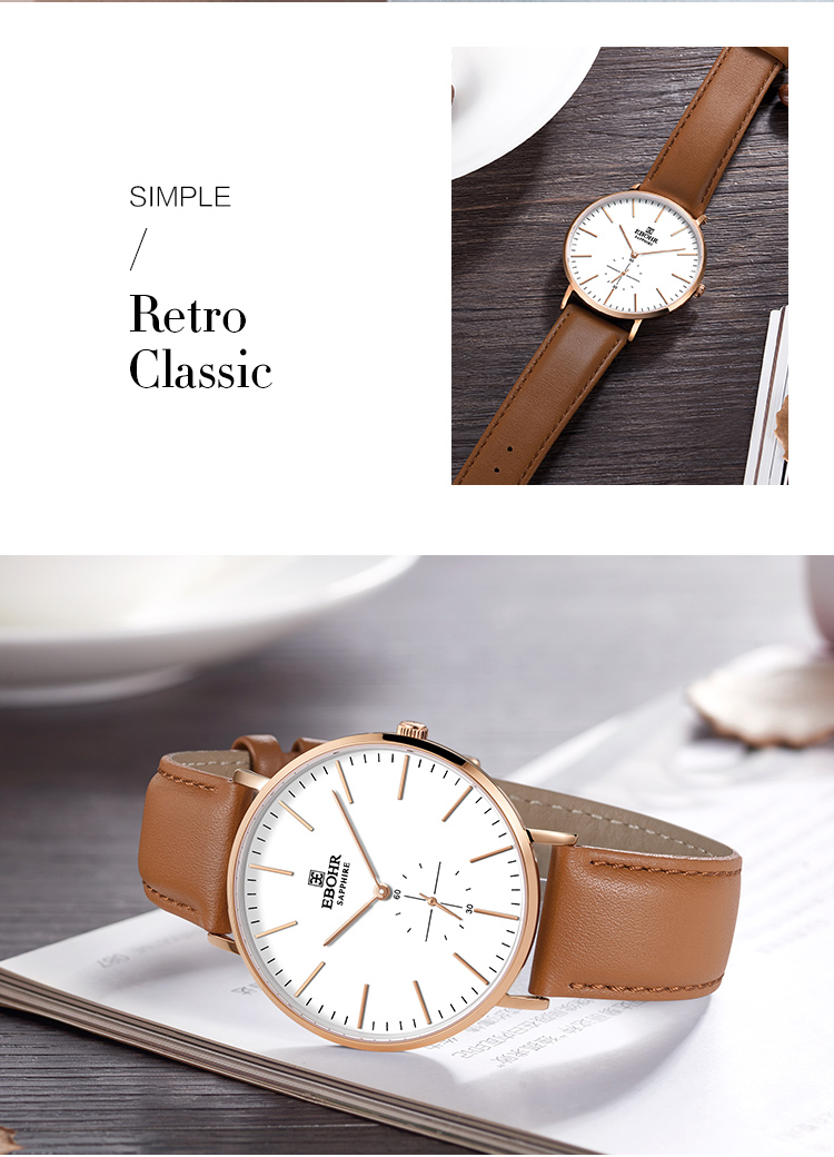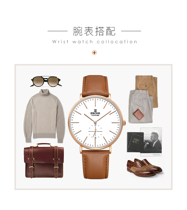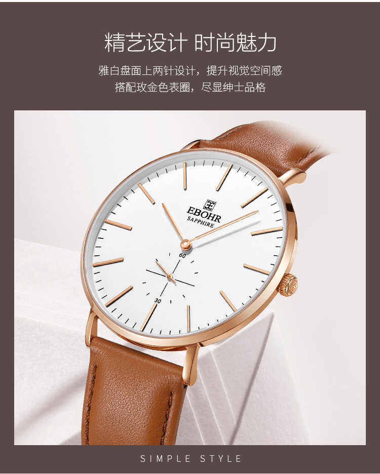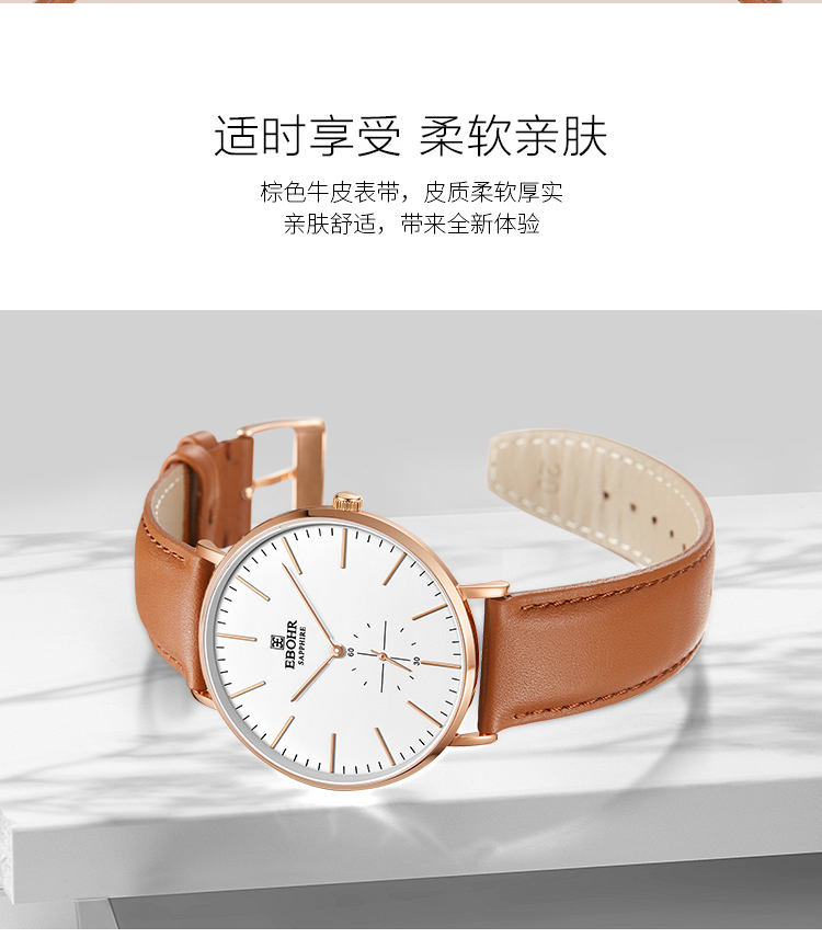 依波表EBOHR 大师系列暖棕休闲格调男士腕表进口石英机芯5077