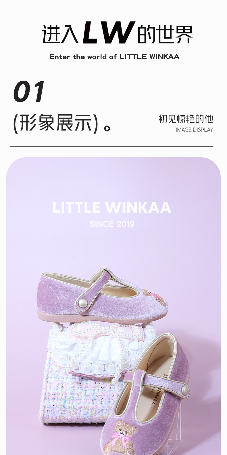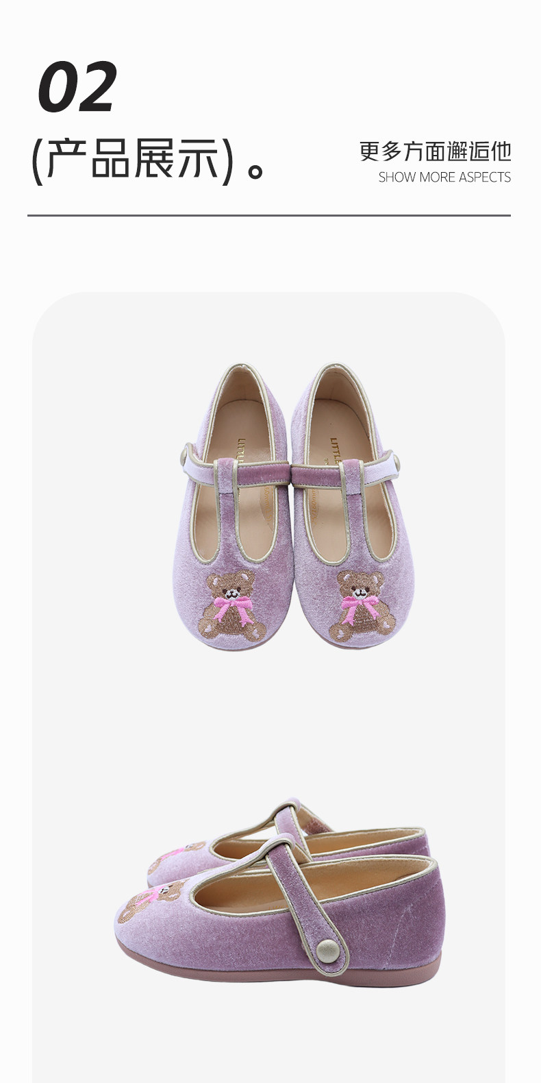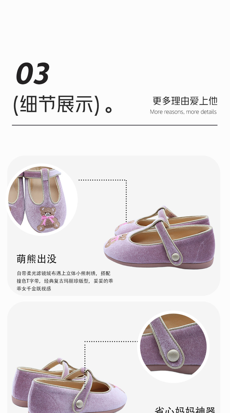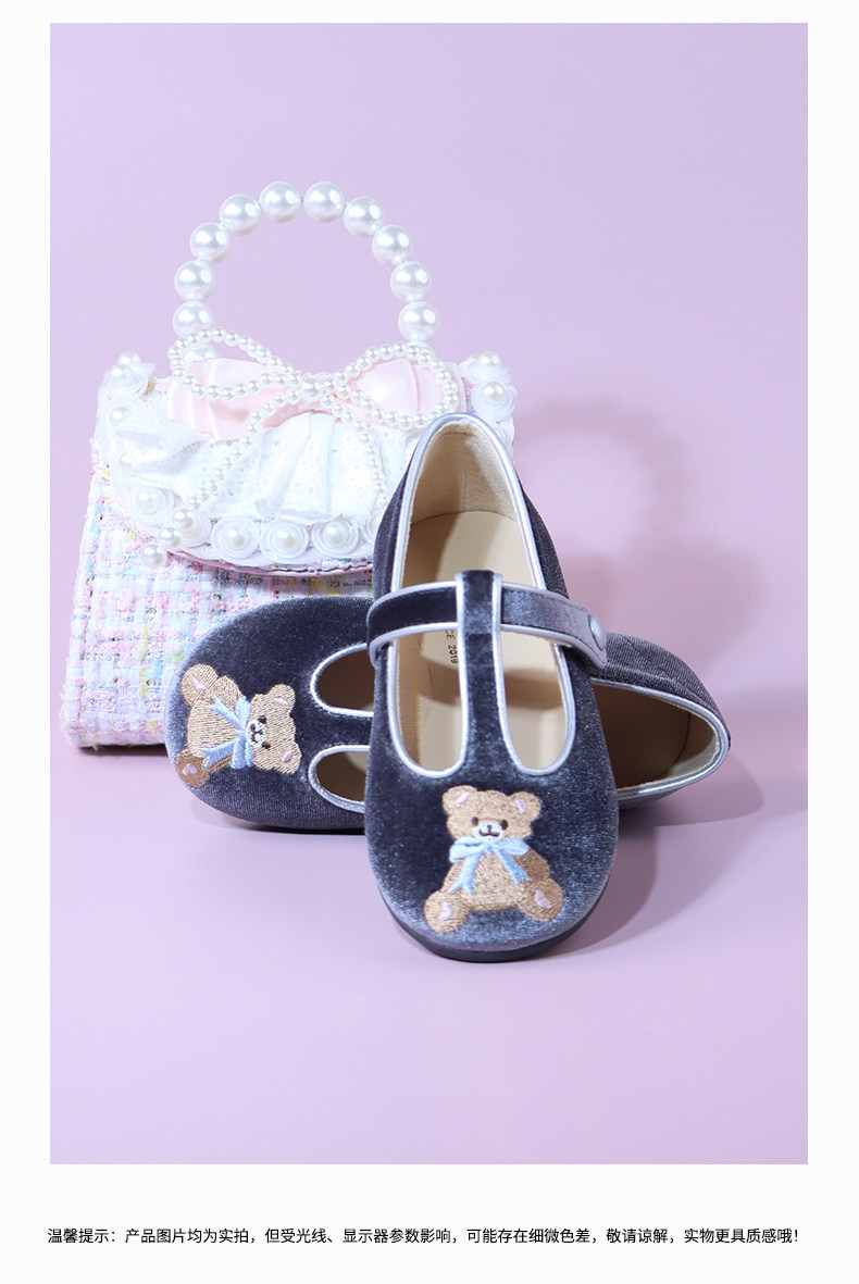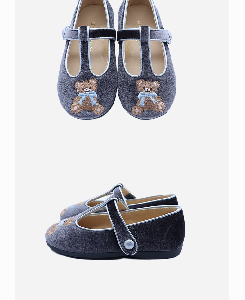 【云优选】little winkaa2026新款童鞋女春季刺绣小熊软底公主芭蕾舞蹈鞋子
