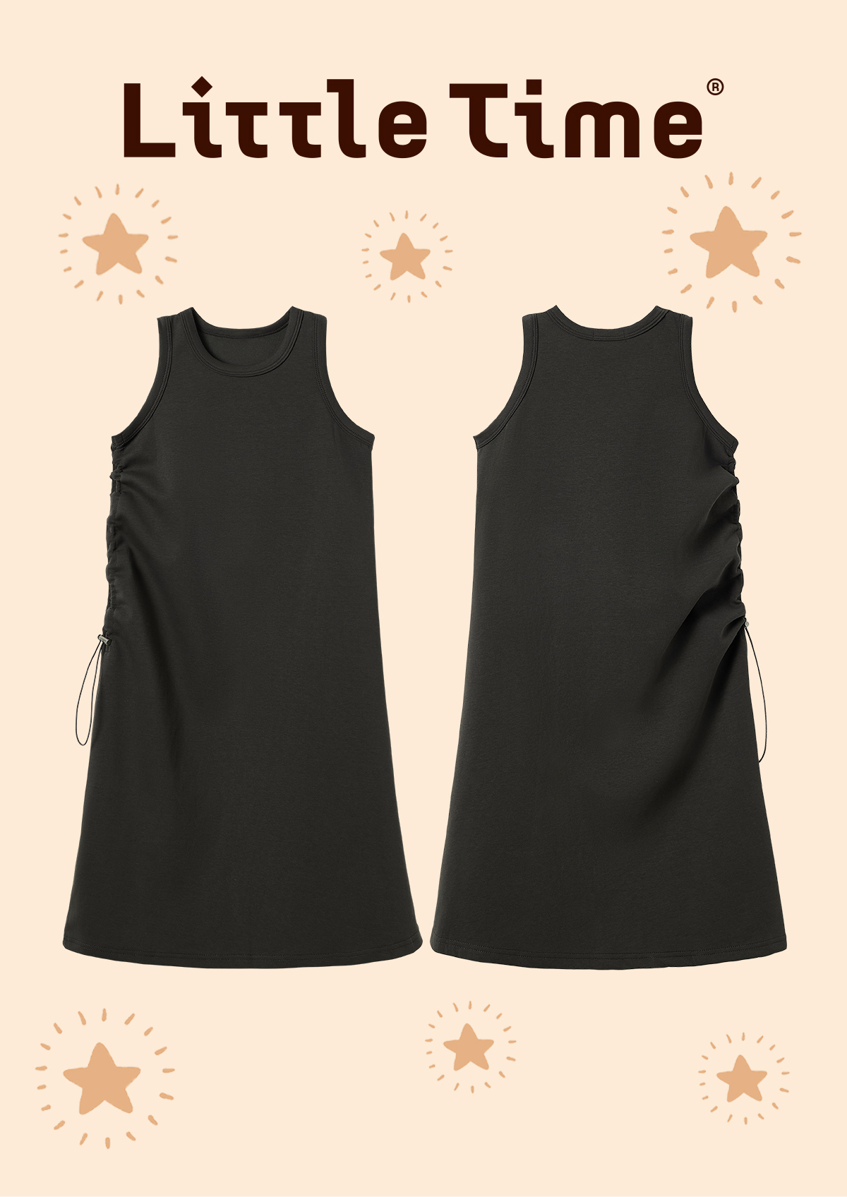 Little time女童背心连衣裙2025春夏新款儿童气质抽绳垂感针织裙