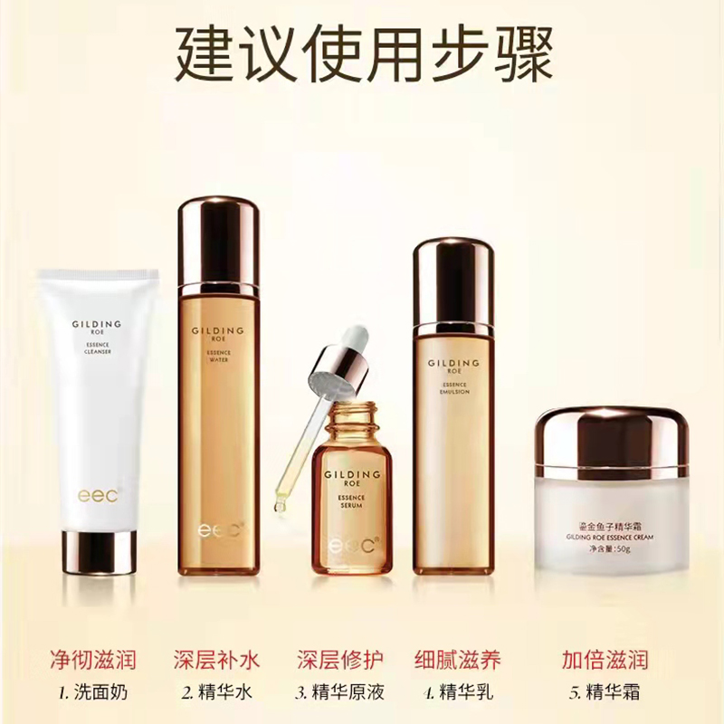 eec鱼子酱补水保湿五件套新品鎏金套盒四季水润修复滋润紧致耀白化妆品女学生护肤品孕妇可用鎏金5件套盒【BDQ】