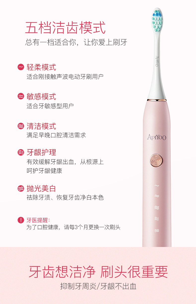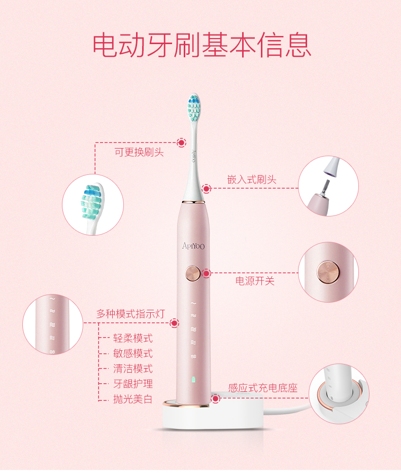 荷兰apiyoo艾优声波成人电动牙刷P7JQR