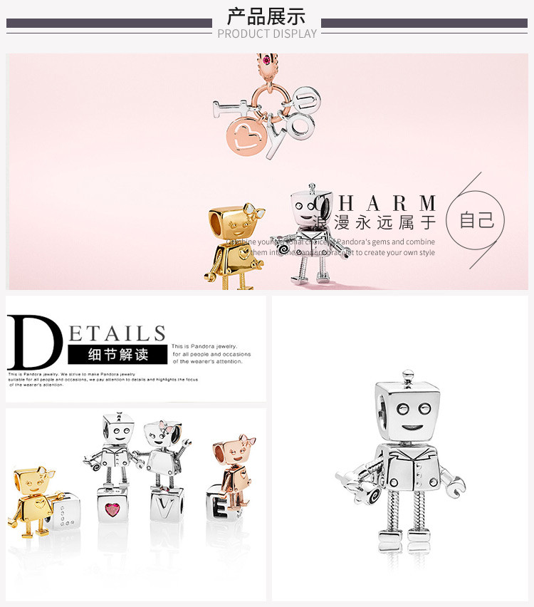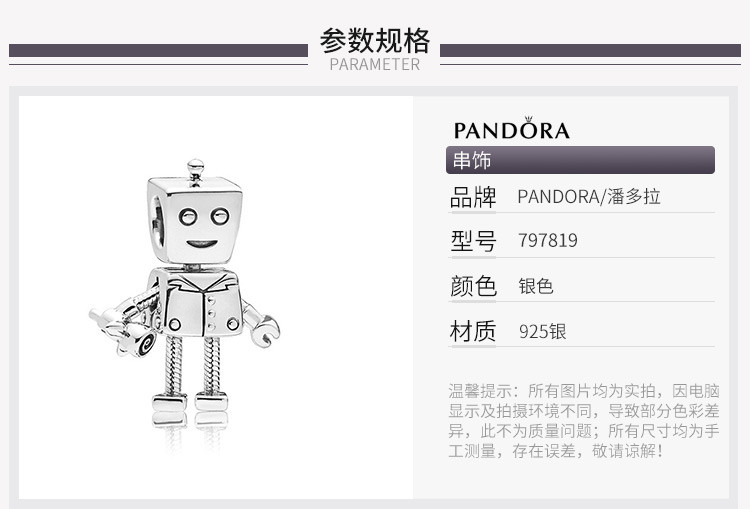 PANDORA/潘多拉 女士925银创意萌趣可爱DIY小罗伯银饰串饰串珠797819