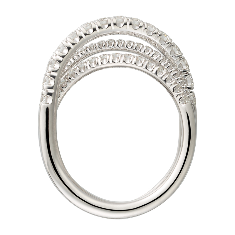 Etincelle de Cartier戒指,18K金白金(750/1000),镶嵌52颗明亮式切割钻石,总计0.81克拉。宽度6.93毫米。