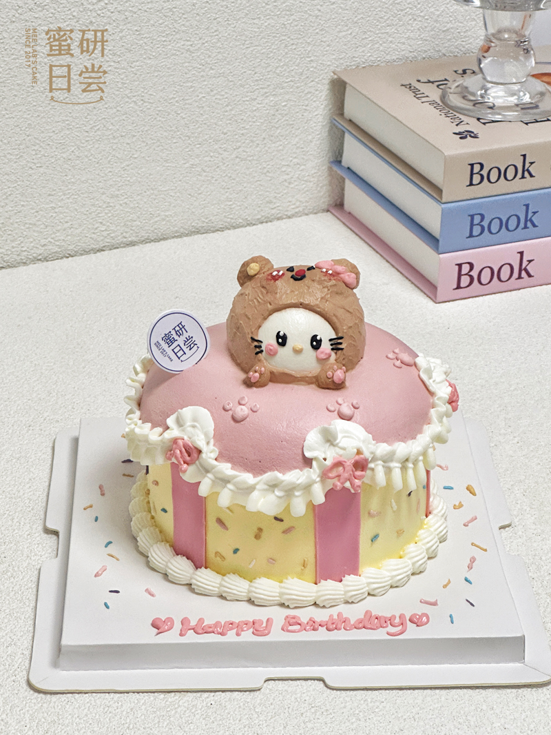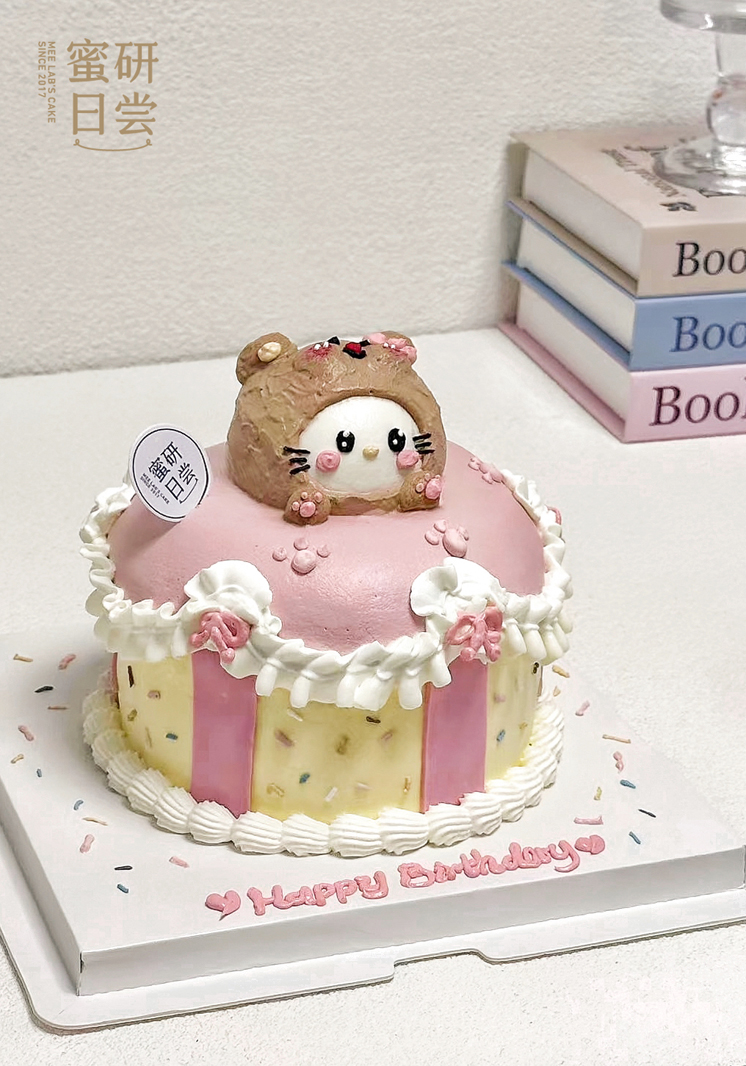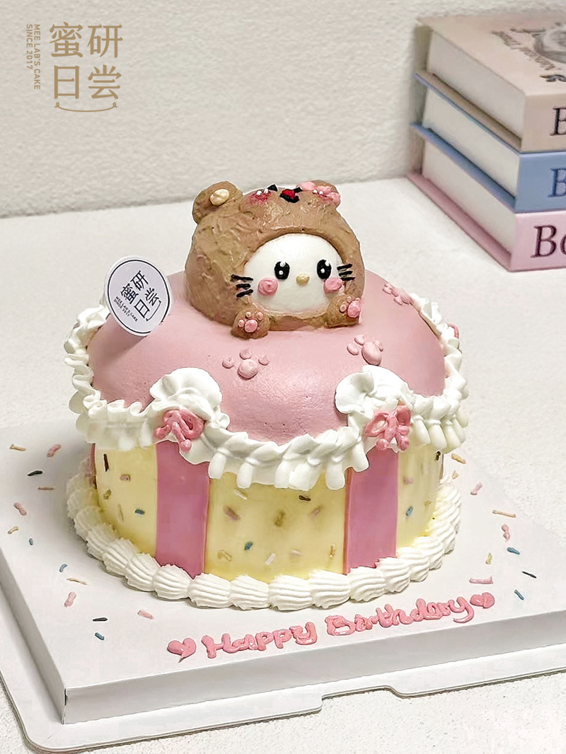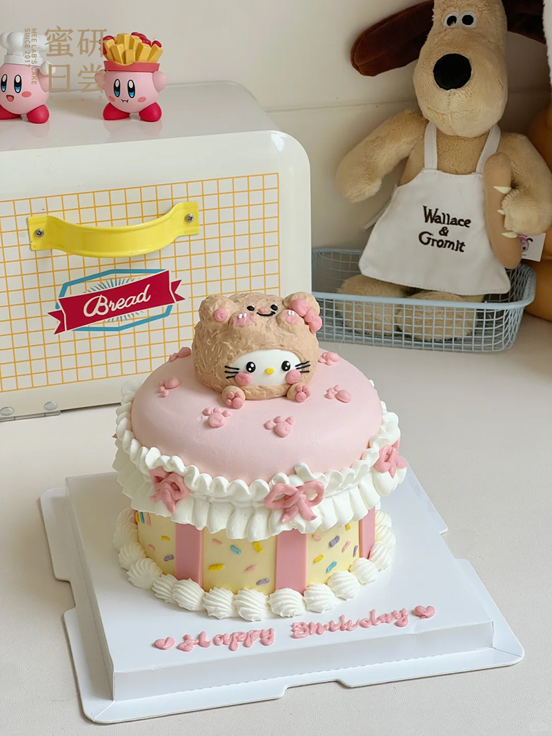 P006“黄油小熊Kitty猫”手绘蛋糕