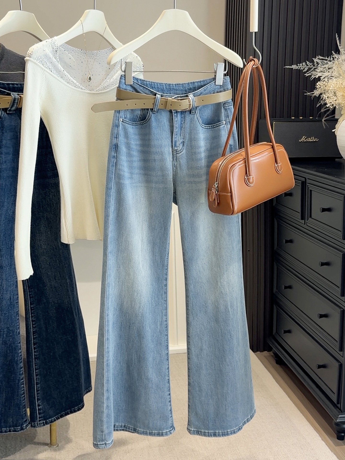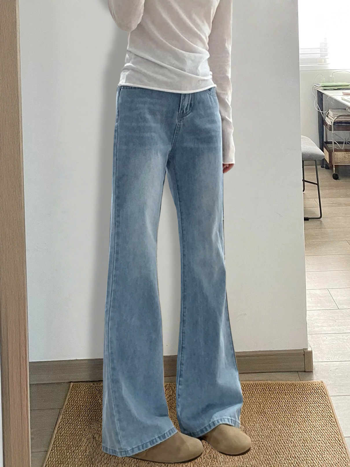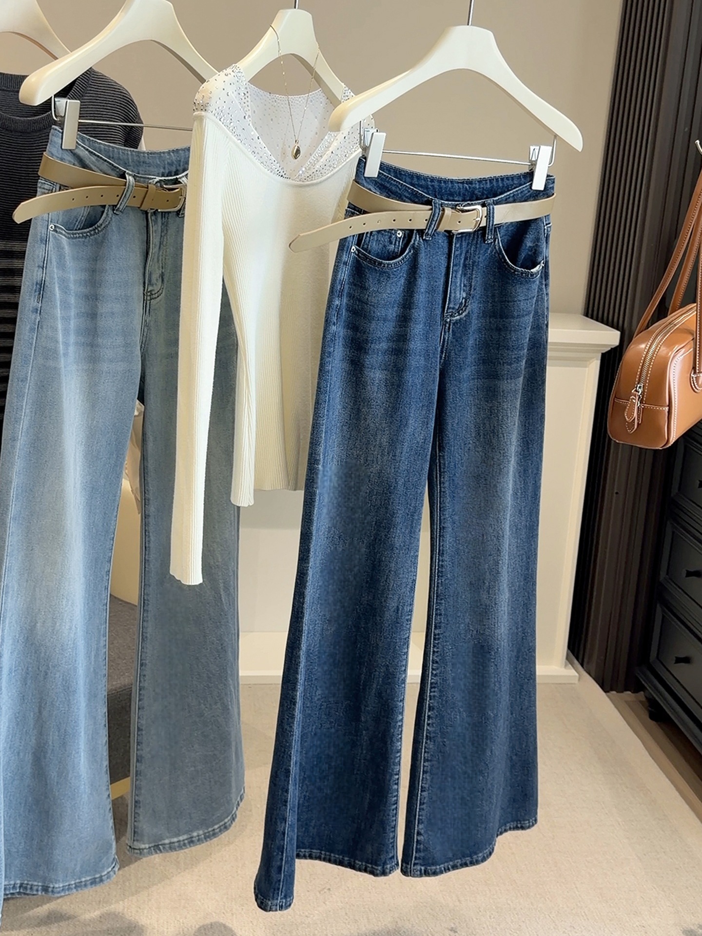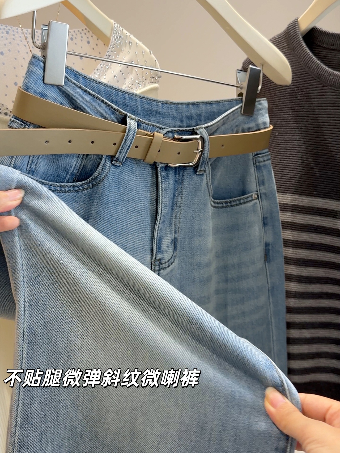 【复古高腰不贴腿微喇牛仔裤】春夏26新款 水洗柔软显瘦直筒喇叭裤