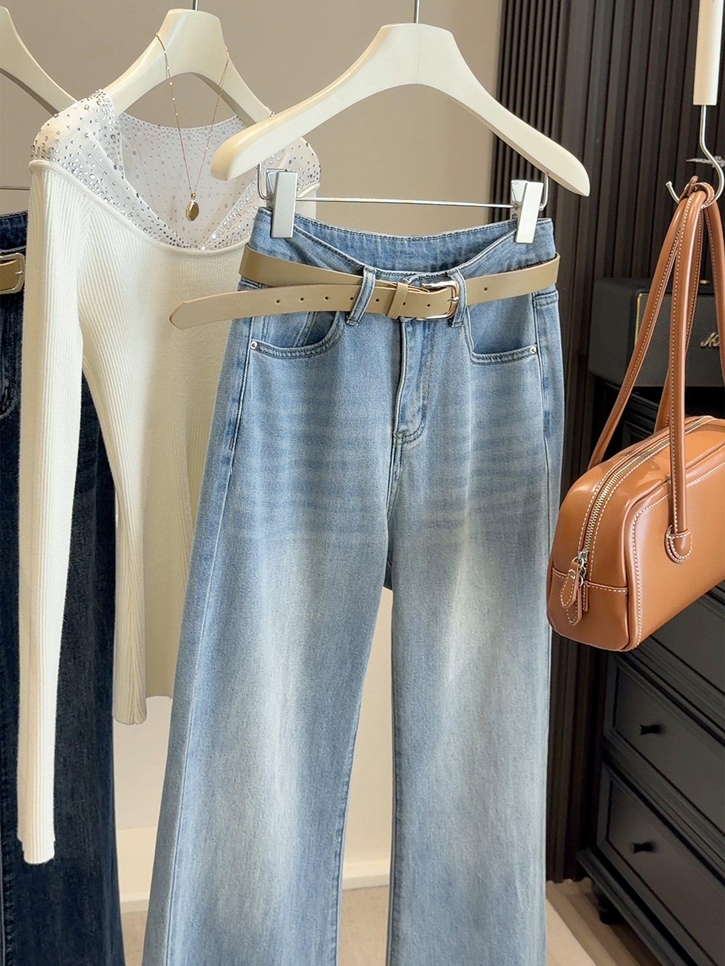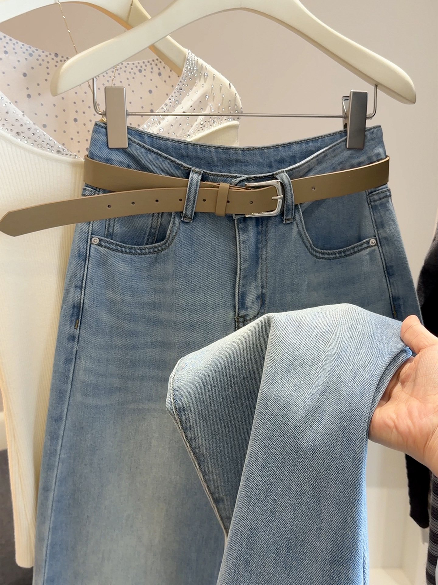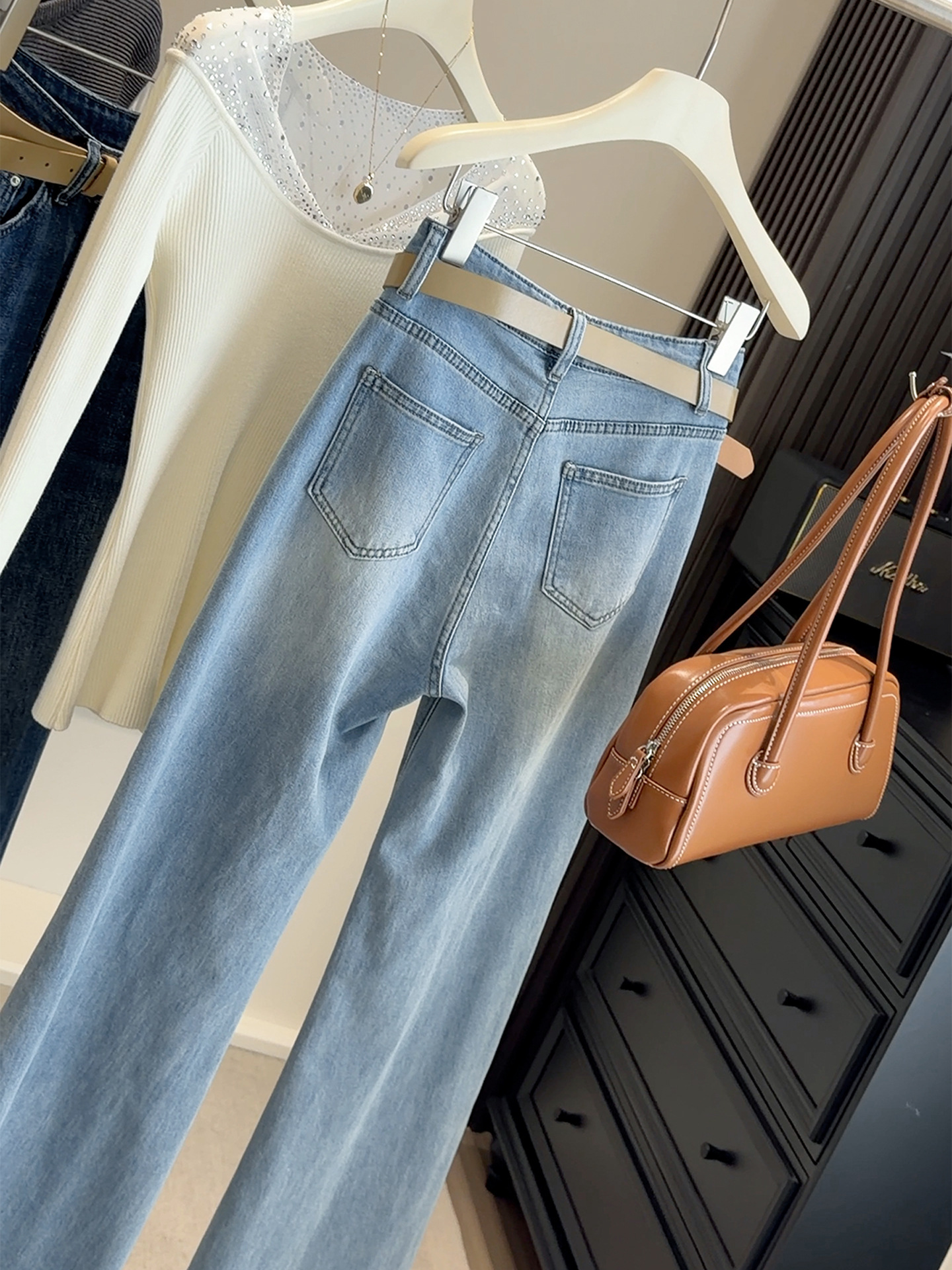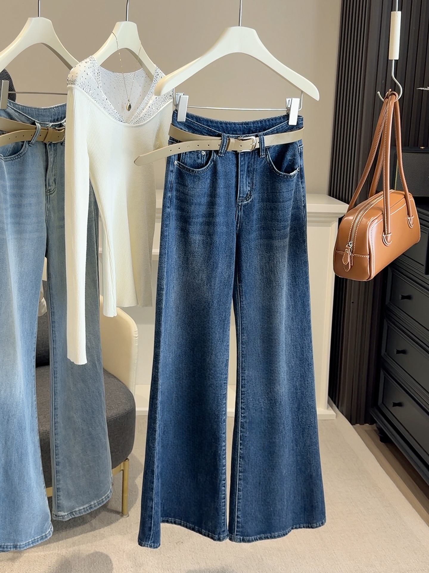 【复古高腰不贴腿微喇牛仔裤】春夏26新款 水洗柔软显瘦直筒喇叭裤